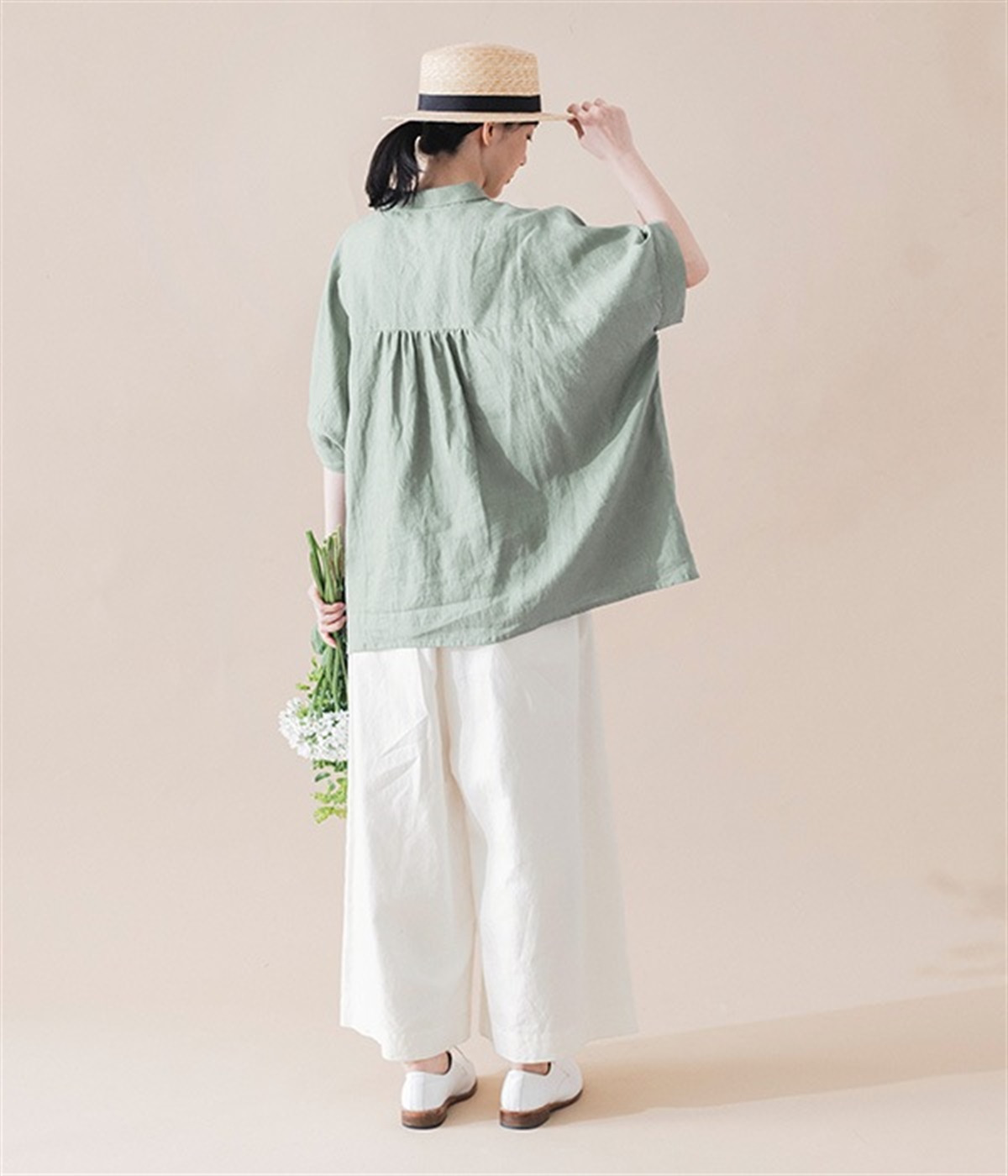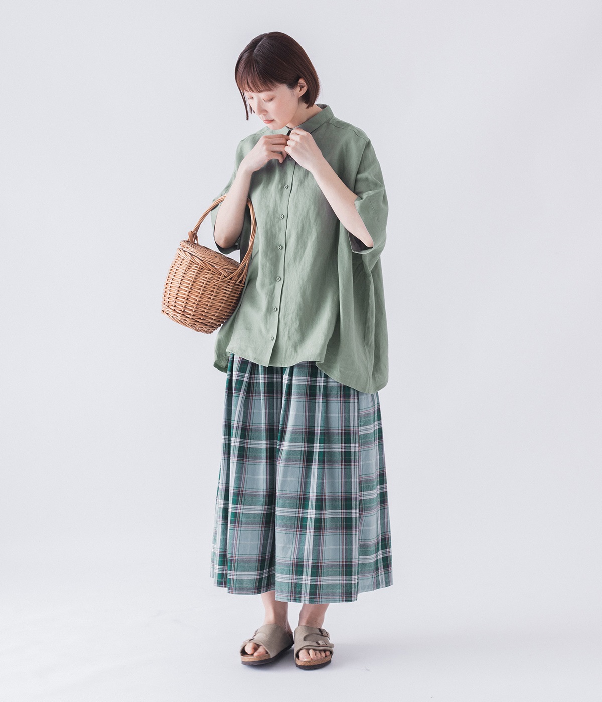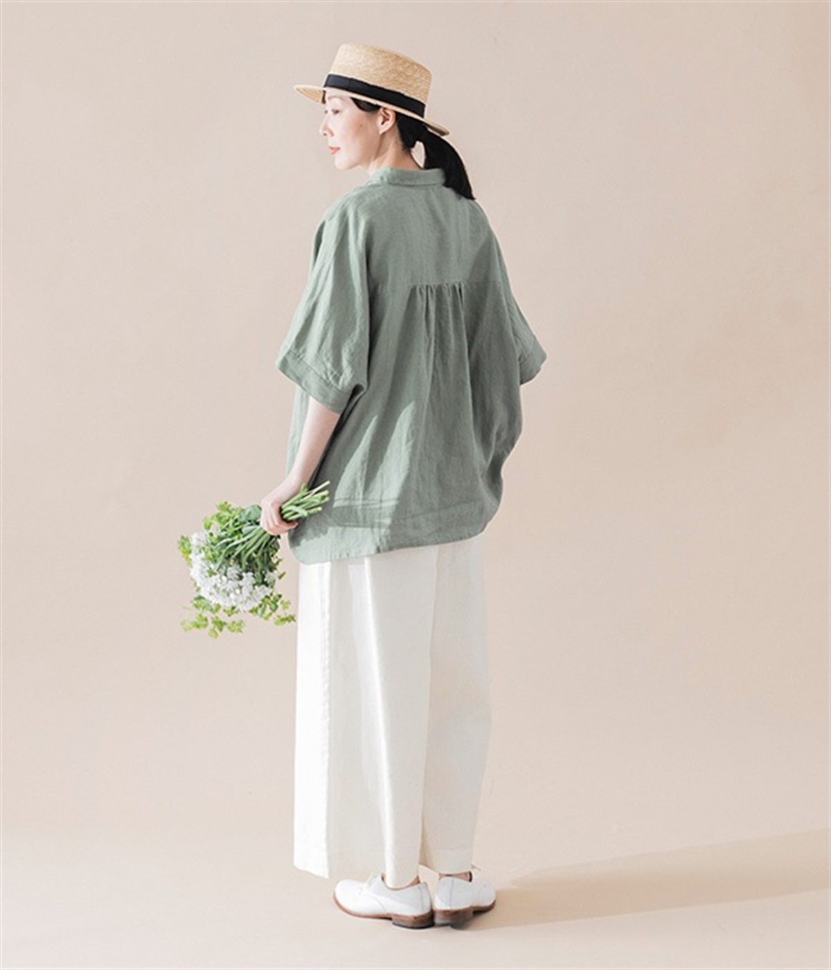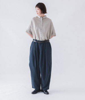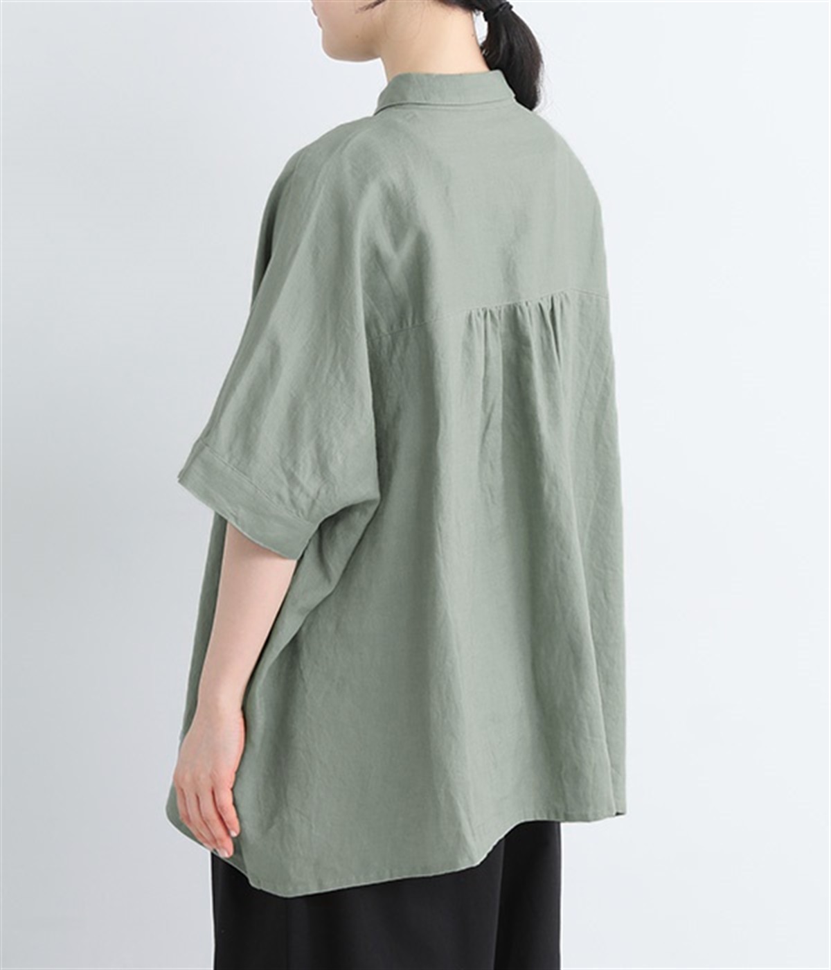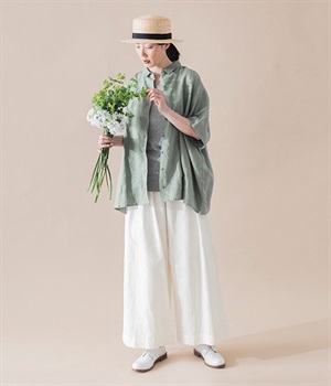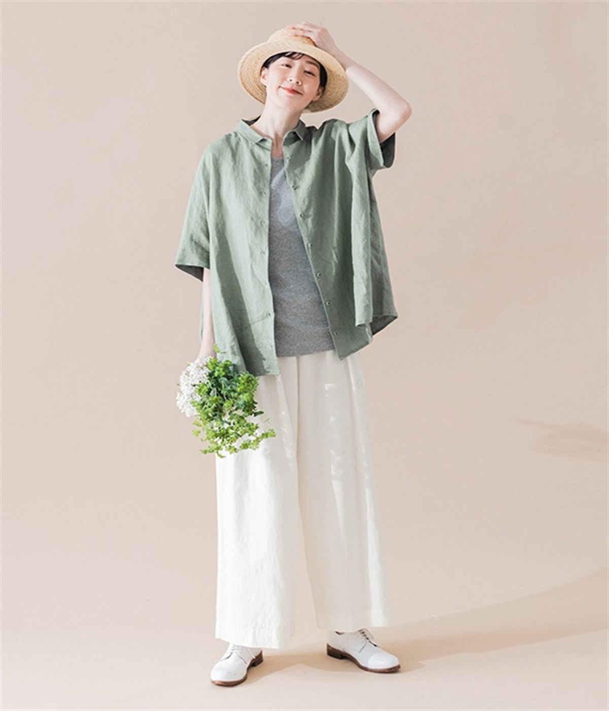主張しすぎない大きさのチビ襟デザインがポイントのブラウス。天然の吸湿速乾性とシャリ感で快適な着心地が得られる、平織りリネンで仕立てました。身幅がたっぷりとしたビッグシルエットですが、リネンの落ち感によりすっきりと見せてくれます。パンツにもスカートにも合わせられるちょうどよい着丈で、さまざまなコーディネートに対応。ボタンをフルオープンにしてワンピースなどの上からラフに羽織っても素敵です。
