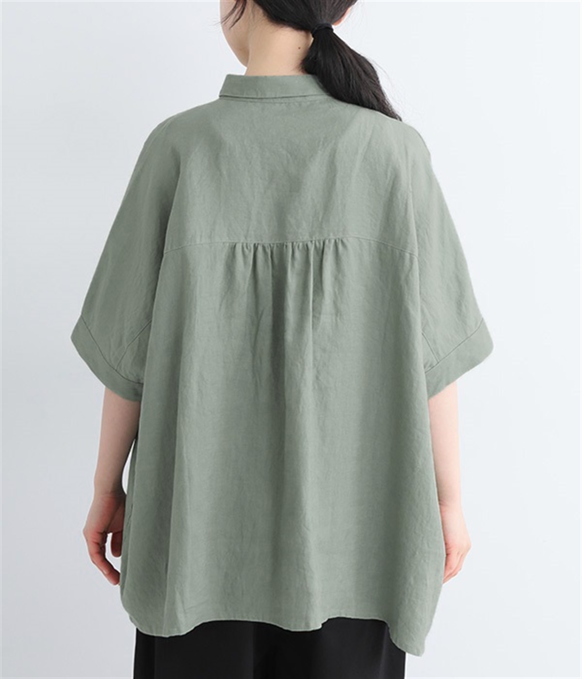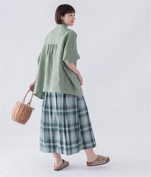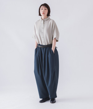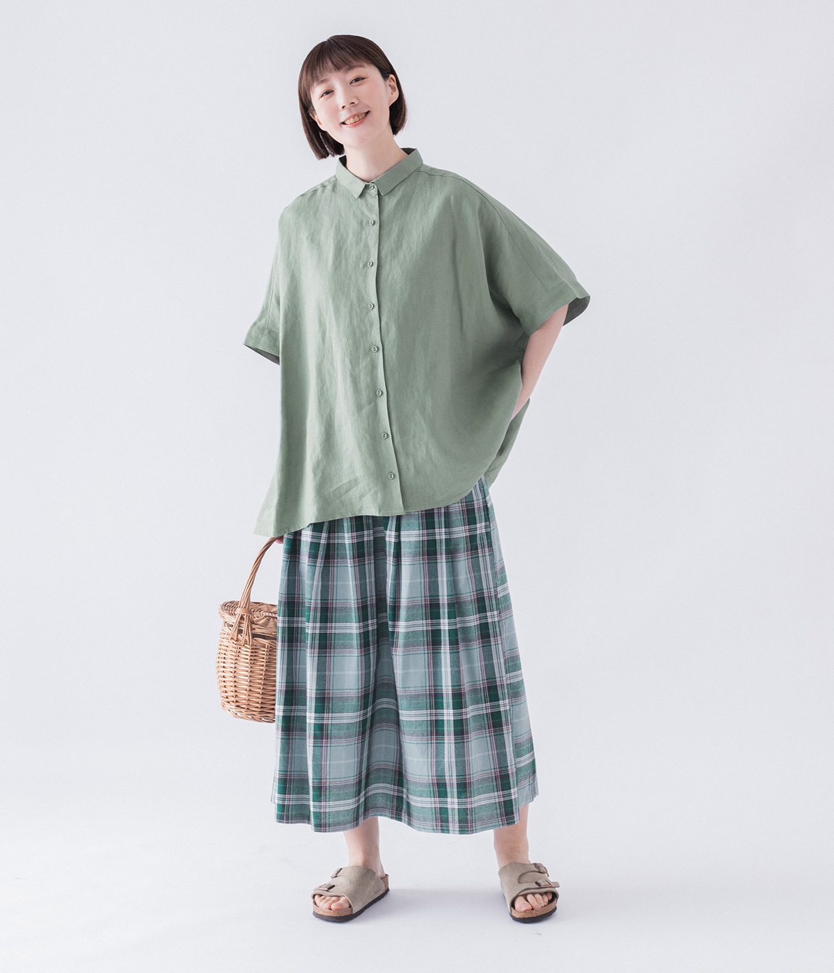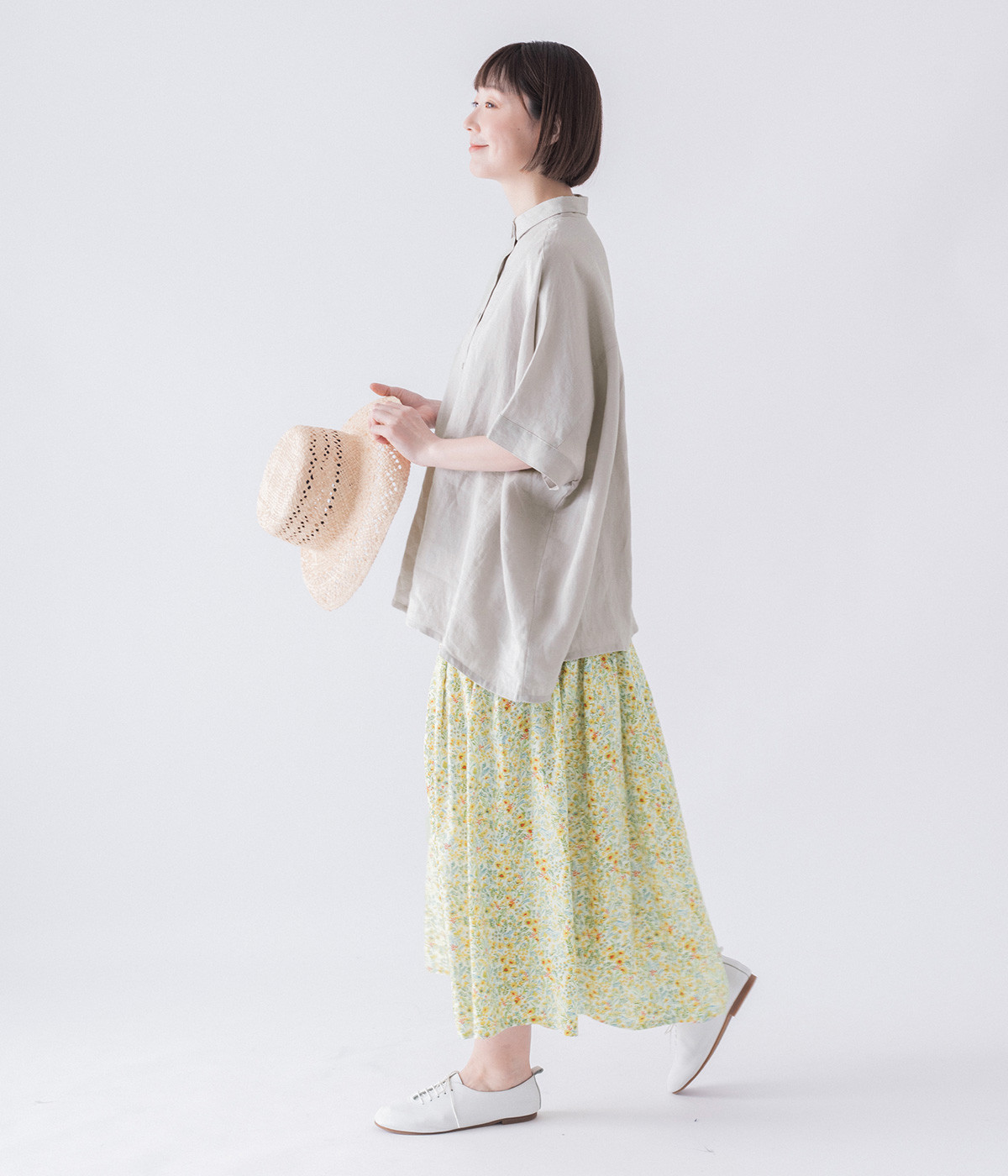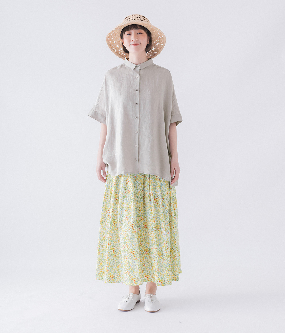 主張しすぎない大きさのチビ襟デザインがポイントのブラウス。天然の吸湿速乾性とシャリ感で快適な着心地が得られる、平織りリネンで仕立てました。身幅がたっぷりとしたビッグシルエットですが、リネンの落ち感によりすっきりと見せてくれます。パンツにもスカートにも合わせられるちょうどよい着丈で、さまざまなコーディネートに対応。ボタンをフルオープンにしてワンピースなどの上からラフに羽織っても素敵です。