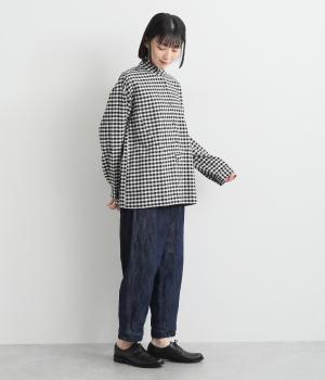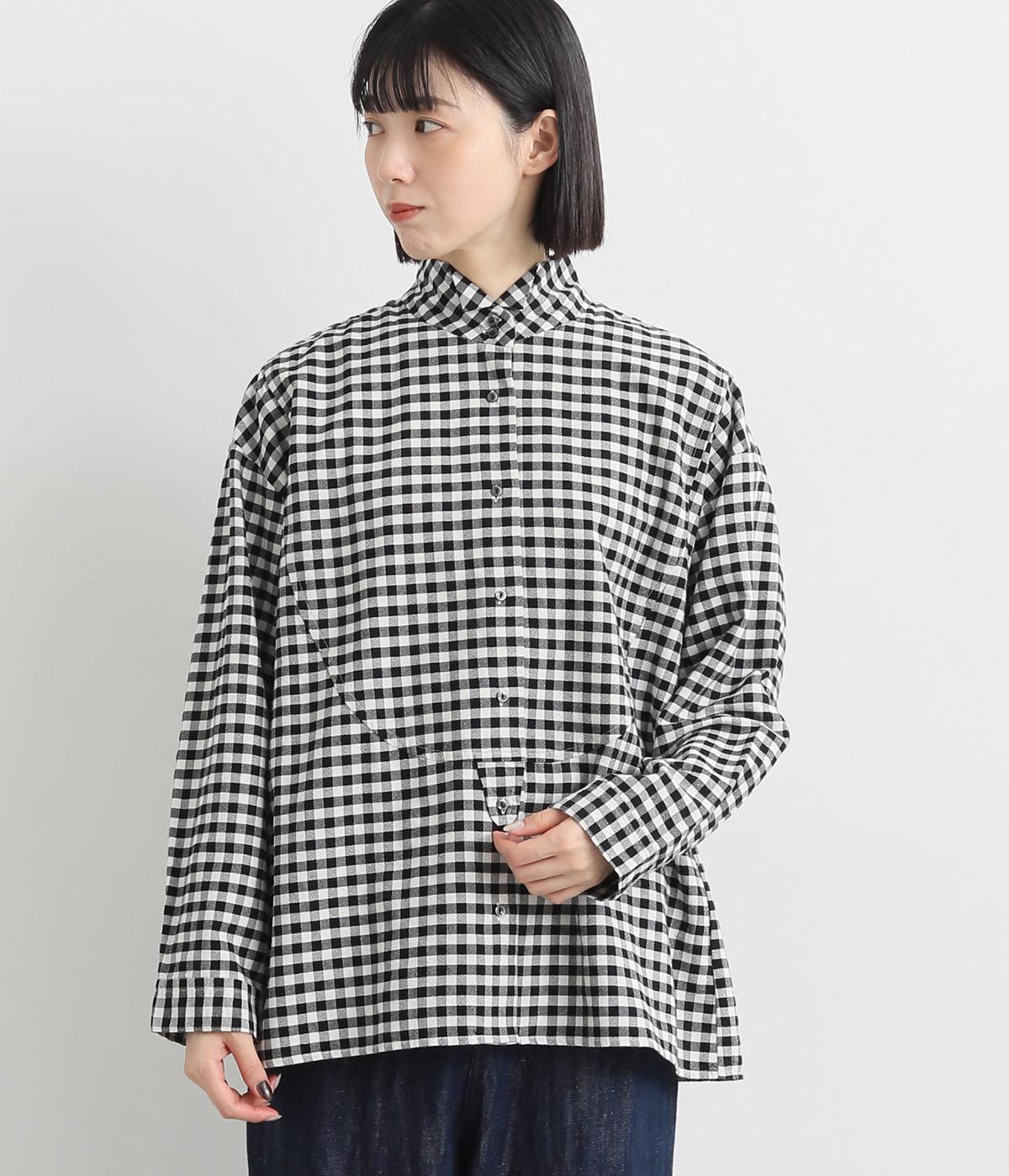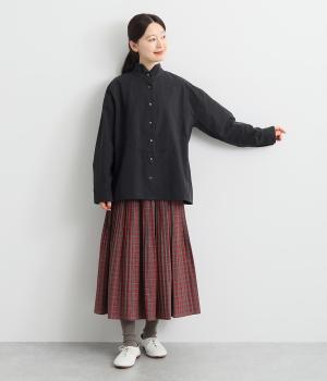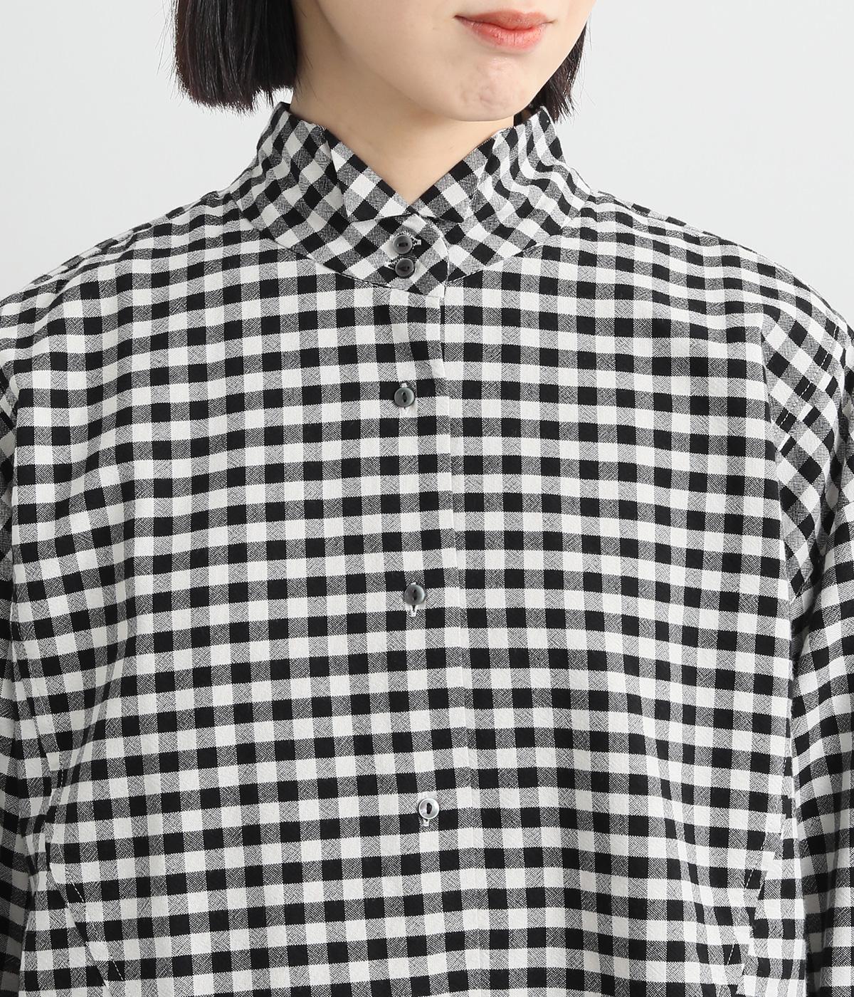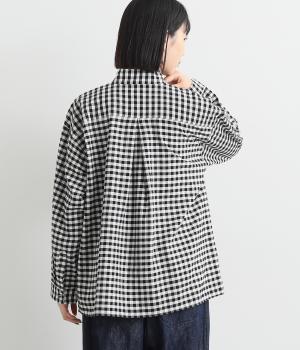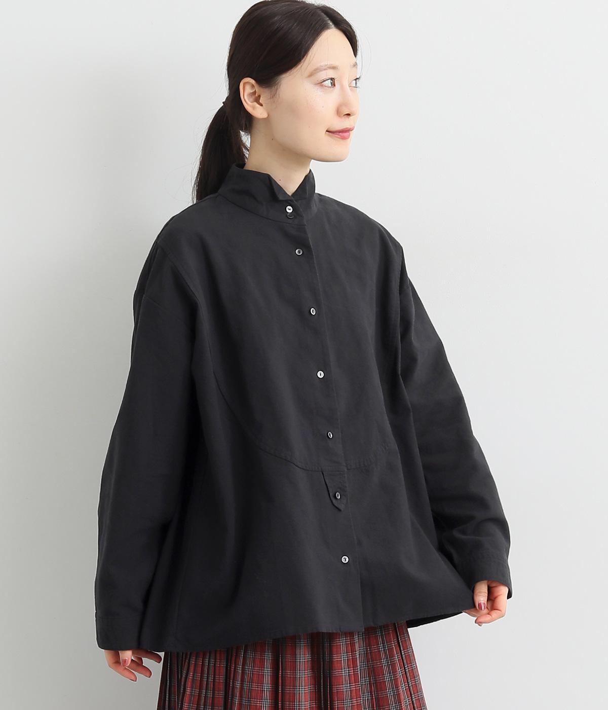 曲線を描くフロントのヨーク切り替えがポイントのシャツ。立ち上がった襟の先が折れたウイングカラーが、品の良さをと個性を与えてくれます。バックヨーク下にはタックを入れて、後ろ姿をふんわりとしたシルエットに。ボタンを開けて、羽織りとして着こなすのもおすすめです。