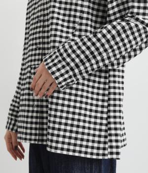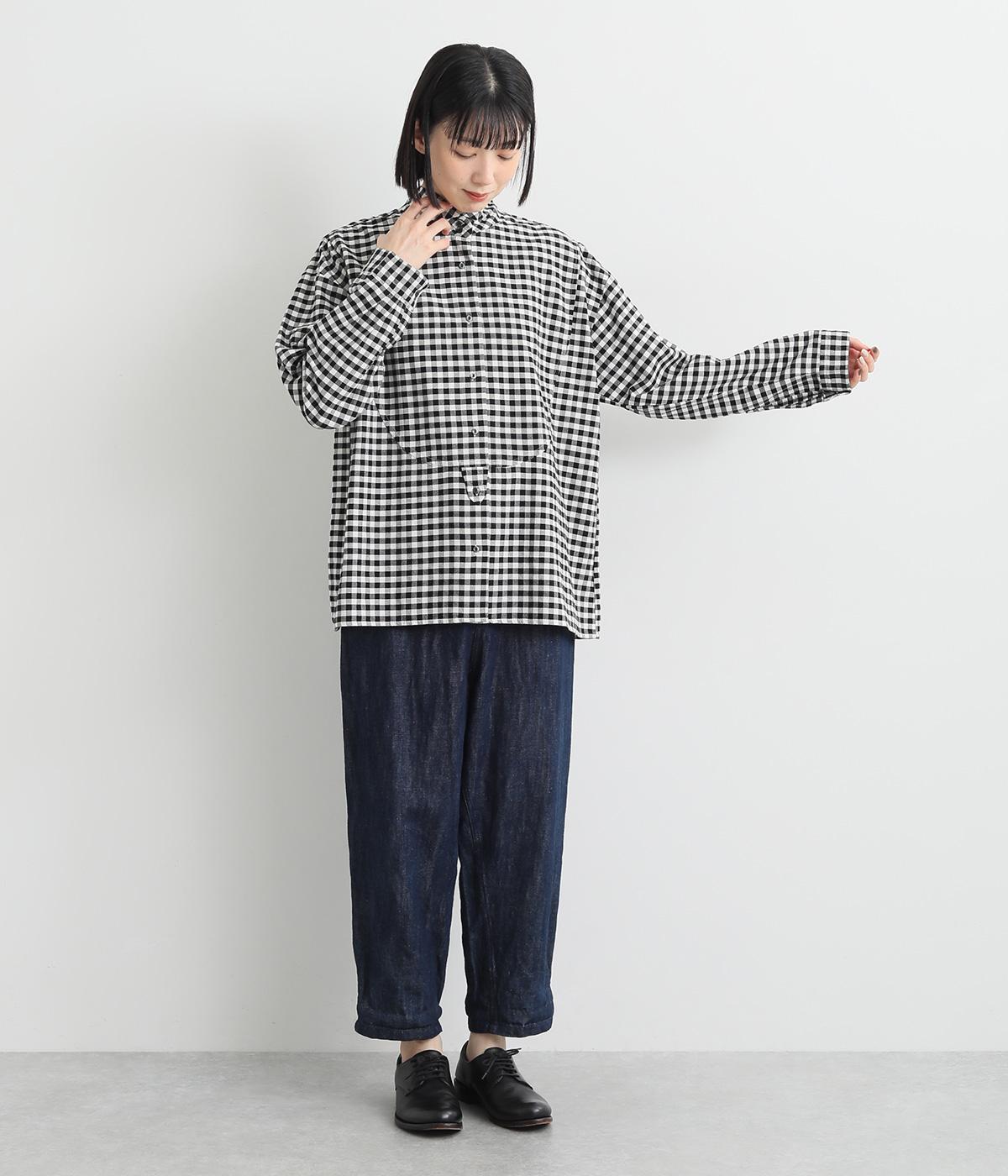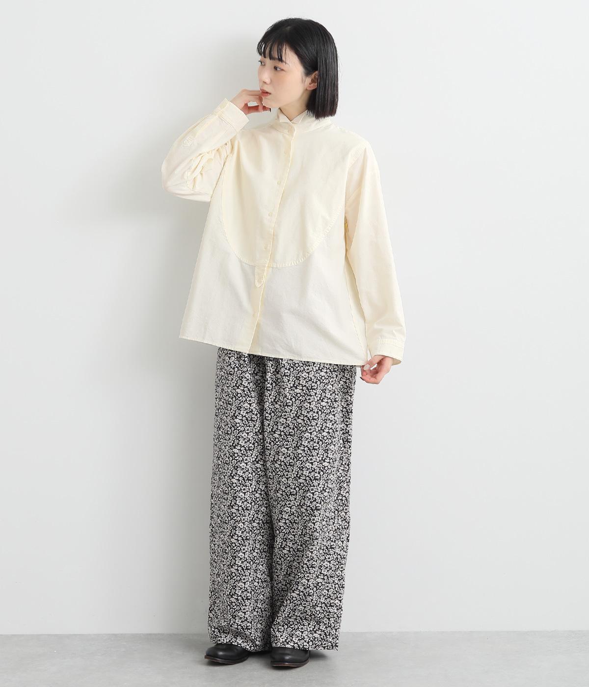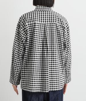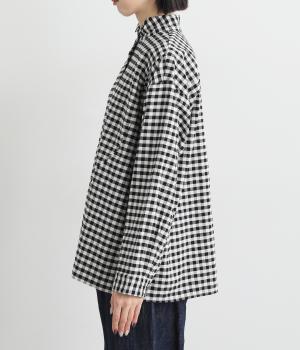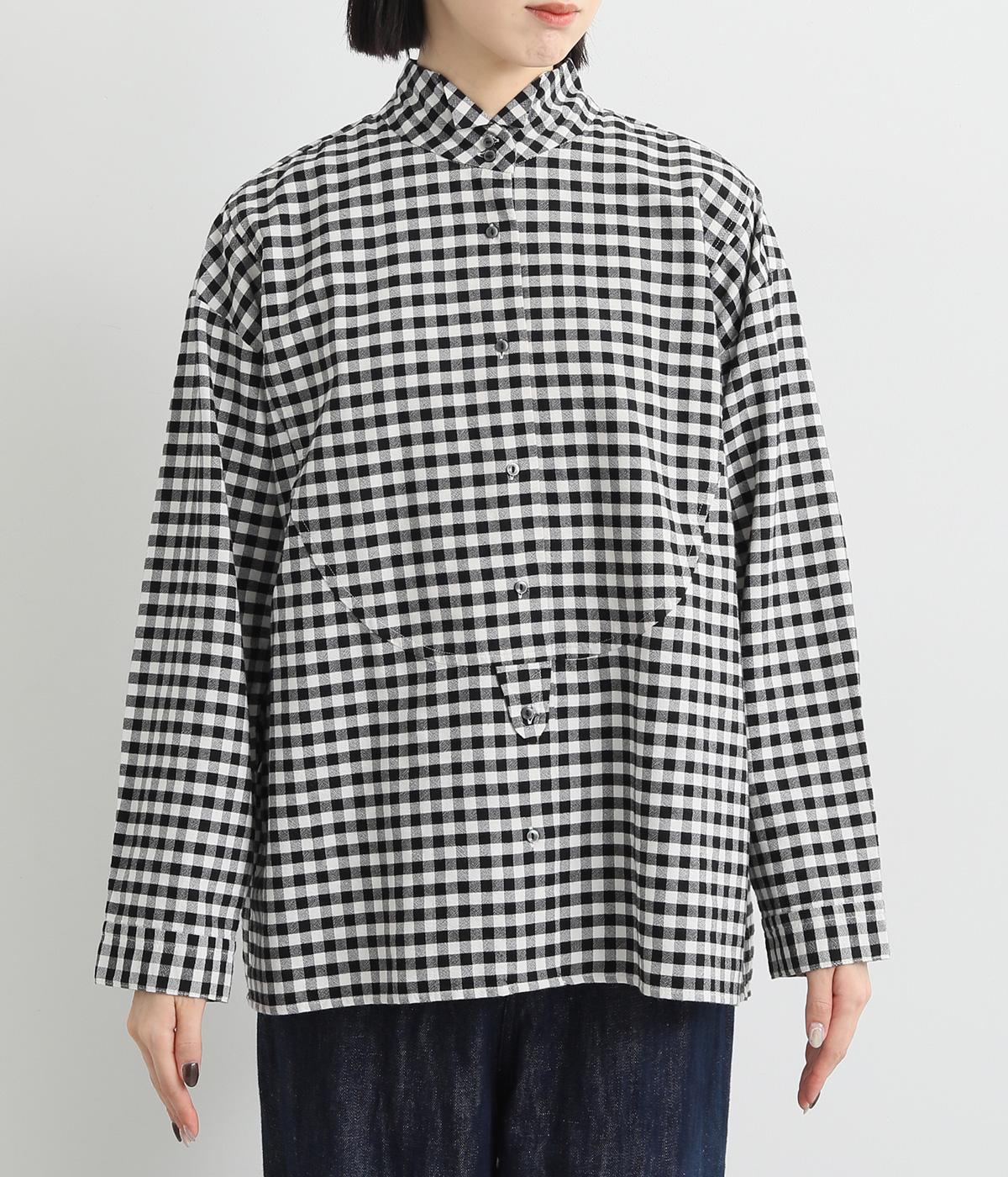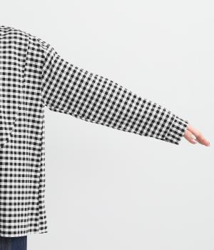 曲線を描くフロントのヨーク切り替えがポイントのシャツ。立ち上がった襟の先が折れたウイングカラーが、品の良さをと個性を与えてくれます。バックヨーク下にはタックを入れて、後ろ姿をふんわりとしたシルエットに。ボタンを開けて、羽織りとして着こなすのもおすすめです。