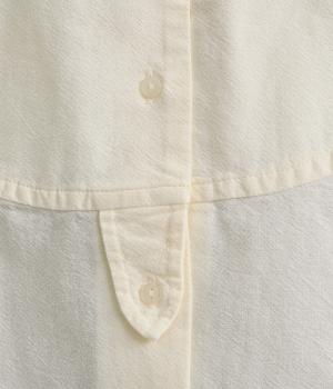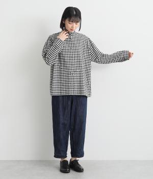 細かな凹凸のある表面と、洗いざらしのような独特な風合いが魅力のコットン生地を使用しています。しっかりとしたハリ感があり、シルエットをきれいにキープしてくれます。