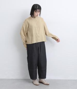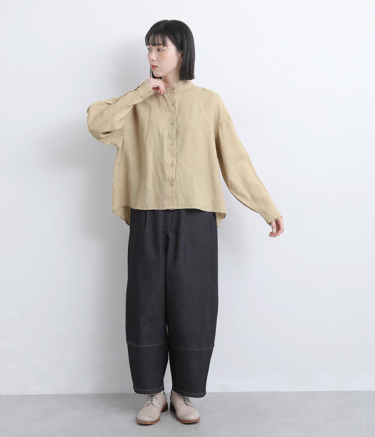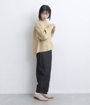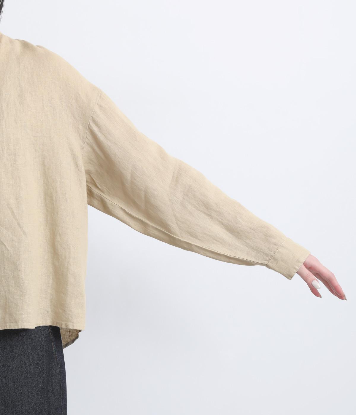 ほどよいコシとなめらかな落ち感が魅力のライトリネン生地を使用。ナチュラル素材で肌にやさしく、着るほどになじんでいく経年変化も魅力のひとつ。