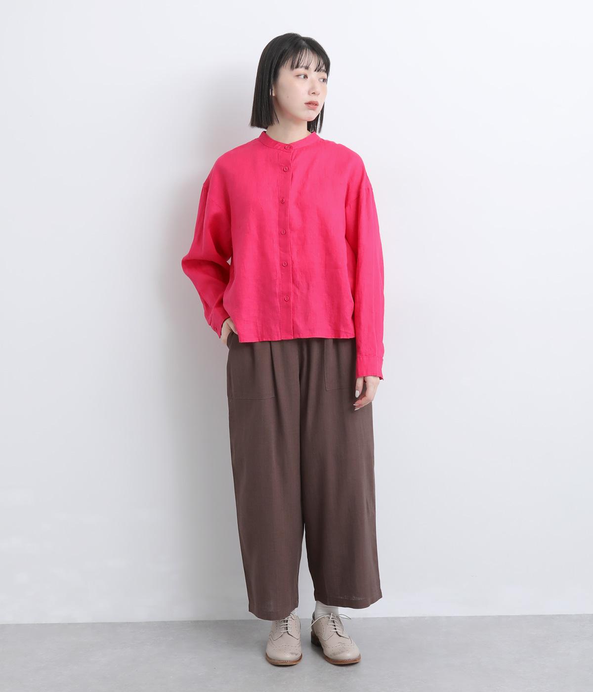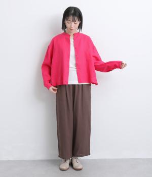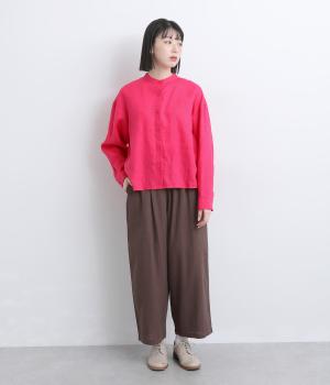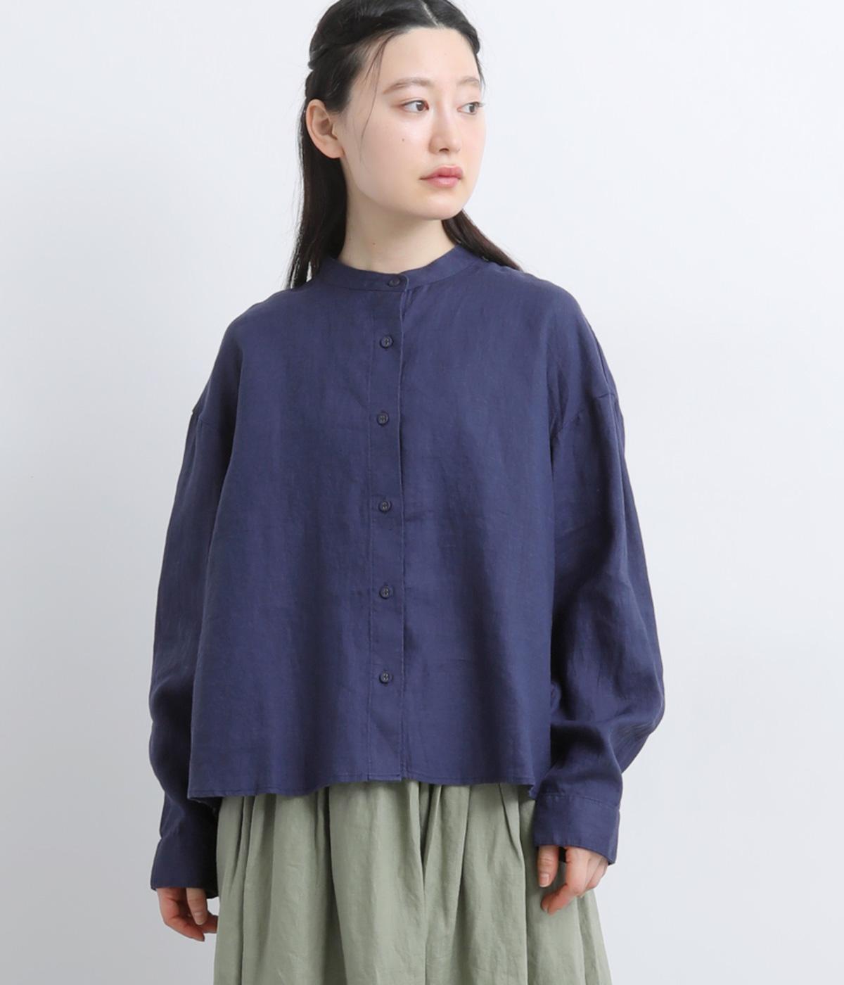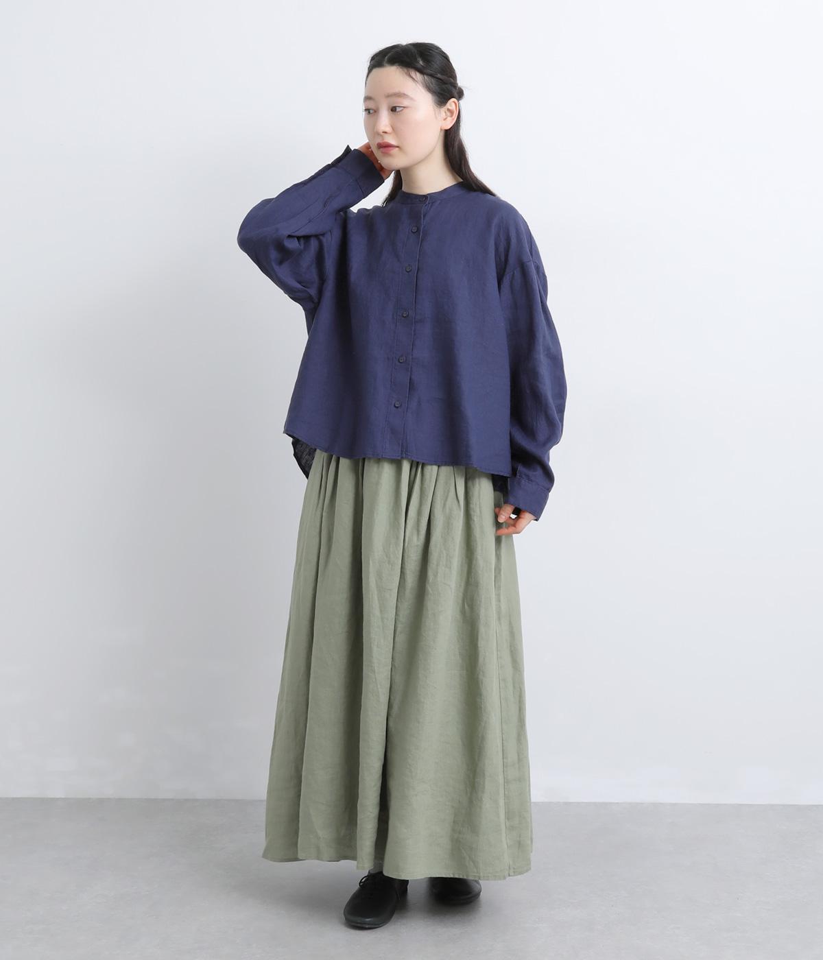 ほどよいコシとなめらかな落ち感が魅力のライトリネン生地を使用。ナチュラル素材で肌にやさしく、着るほどになじんでいく経年変化も魅力のひとつ。