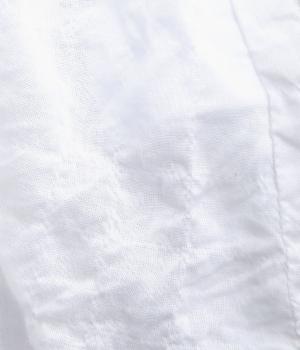 レーヨンとコットンを合わせた生地は、さらりとした肌ざわりが魅力。表面に細かな凹凸を持たせることで、肌離れよく涼やかな着心地を叶えました。薄手で軽やかさもあり、汗ばむ季節も快適に過ごせる仕上がりです。