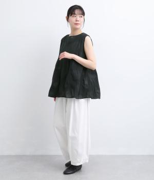 コットン素材を使用し、空気をふくんだような、やわらかくしなやかな風合いに仕上げました。ほのかなシャリ感もあり、さらりとした肌ざわりが特徴です。薄手なので、汗ばむ季節も軽やかにまとえる生地感です。