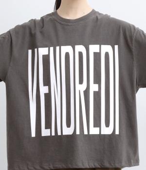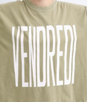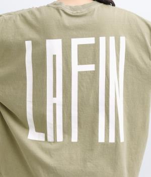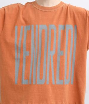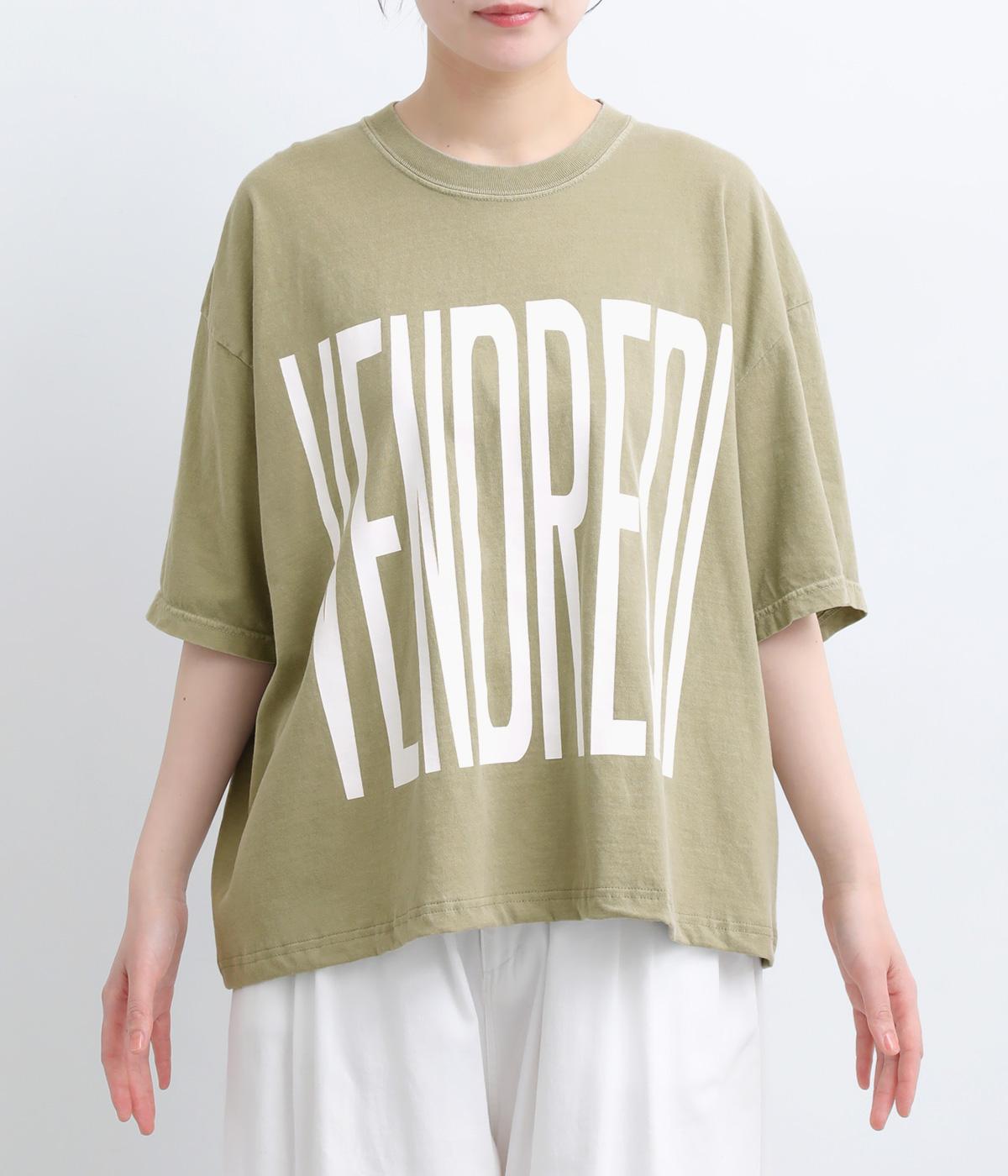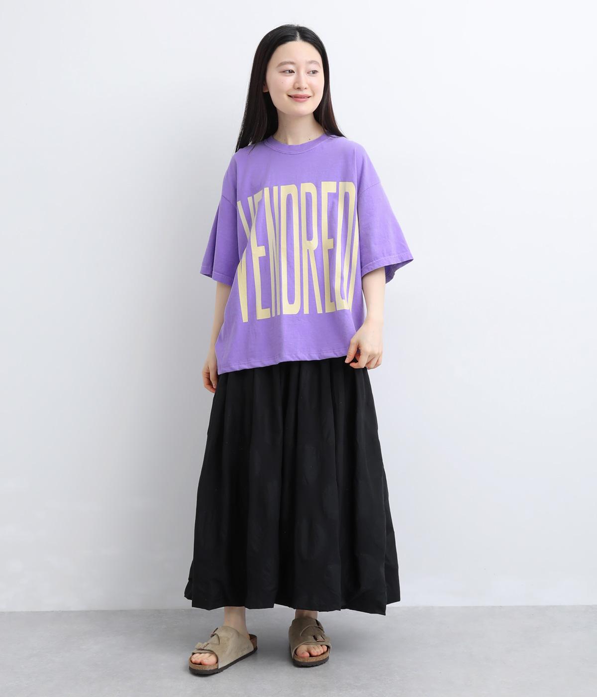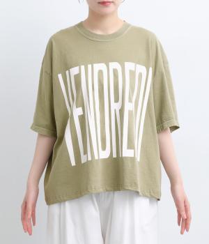 フロントには「VENDREDI」、バックには「LAFIN」のロゴプリントを配した、遊び心のあるデザインです。ゆったりとした身幅がこなれたシルエットを生み、さっと着るだけで雰囲気のあるスタイルに。シンプルなボトムスと合わせるだけで、コーディネートにアクセントを添えてくれます。