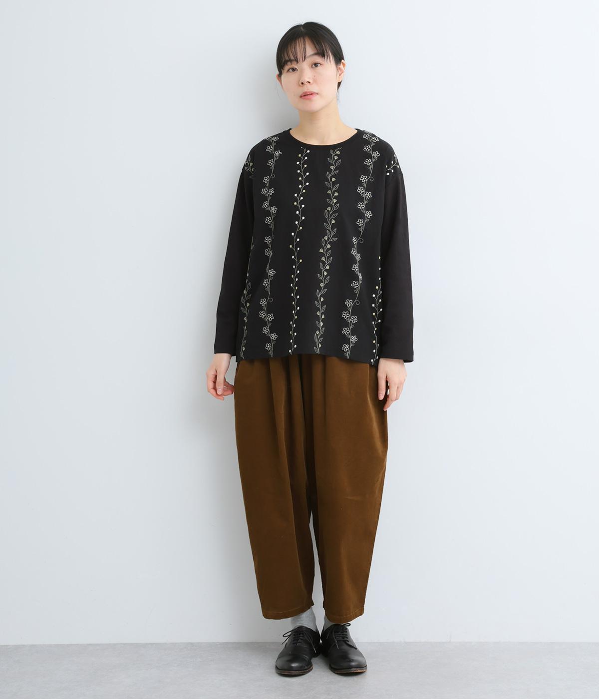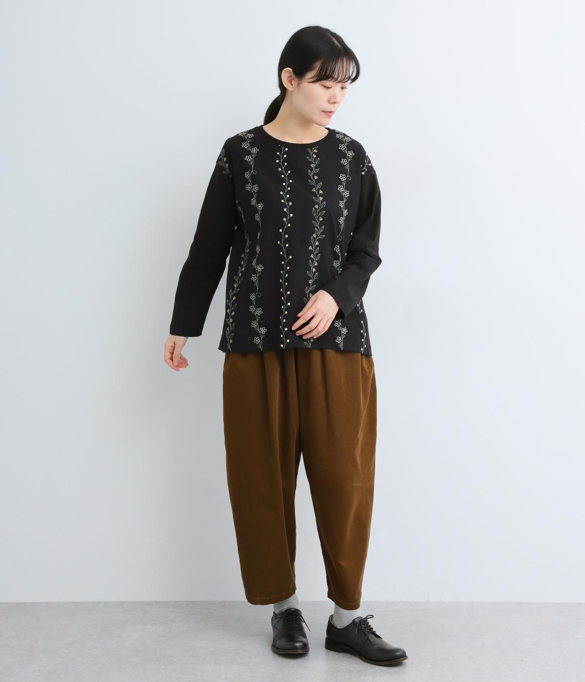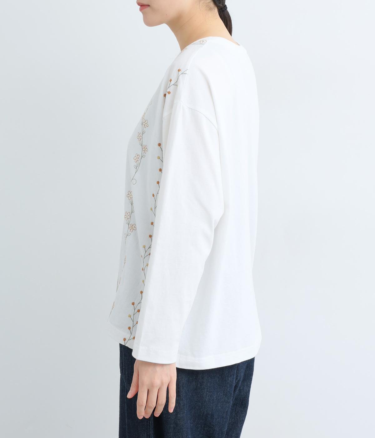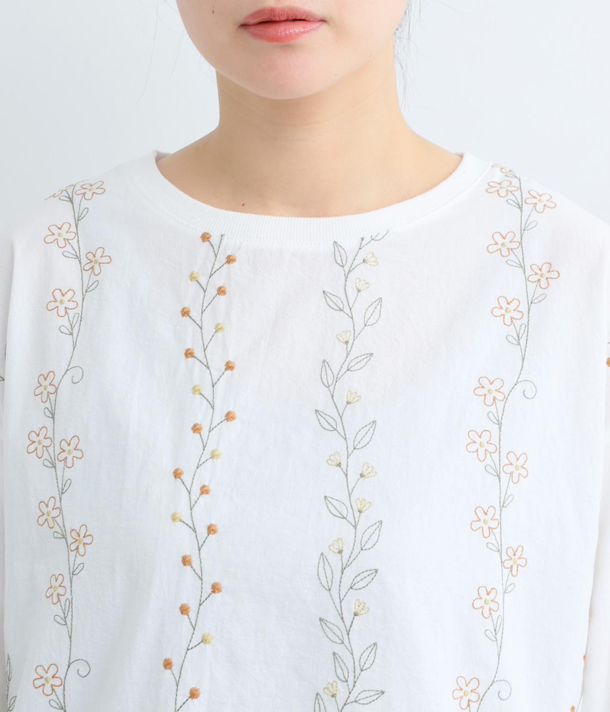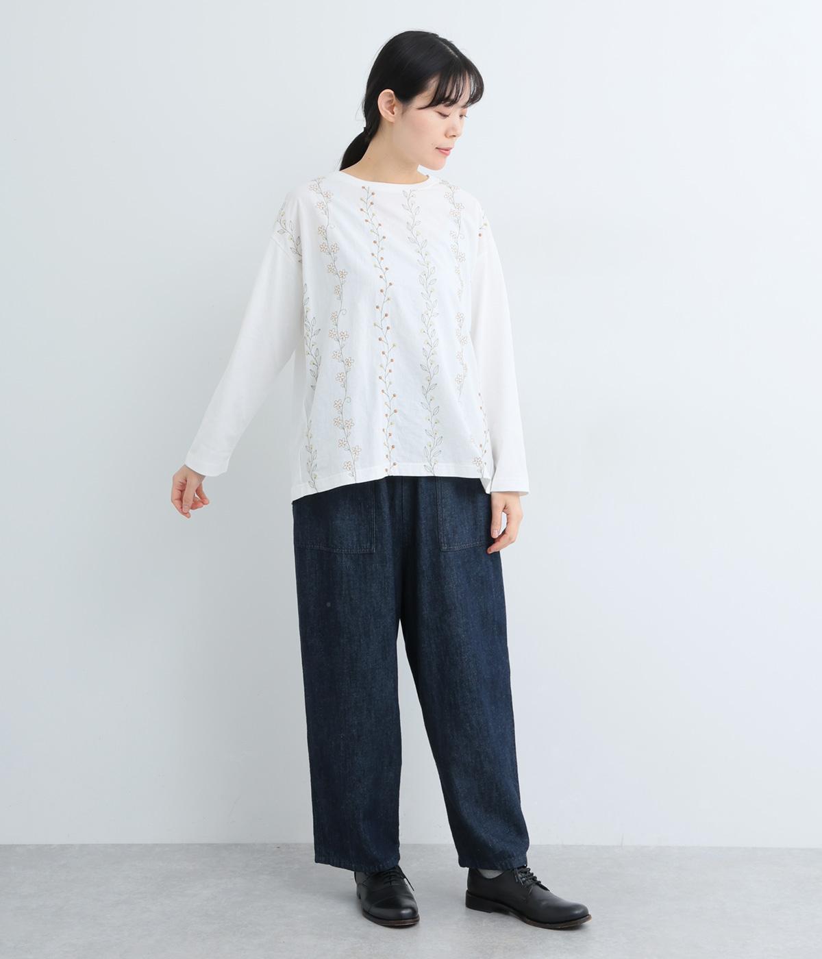 コーディネートを華やかに彩る、お花刺しゅう入りのロングTシャツです。縦長に施された刺しゅうがIラインを作り、すらっとした印象をメイク。ベーシックながらほどよくゆとりのあるシルエットで、デイリー使いにぴったりです。