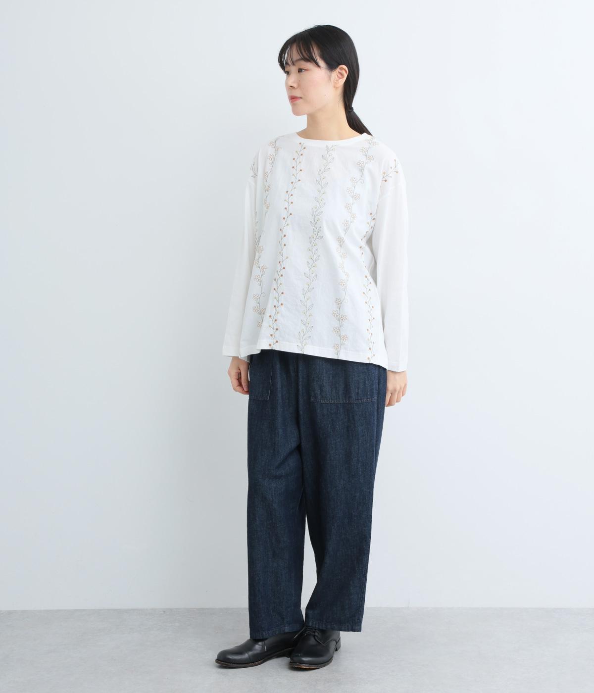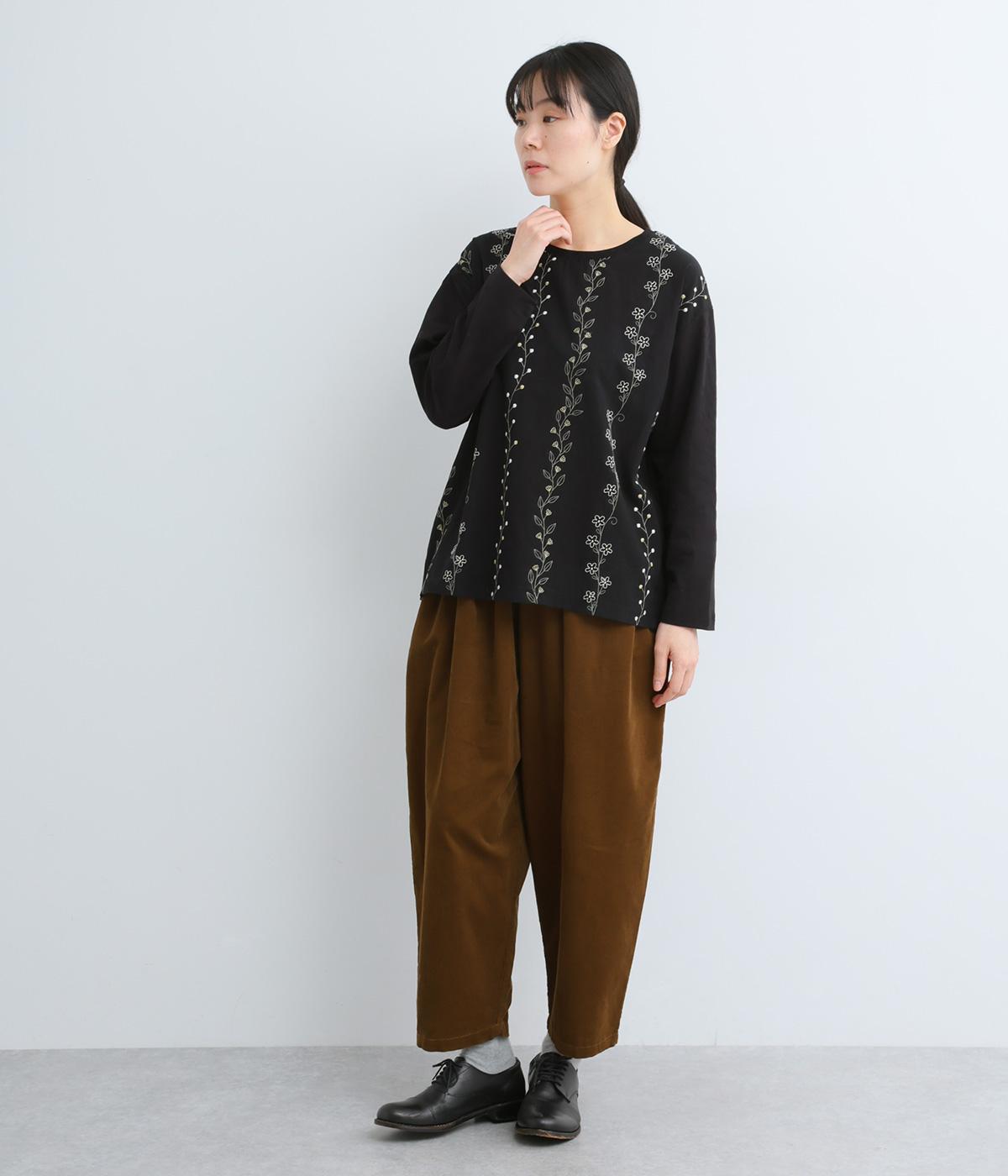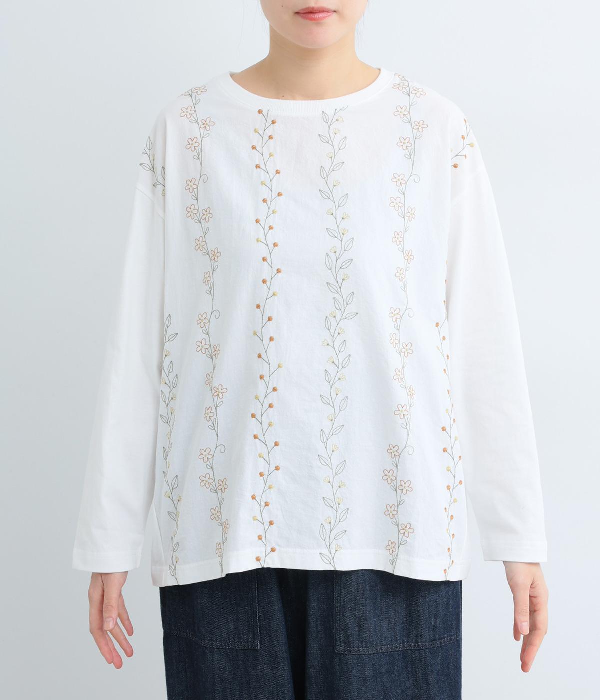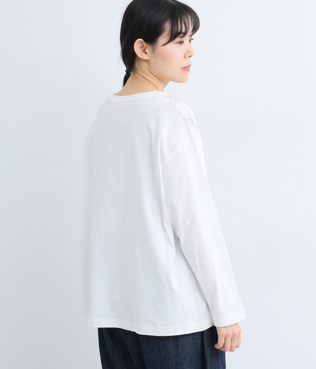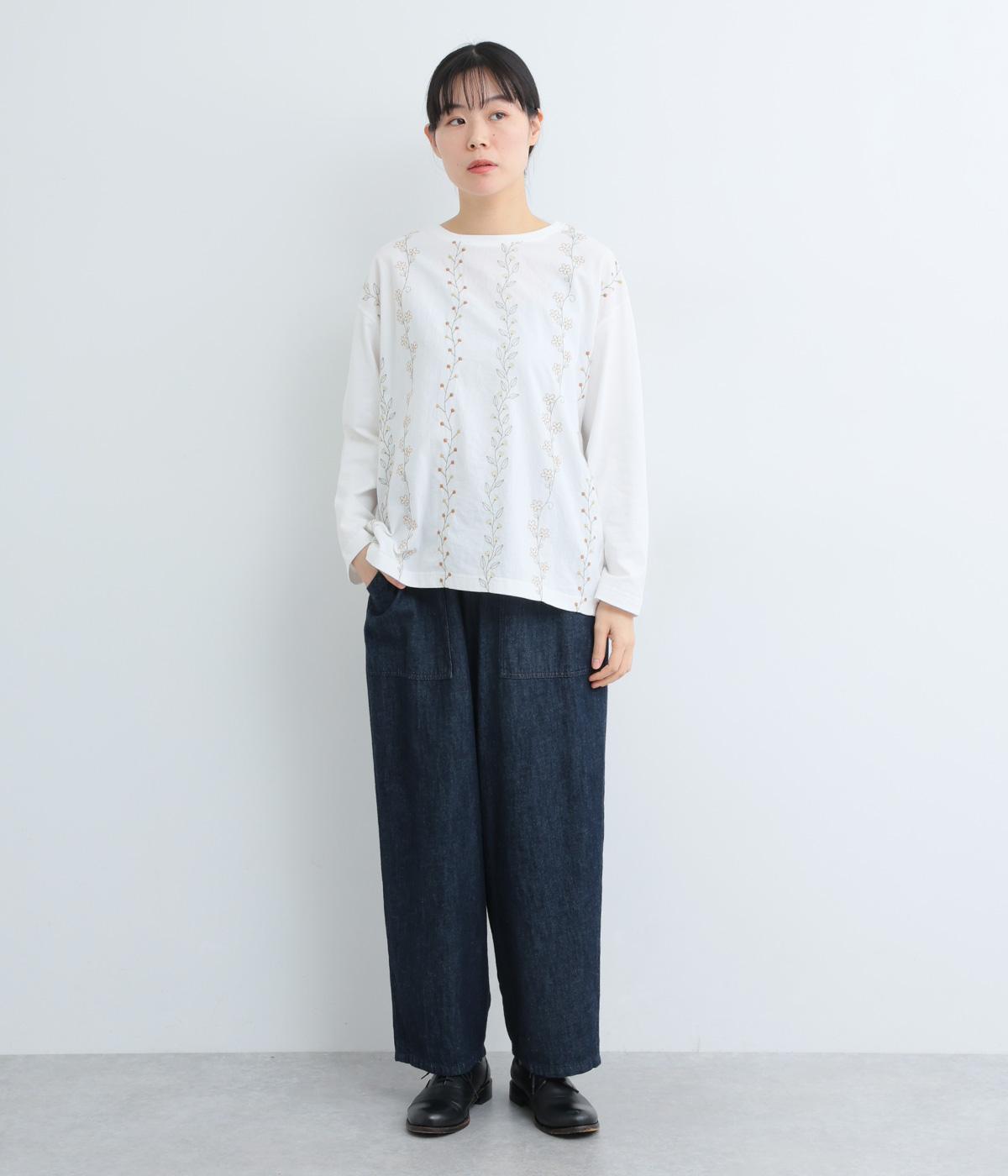コーディネートを華やかに彩る、お花刺しゅう入りのロングTシャツです。縦長に施された刺しゅうがIラインを作り、すらっとした印象をメイク。ベーシックながらほどよくゆとりのあるシルエットで、デイリー使いにぴったりです。