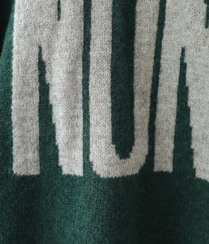 フランス語でNOを意味するロゴとおしゃれな配色がポイントのニットプルオーバー。ゆとりのあるシルエットでこなれ感たっぷりな着こなしが叶います。肩幅を強調しないラグランスリーブもポイント。ほどよく開いたネックラインが顔まわりをすっきりと見せてくれます。