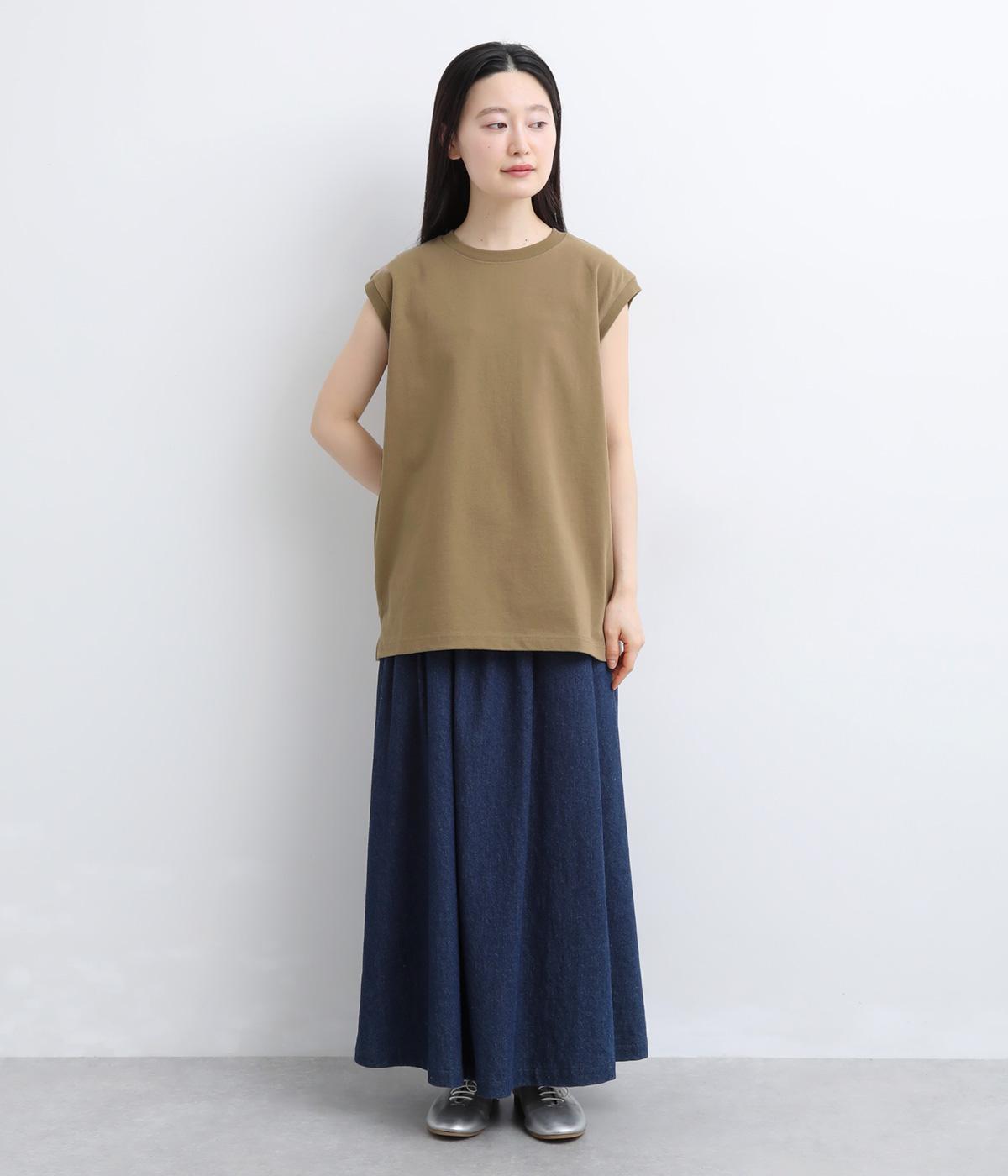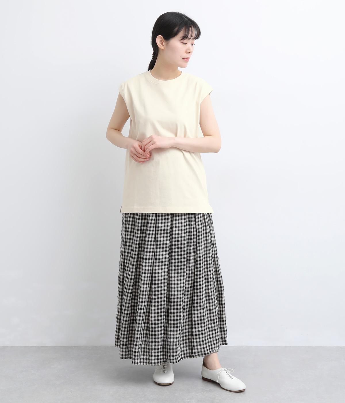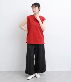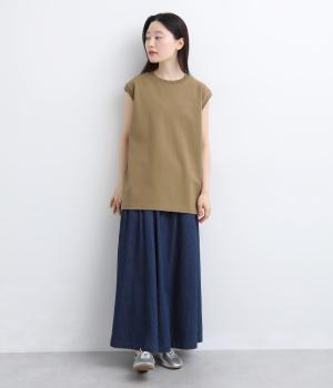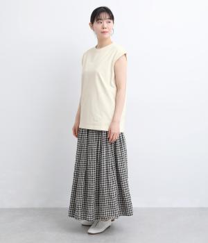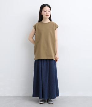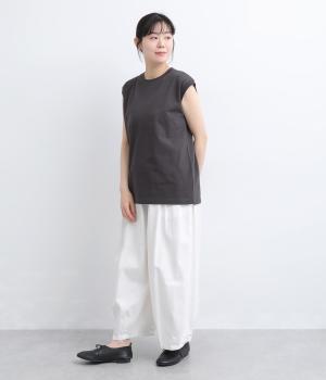 肩まわりをやさしく覆うデザインで、ノースリーブが苦手な方も取り入れやすい一枚です。ゆったりとした身幅ながら、すとんと落ちるシルエットですっきりとした印象に。サイドには浅めのスリットを施し、動きやすさと軽やかさをプラスしました。広めのアームホールと長めの着丈で、レイヤードコーディネートにも活躍します。