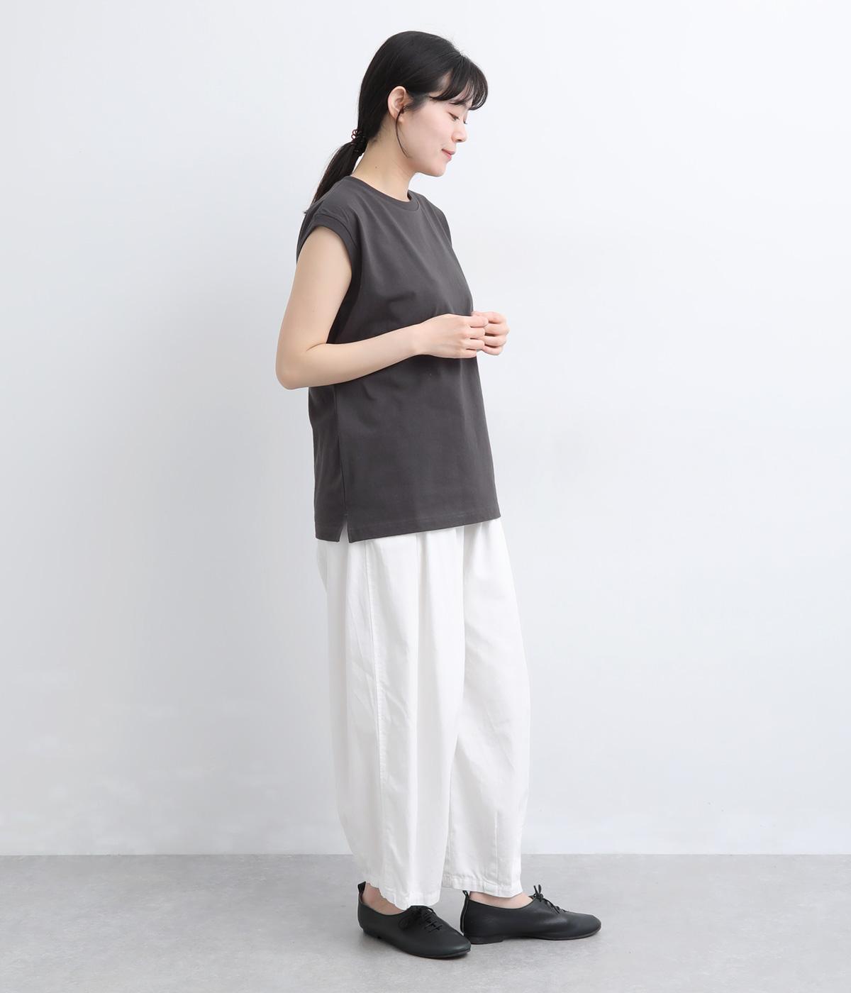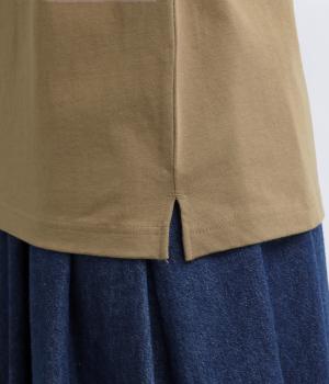 ほどよい厚みのコットン天竺で仕立てた、安心感のある着心地が魅力。ハリがありつつもしなやかで、シルエットをきれいに保ちます。さらりとドライなタッチで肌離れがよく、汗ばむ季節も快適な生地感です。