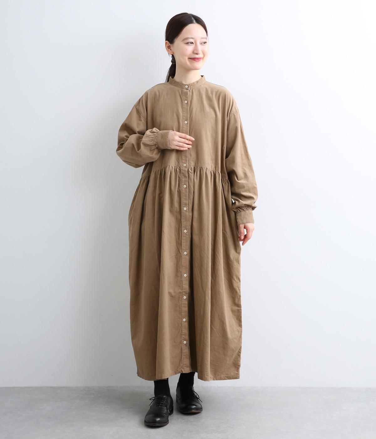 自然とくしゅっとたるむ、ボリューム袖がワンポイントになったワンピースです。切り替えにたっぷりギャザーを入れたゆとりのあるシルエットが着心地よく、羽織りにしたり着まわし力も◎。ロング丈で存在感もあり、シンプルながらも着映え力のある一着。