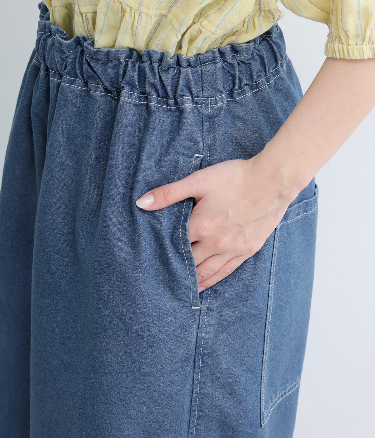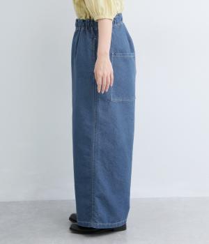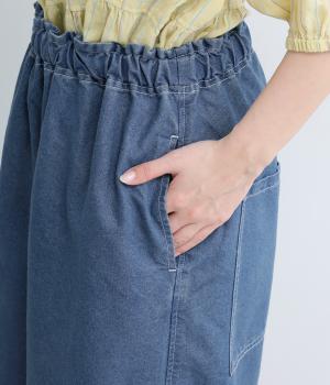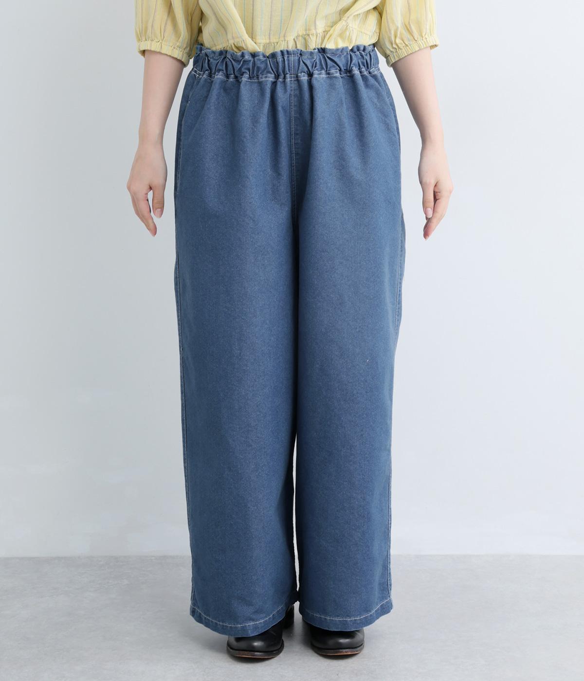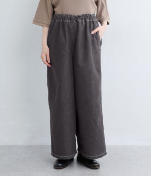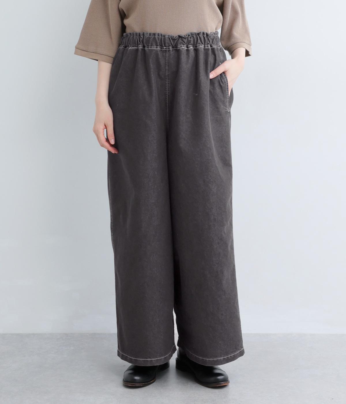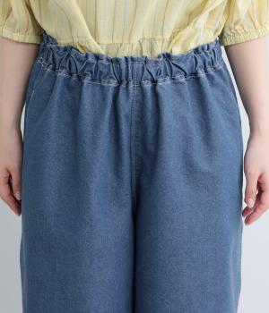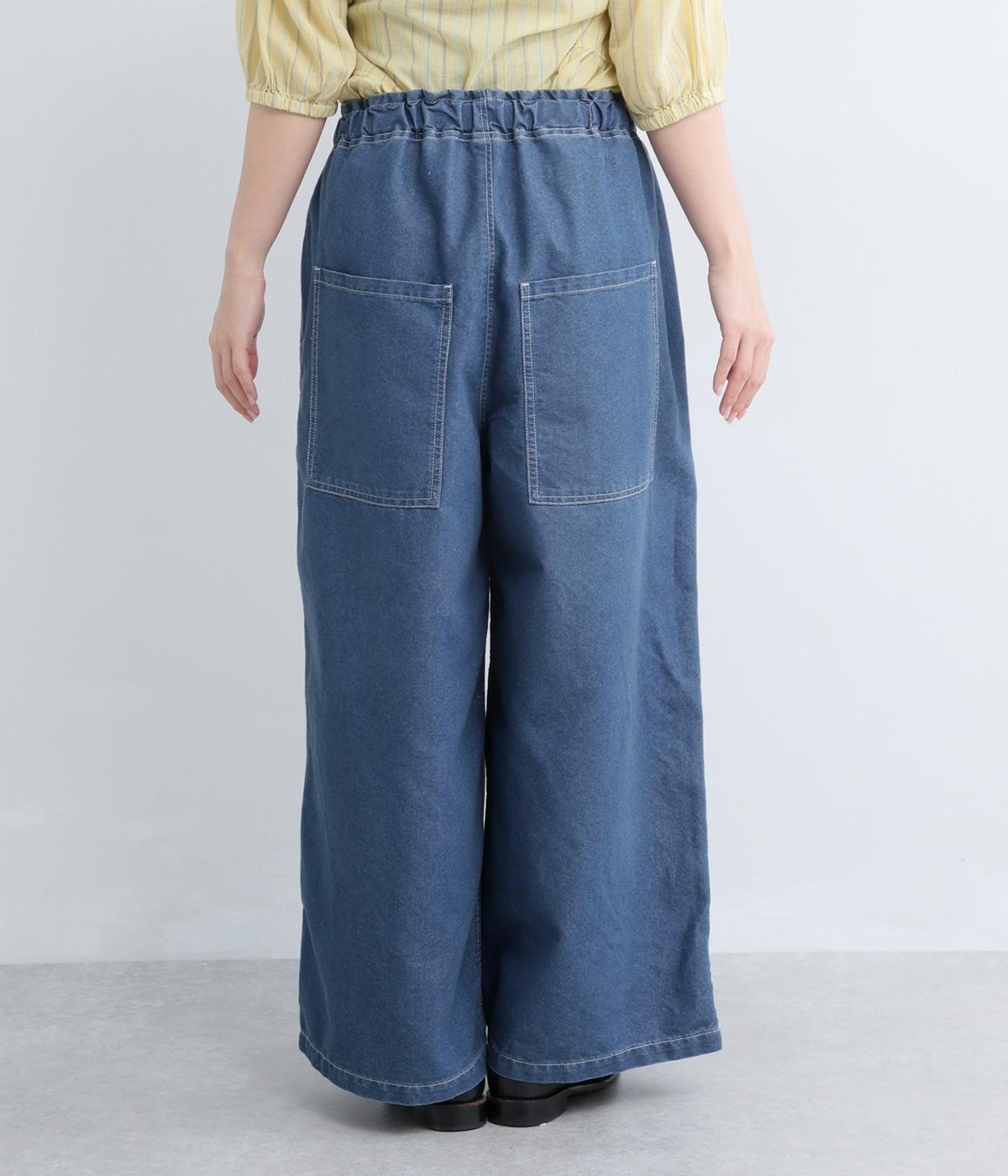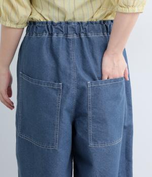 やや低い位置に配した大きなヒップポケットが、気になるヒップまわりを自然にカバー。ゆったりとしたワイドシルエットが、こなれた雰囲気を演出します。ウエストゴムの仕様でリラックス感を添えた、安心の穿き心地です。