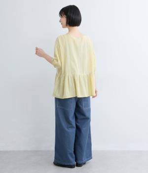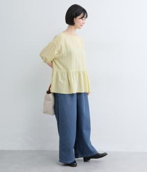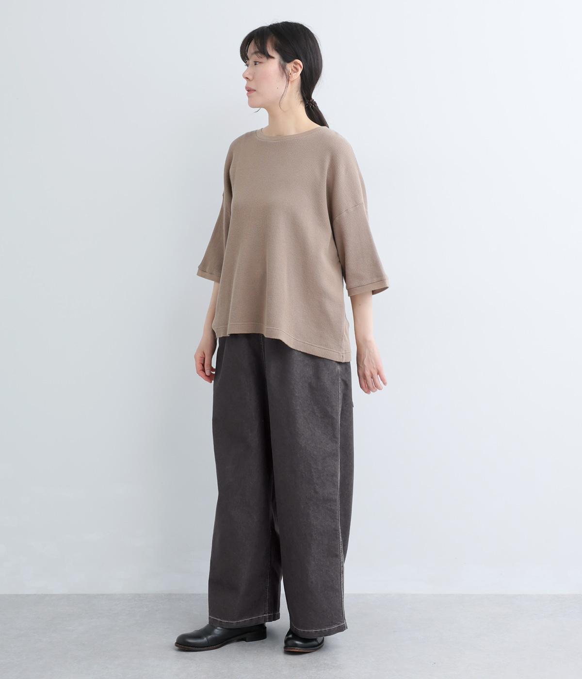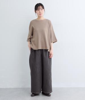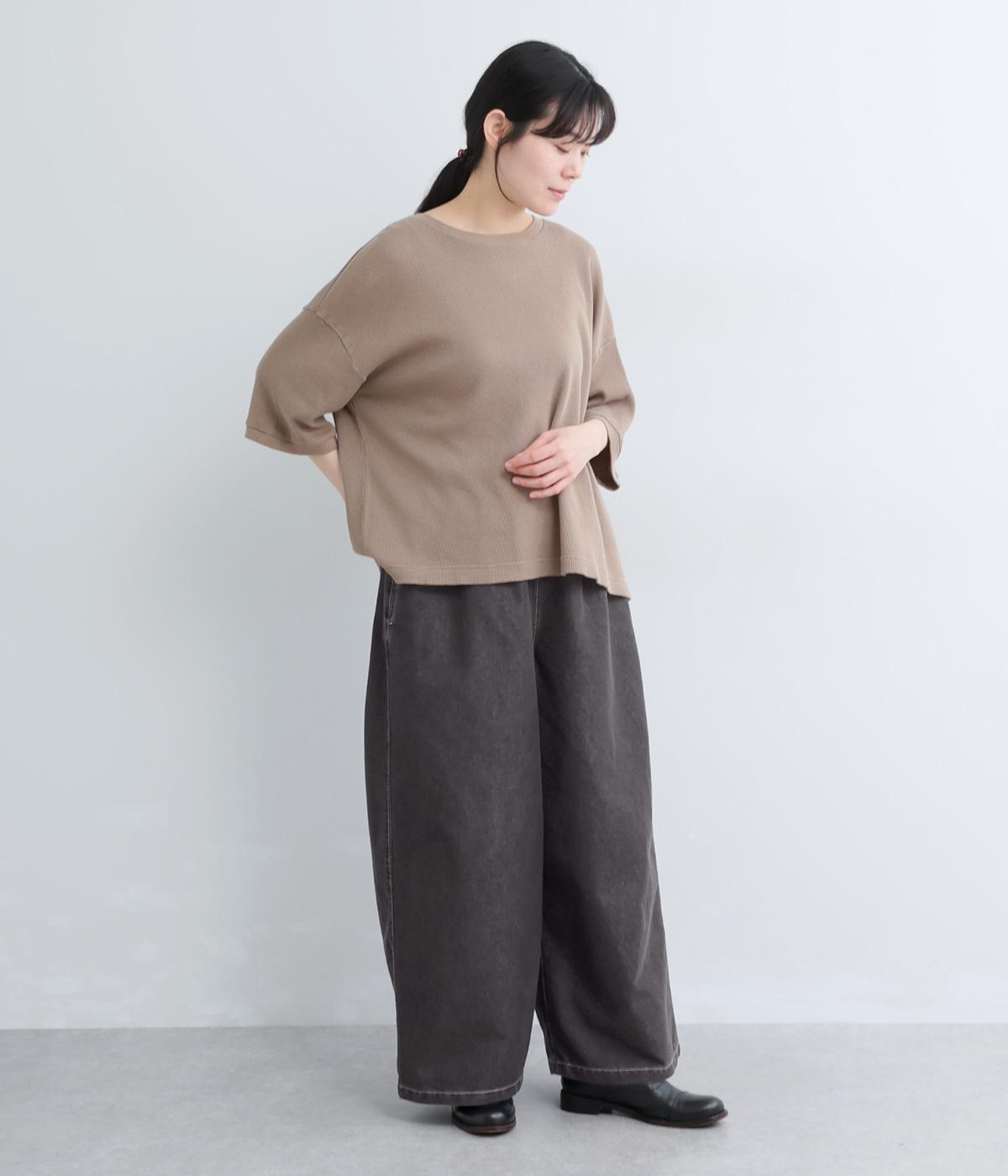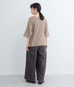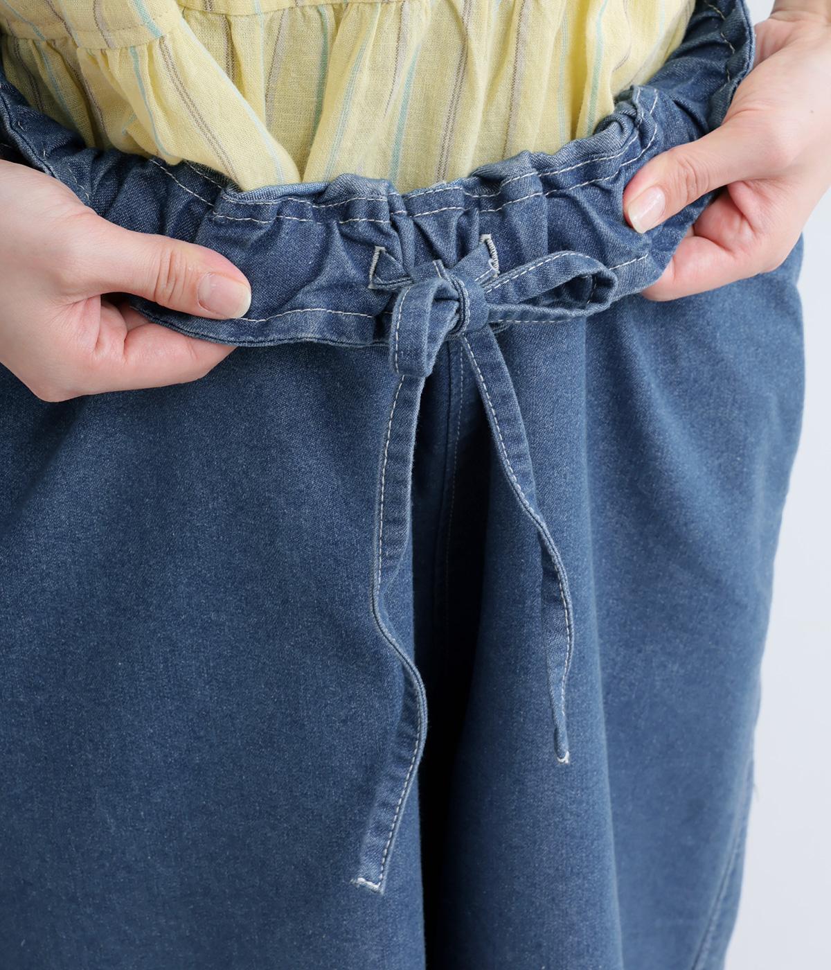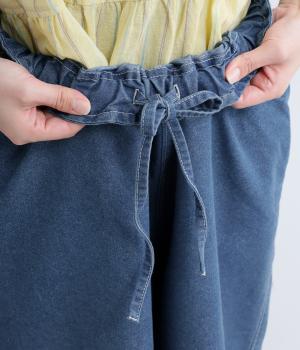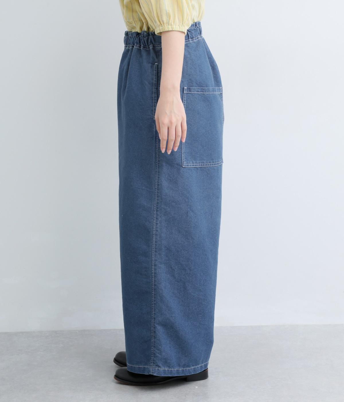 やや低い位置に配した大きなヒップポケットが、気になるヒップまわりを自然にカバー。ゆったりとしたワイドシルエットが、こなれた雰囲気を演出します。ウエストゴムの仕様でリラックス感を添えた、安心の穿き心地です。