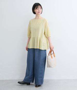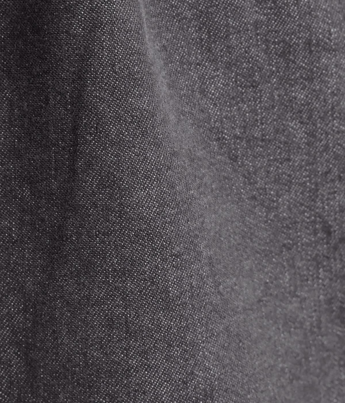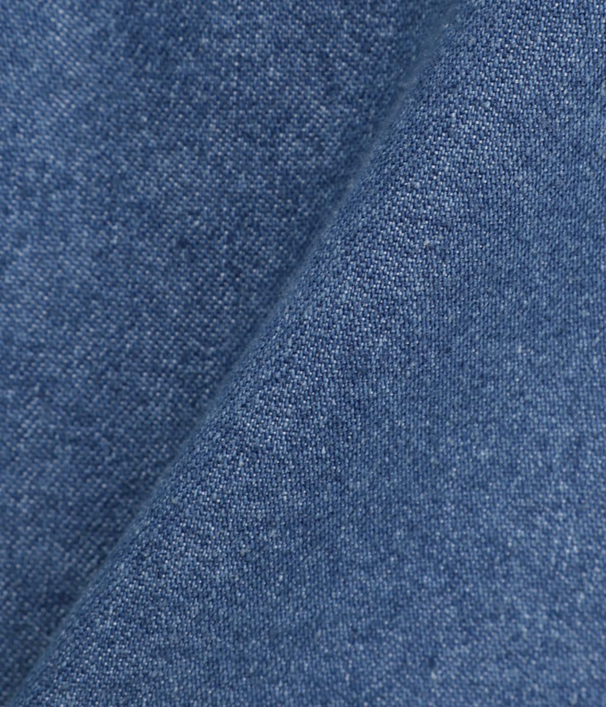 コットンにポリエステルをブレンドした、厚すぎず薄すぎない肉感のデニム生地です。ゴワつき感の少ない、穿きはじめからやわらかく肌になじむ質感で、ロングシーズン活躍します。