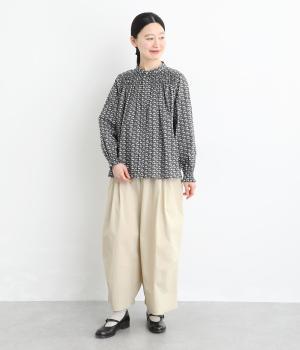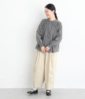 カジュアルさと上品さを兼ね備えた混紡生地です。ストレッチが効いて動きやすく、自然なシワ感があって扱いやすい、デイリーに使いにぴったりな素材感です。