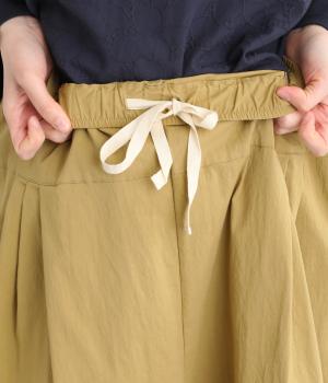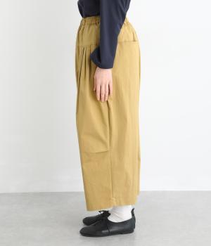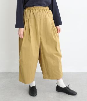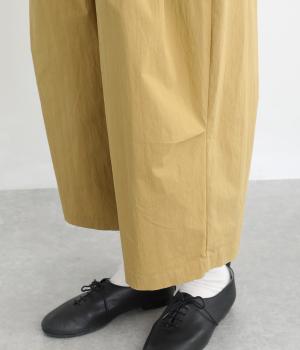 ナイロンとコットンのいいとこどりな素材感で、さまざまなスタイリングに着まわしできるパンツです。ワイドなシルエットを足首の見える丈感に仕立て、抜け感のある仕上がりに。ウエストはゴム仕様でストレスフリーな穿き心地です。