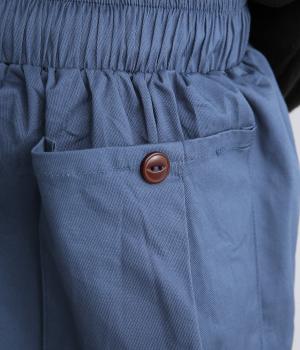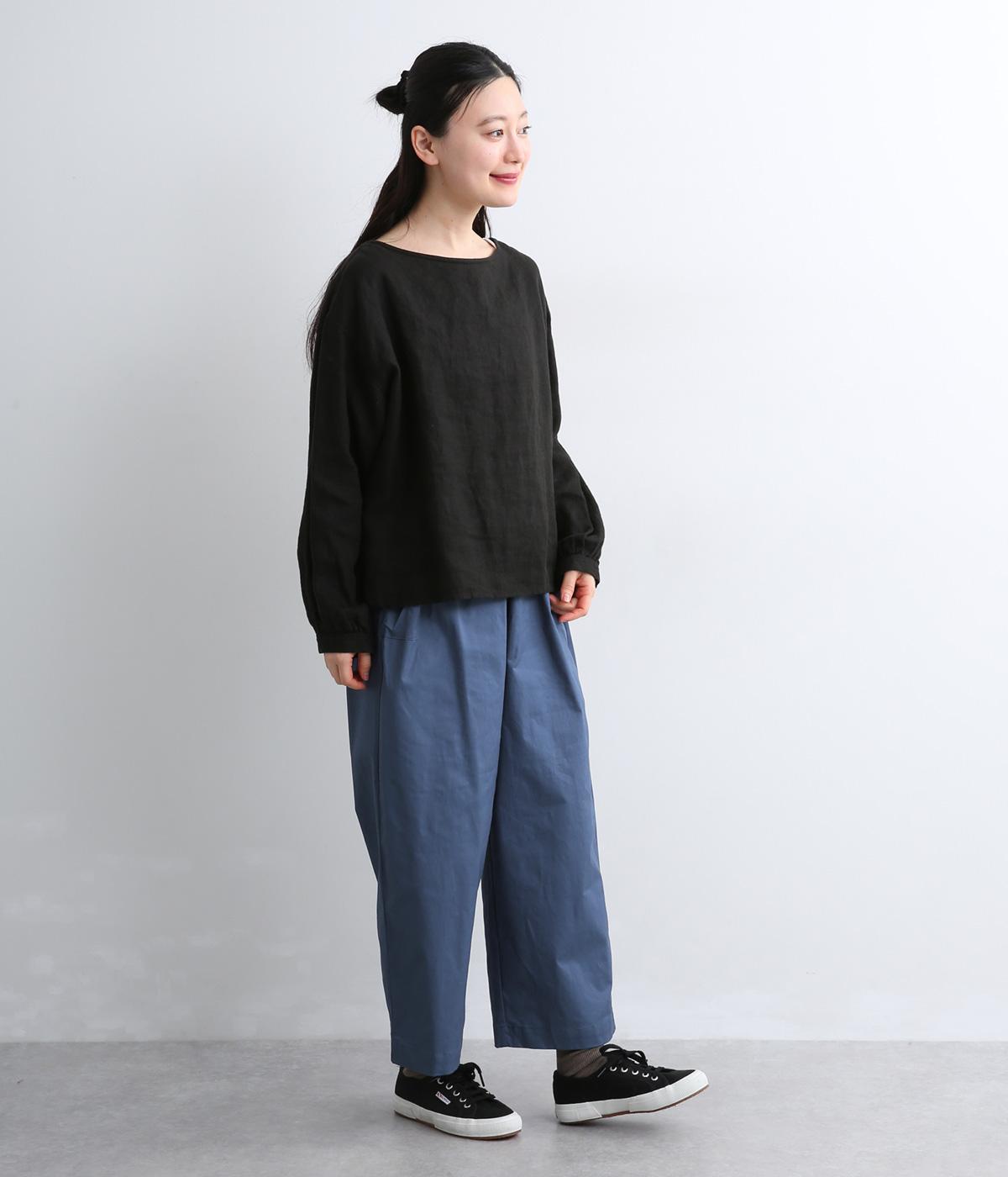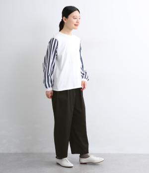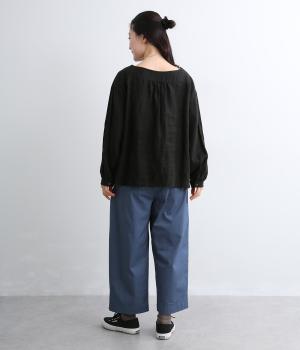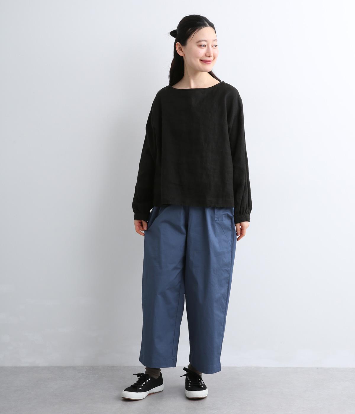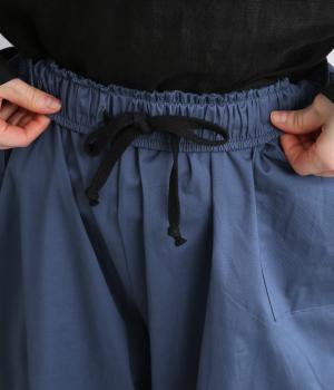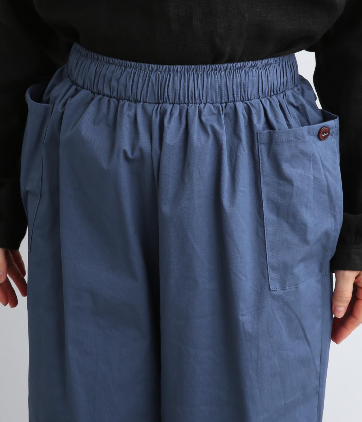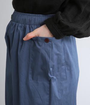 ゆとりのあるストレートシルエットに、猫目ボタンがチャーミングなサイドポケットでアイキャッチを設けました。リラクシーだけどルーズに見えない丈感にこだわり、デイリーに活躍。ウエストはフィット感のいい総平ゴムに内紐つき。