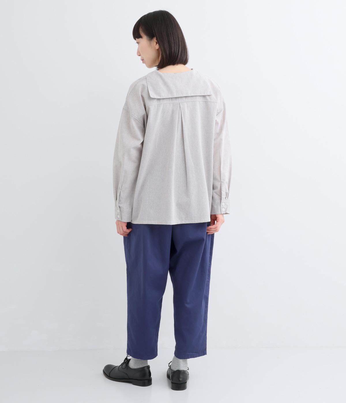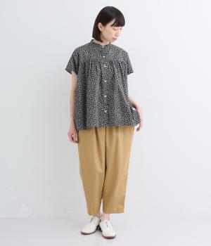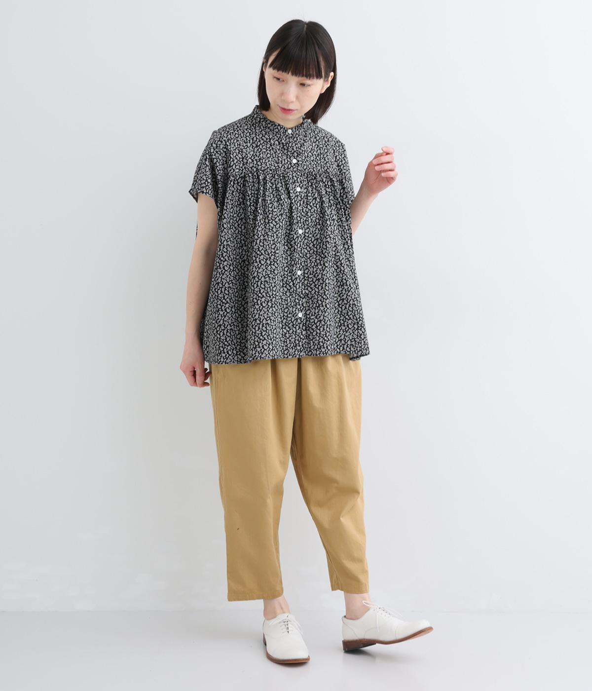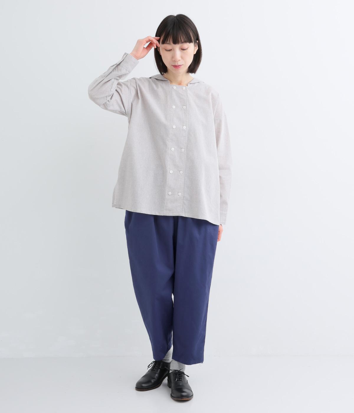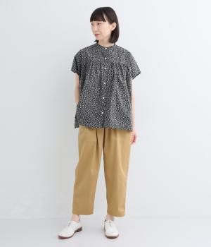 やや薄手のコットンツイル生地です。しなやかなハリでシルエットをきれいに表現。さらりと肌ばなれのいい素材感で快適な着心地です。