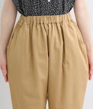 ウエストゴムでリラックスした穿き心地のイージーパンツ。裾に向かって細くなるテーパードシルエットで、足元にすっと抜け感が生まれます。ウエストの微調整ができる内紐付きで、フィット感をアレンジできます。