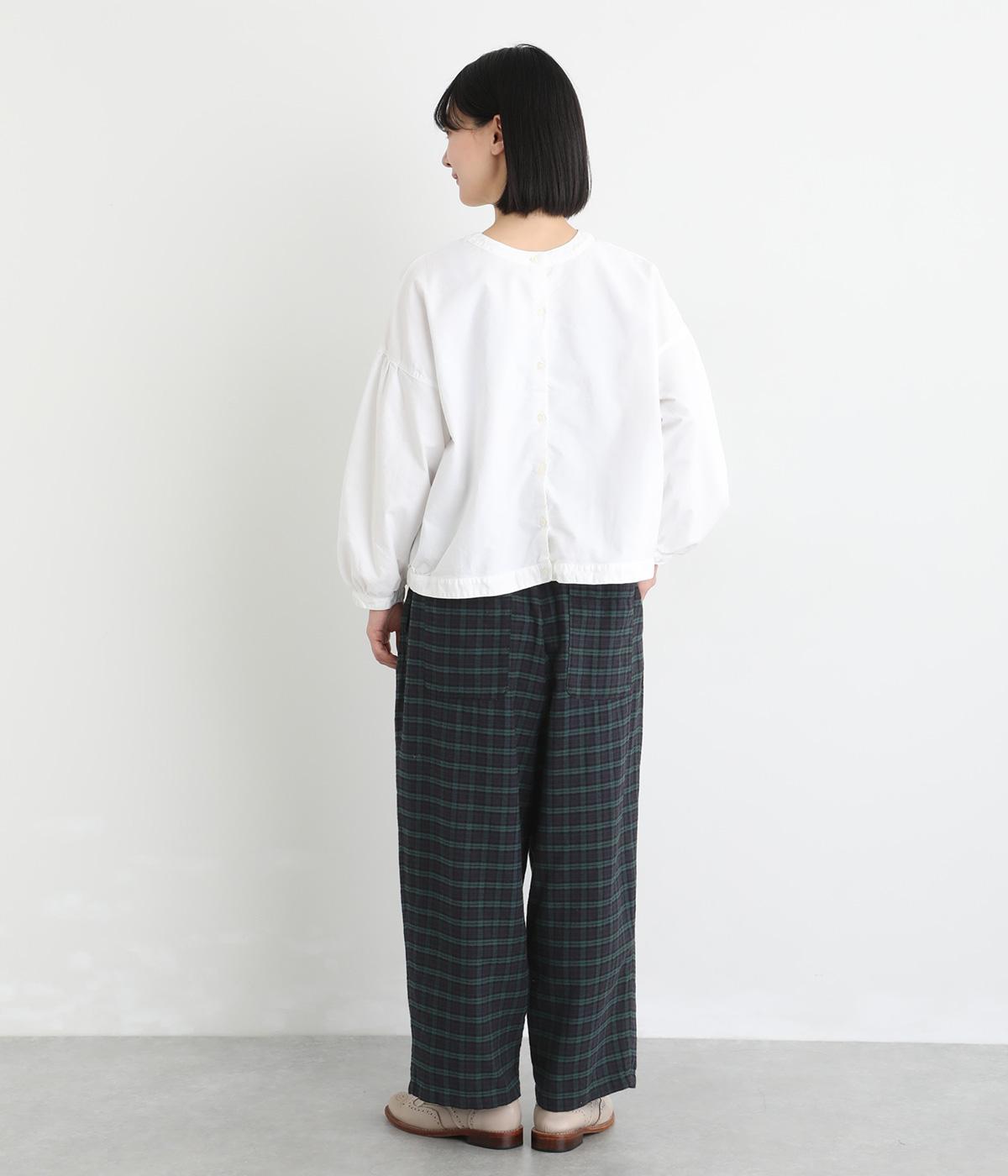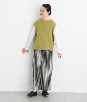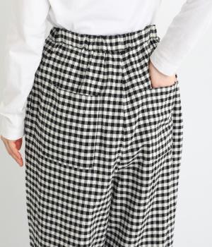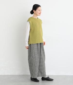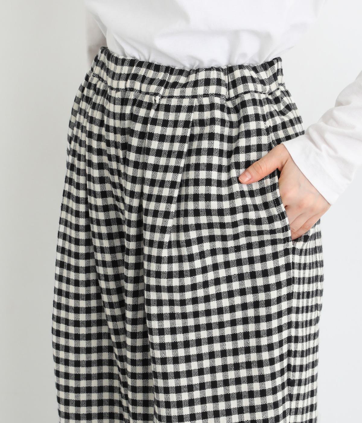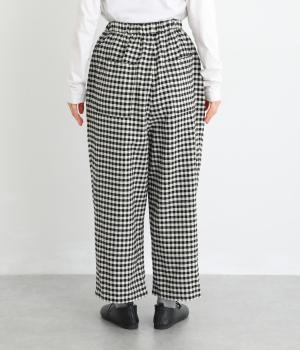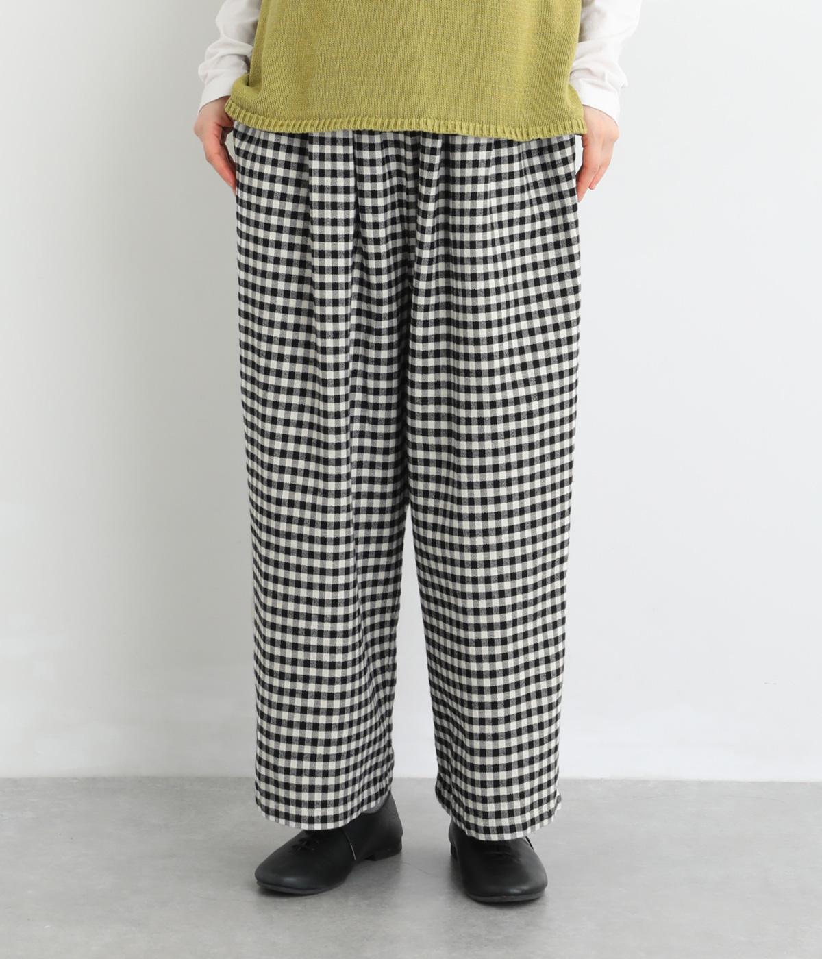 フロントにタックをほどこし、腰まわりにゆとりを持たせながら、裾へすとんと落ちるワイドシルエットに仕立てました。広がりすぎないラインで、すっきりとした印象に。ウエストはぐるりとゴム仕様で、リラックスしたはき心地も魅力です。プレーンなデザインで幅広いコーディネートに活躍します。