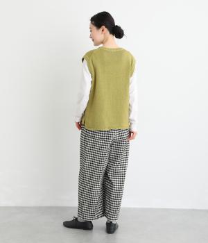 くたっとやわらかな風合いのなかに、ほのかなシャリ感をあわせ持つコットンリネン生地を採用。肌に心地よくなじみながらも、さらりとしたタッチで、ロングシーズン快適に着用できます。ヘリンボーン織りならではの凹凸とした表情が魅力です。