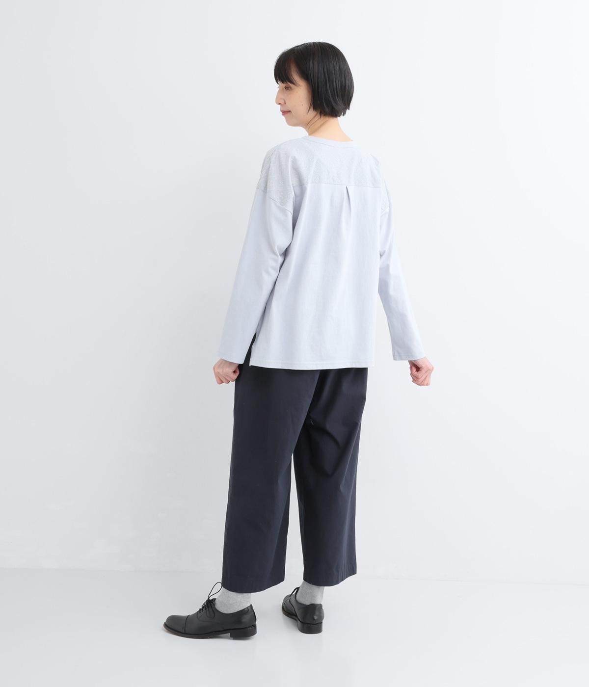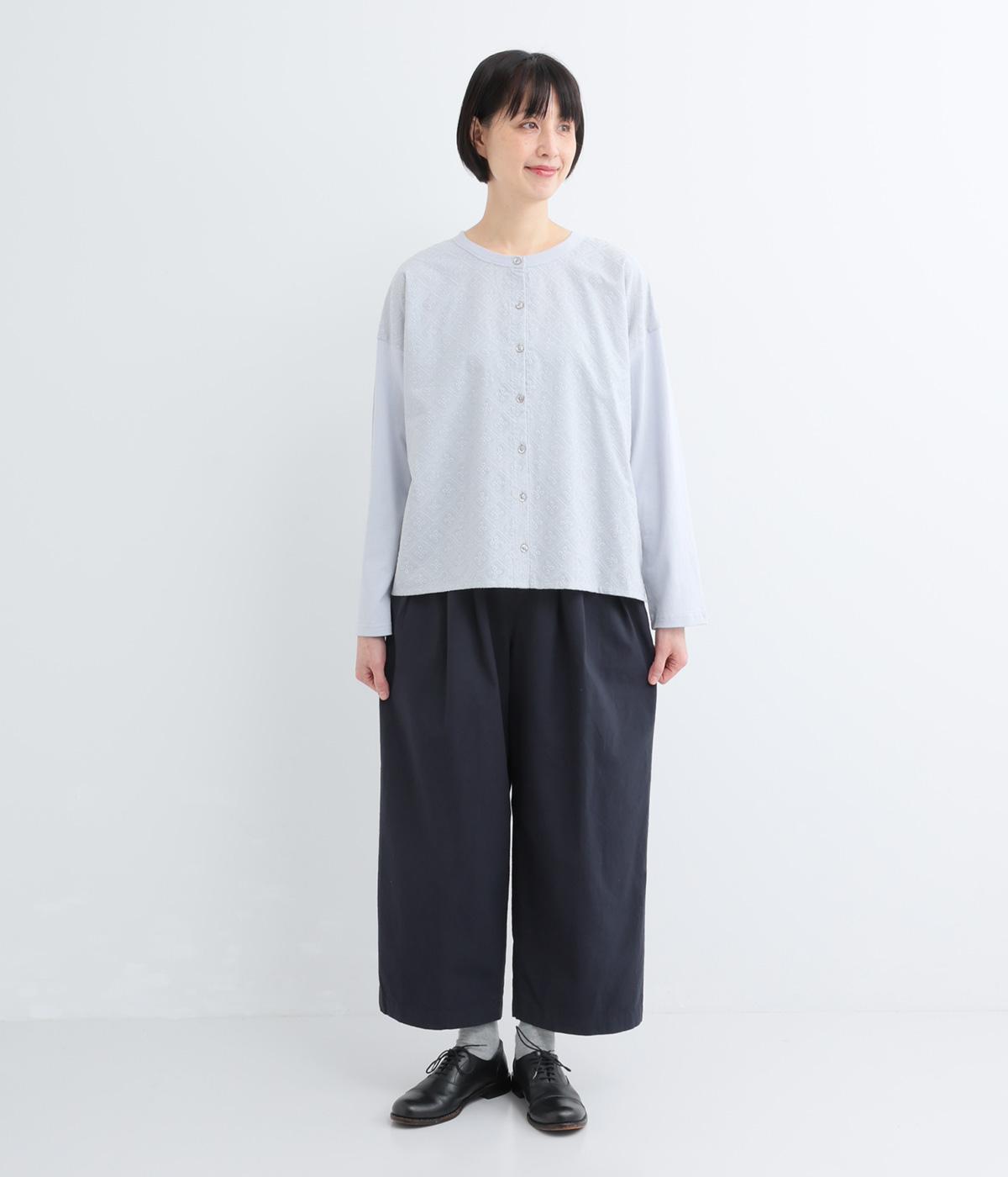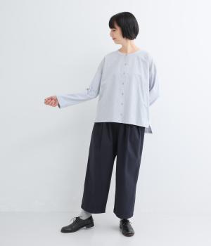 高密度でドライタッチなコットン生地。洗いざらしのようなナチュラルな風合いがこなれた雰囲気を醸します。やや薄手で軽やかな素材感です。