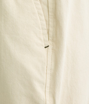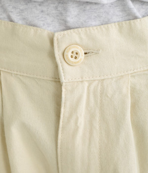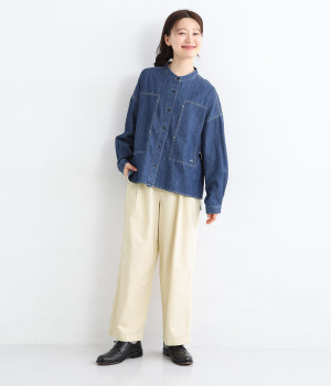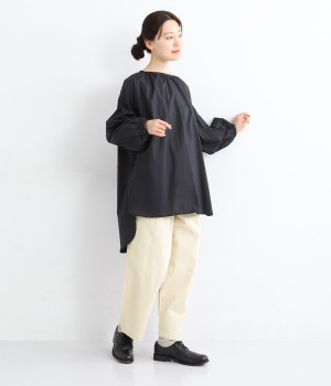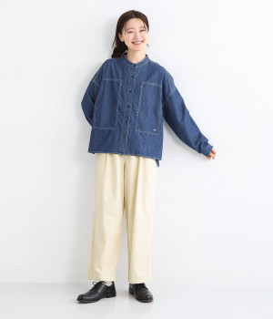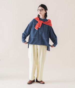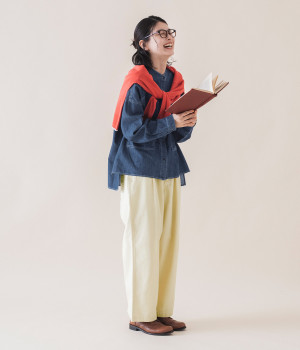 薄手のコットン生地を使用し、気持ちのいいさらっとしたライトなはき心地を実現しました。生地にやわらかさもあり、やさしい風合いを感じられるのでデイリーにぴったりです。