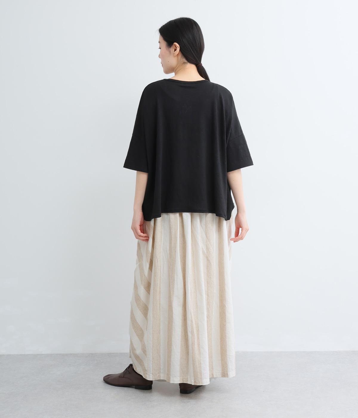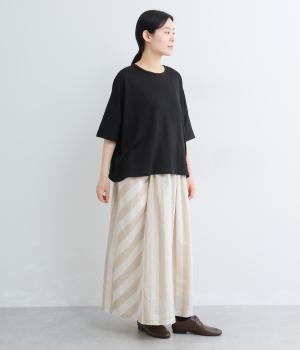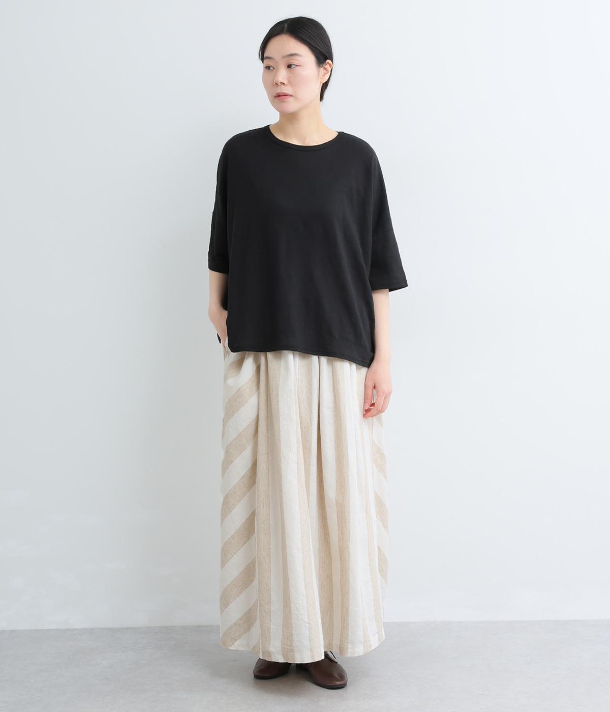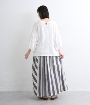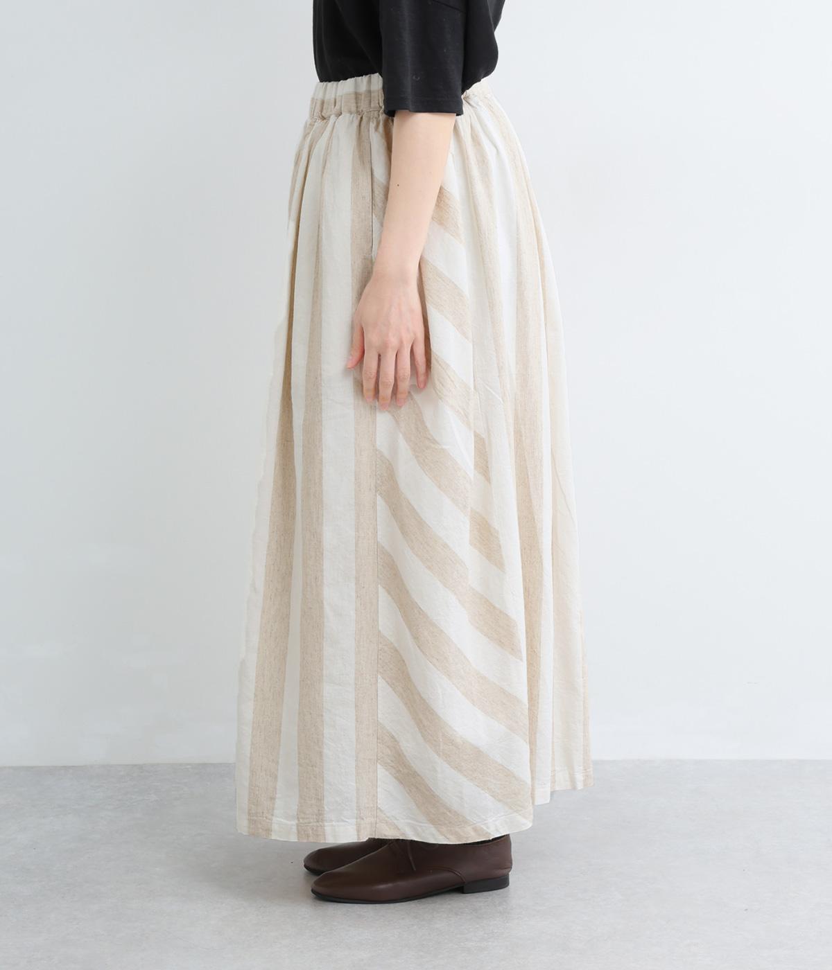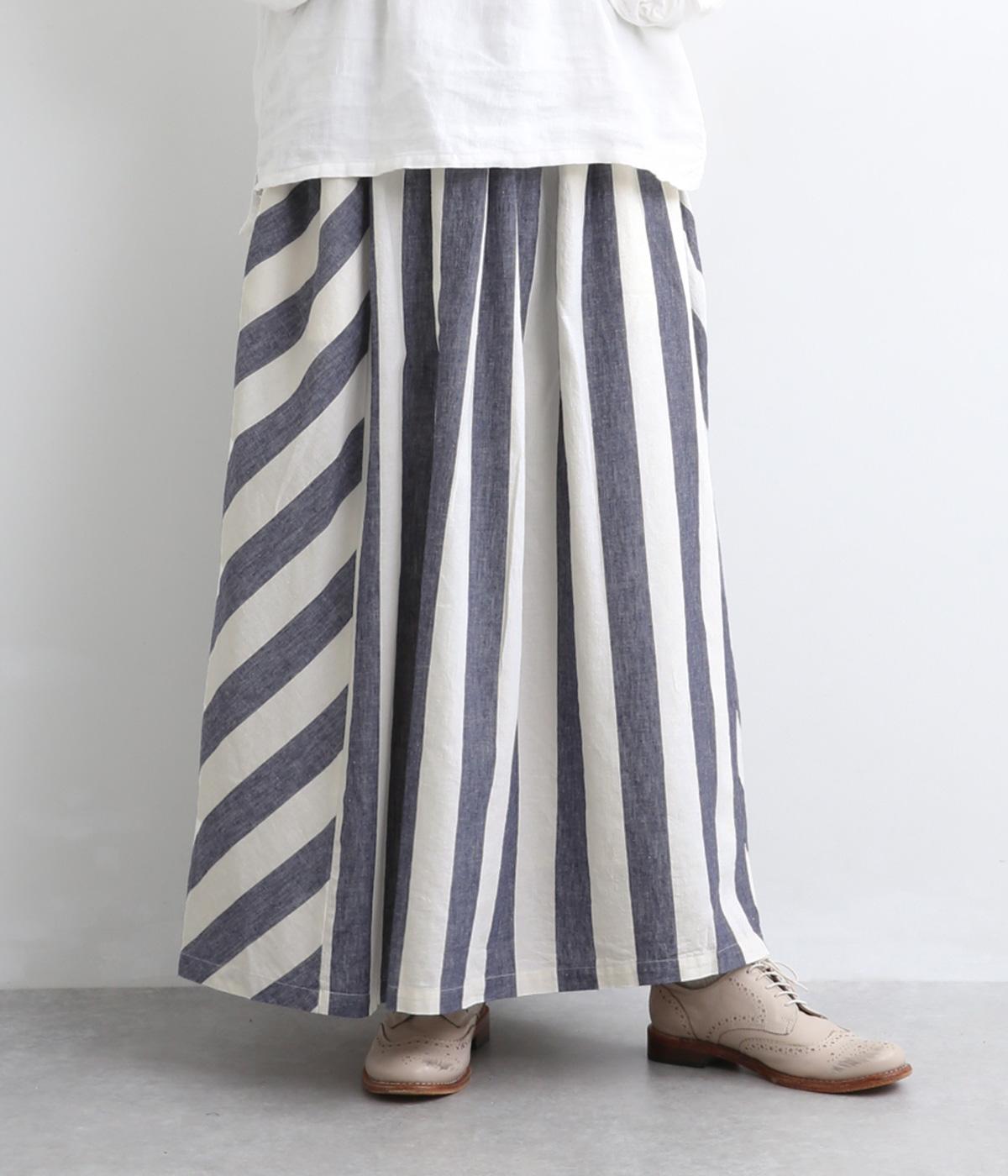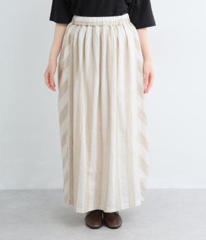 ストライプとボーダーの切り替えがさわやかに映えるスカートです。ウエストはゴム仕様でゆったりとした着心地。ふんわり広がるシルエットが女性らしさを引き立て、シンプルなトップスと合わせるだけでスタイリングが完成します。