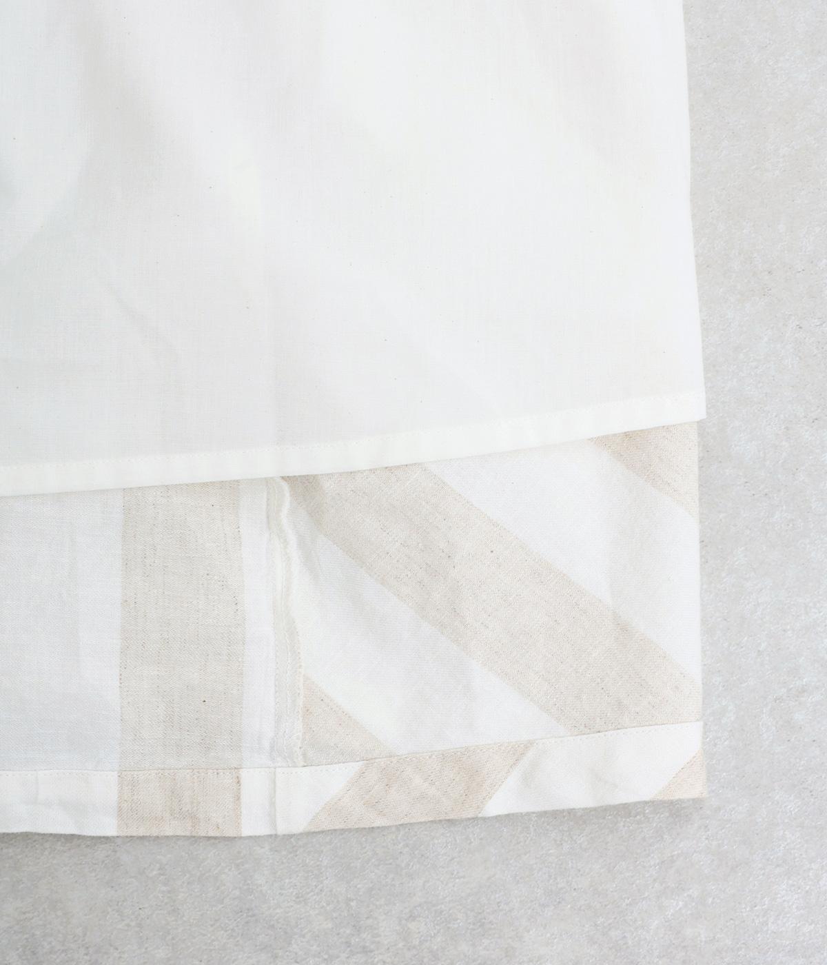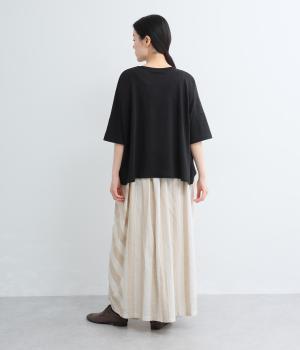 コットンとリネンをミックスしたやわらかな布帛素材です。天然素材ならではの清涼感のある風合いで肌になじみやすく、裏地付きで透け感を気にせず軽やかに着用できます。