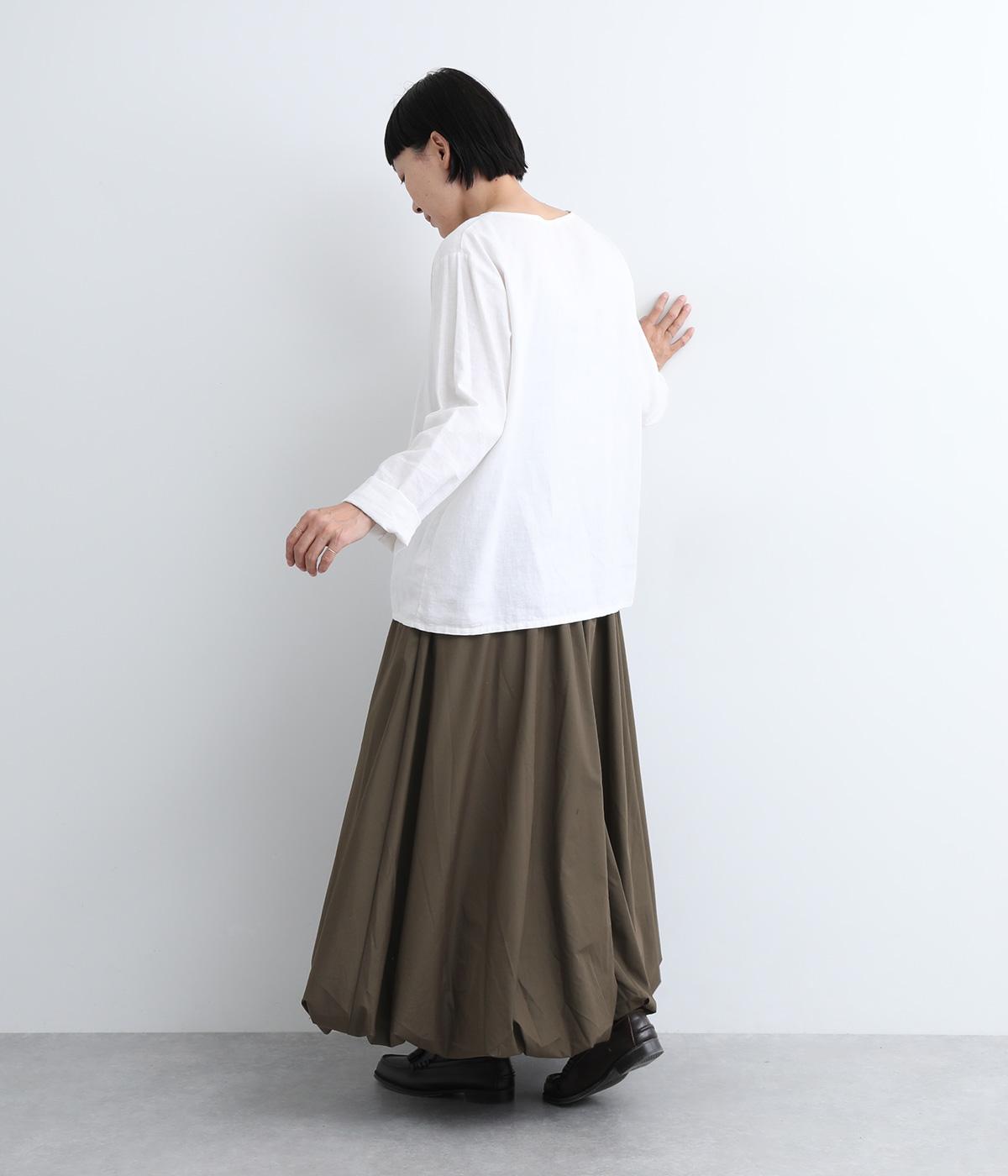 シンプルな合わせでも印象的なスタイリングに導いてくれるバルーンシルエットのスカートです。足元がすっきりのぞく丈感にこだわり、バランスよく仕上げました。ウエストはぐるりとゴムを入れたリラックス仕様で、内紐で微調整も可能。