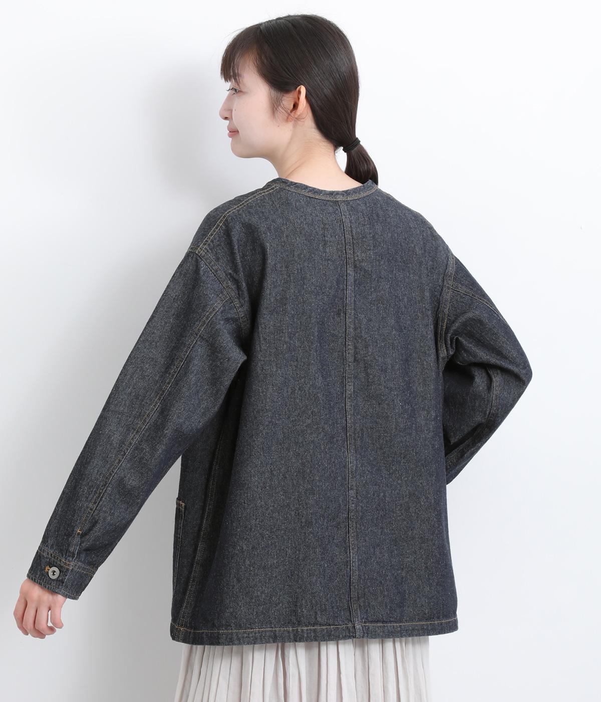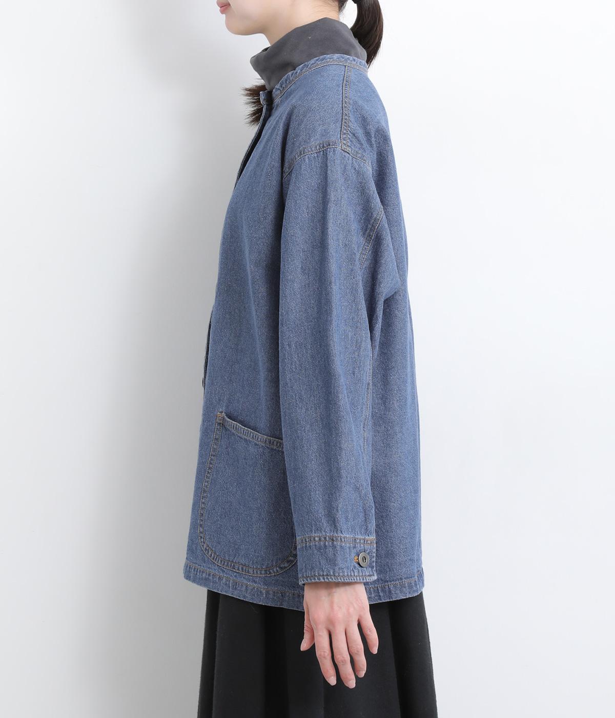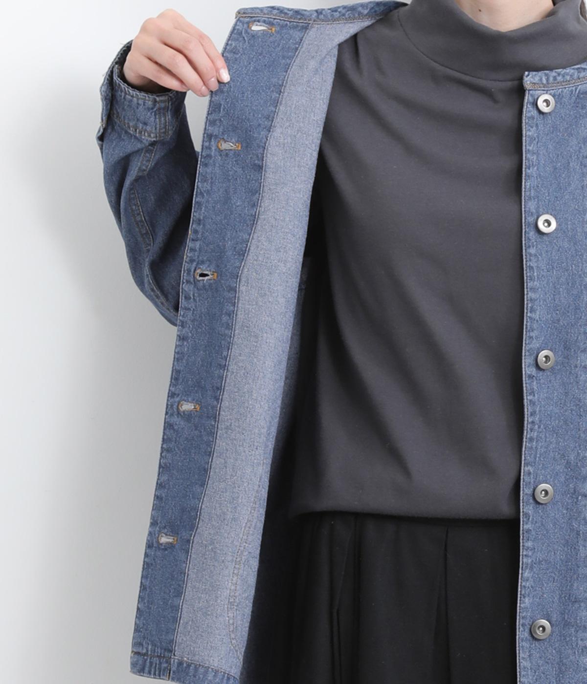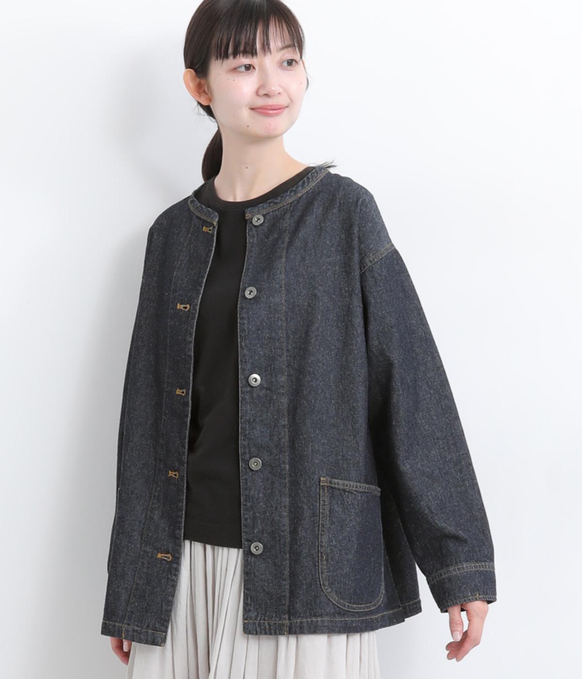 カジュアルなデニムジャケットをノーカラーで大人らしい雰囲気に仕上げました。ほどよいサイズ感も落ち着いた佇まいを後押し。カジュアルスタイルにはもちろん、きれいめなスタイリングにもなじみます。