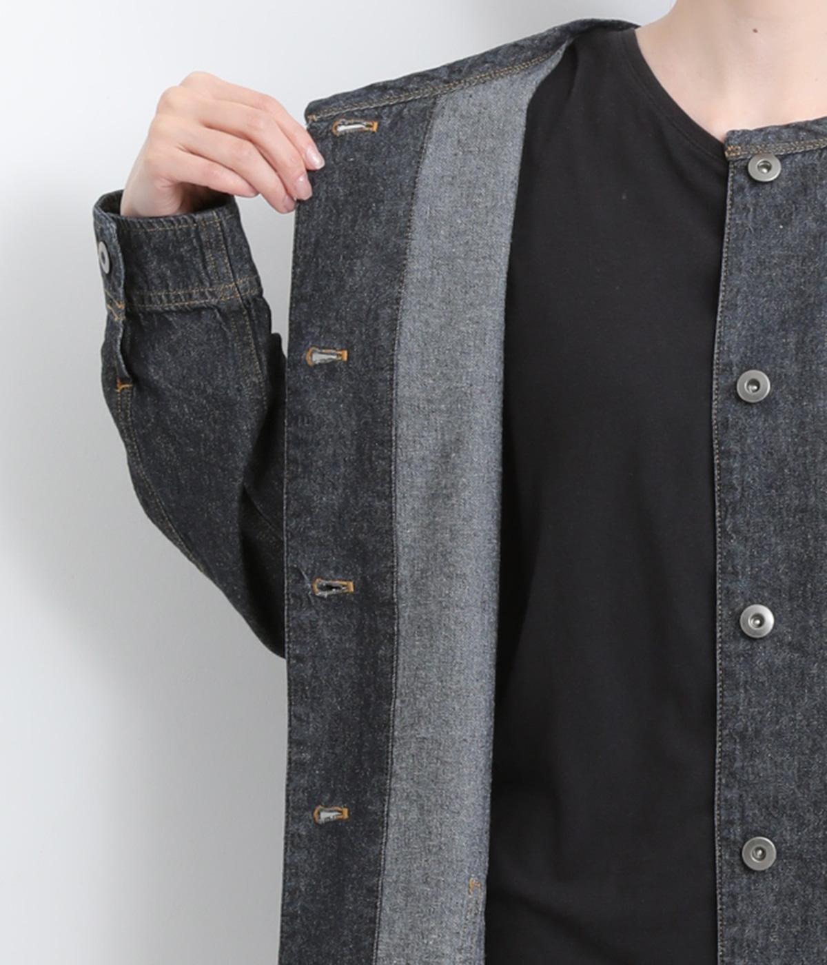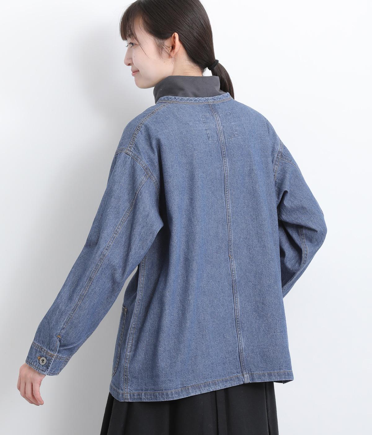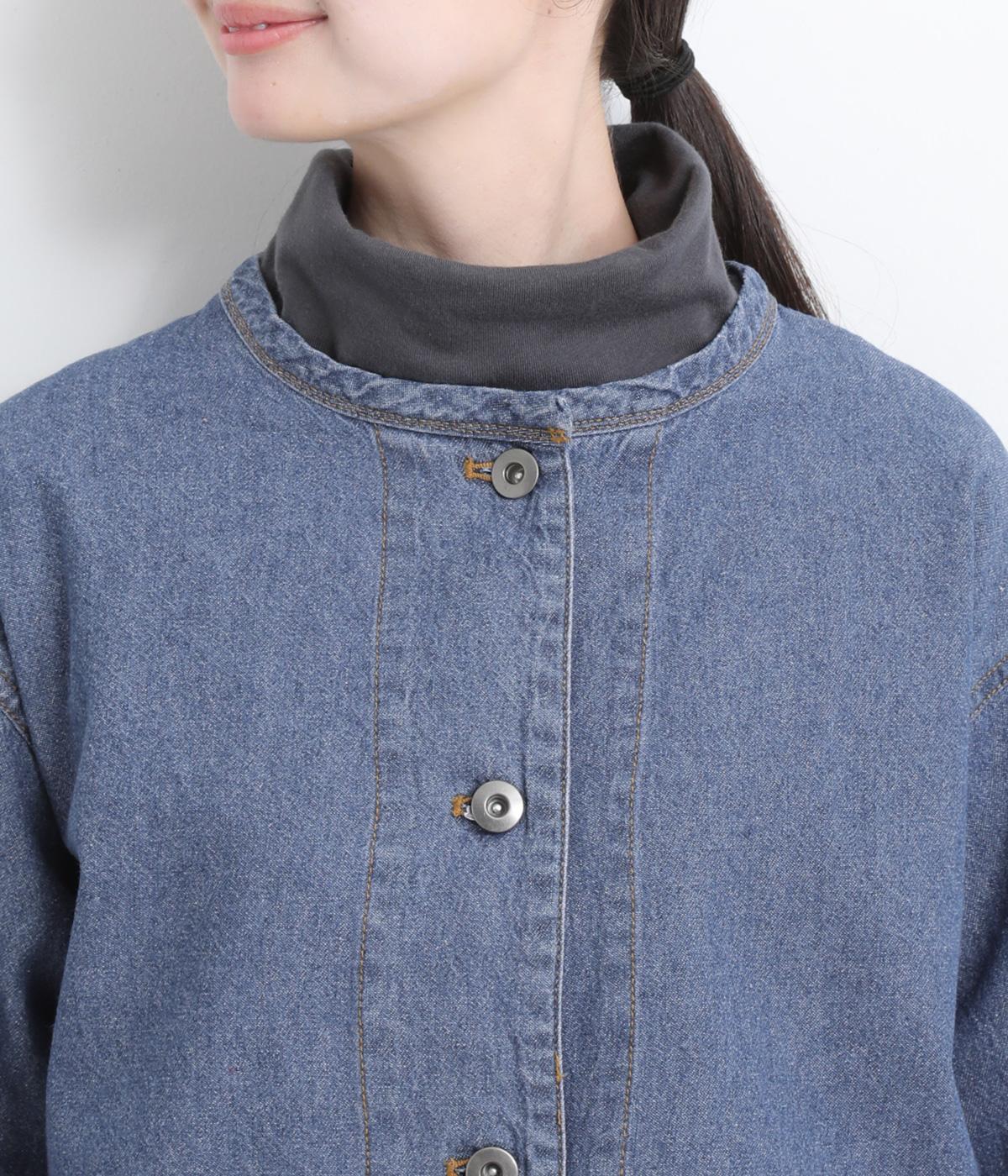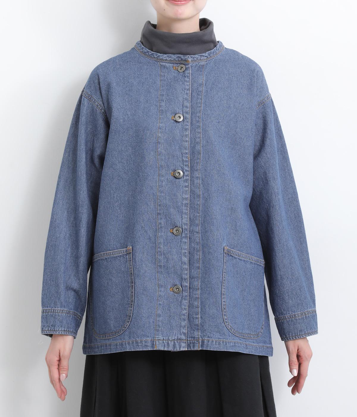 カジュアルなデニムジャケットをノーカラーで大人らしい雰囲気に仕上げました。ほどよいサイズ感も落ち着いた佇まいを後押し。カジュアルスタイルにはもちろん、きれいめなスタイリングにもなじみます。