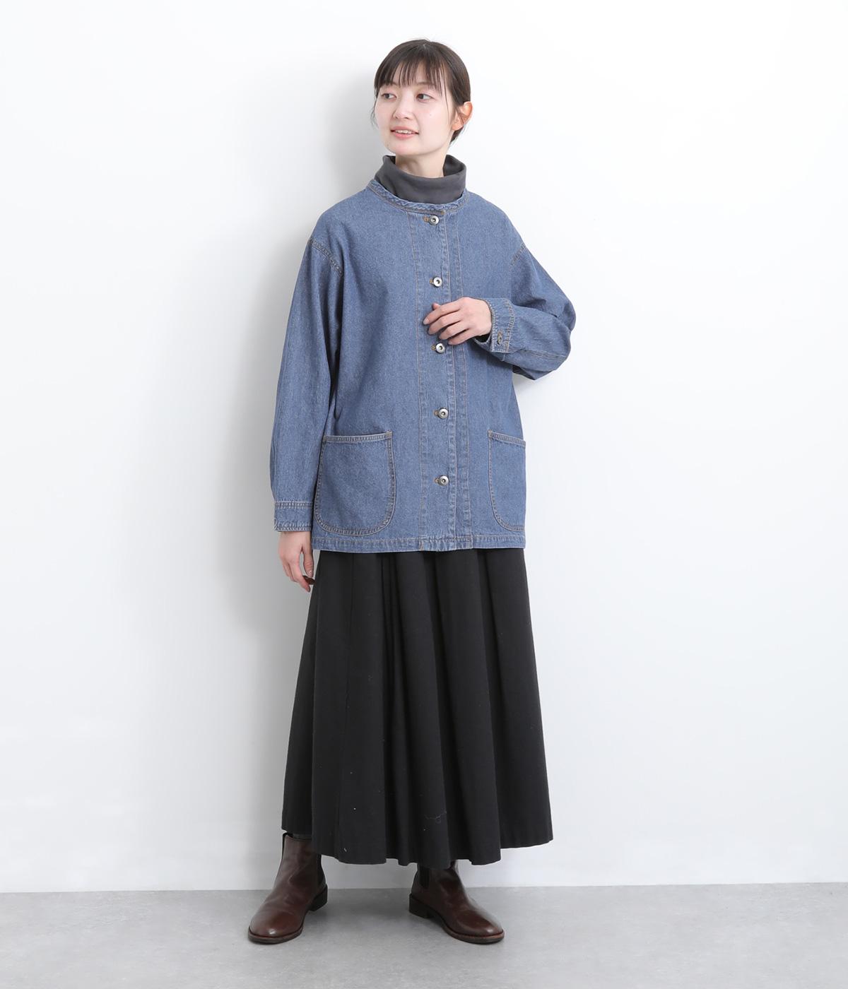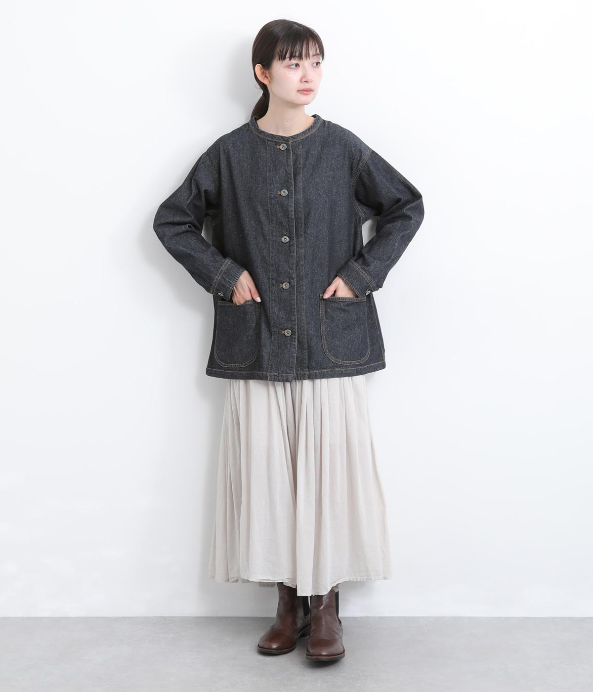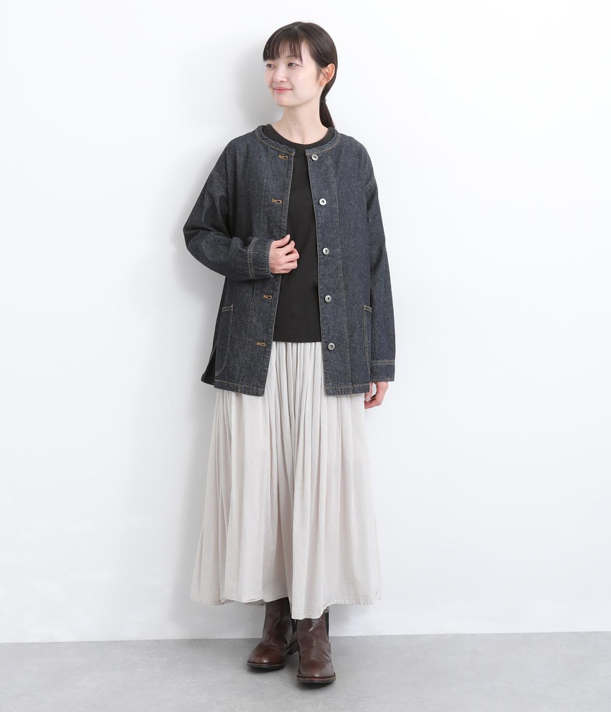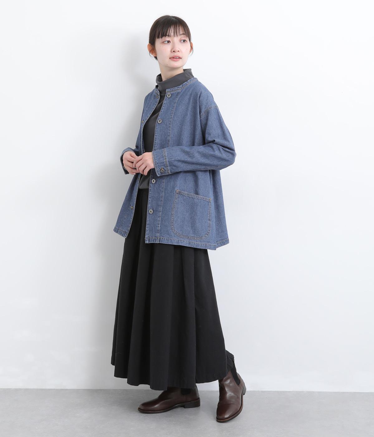 カジュアルなデニムジャケットをノーカラーで大人らしい雰囲気に仕上げました。ほどよいサイズ感も落ち着いた佇まいを後押し。カジュアルスタイルにはもちろん、きれいめなスタイリングにもなじみます。