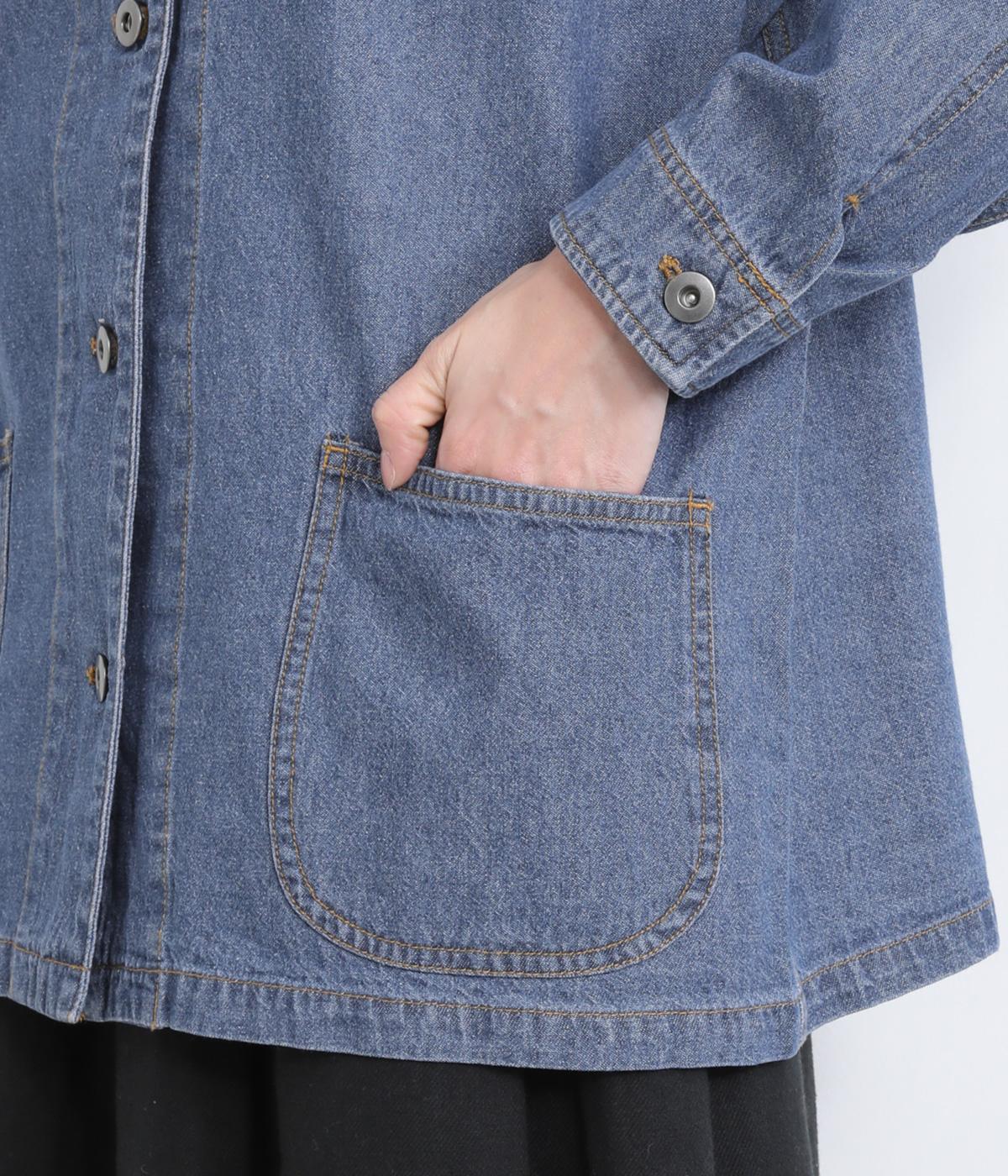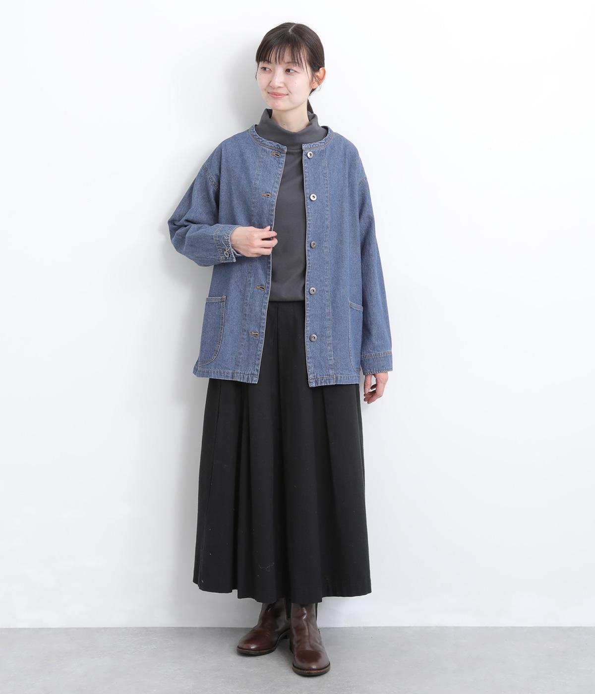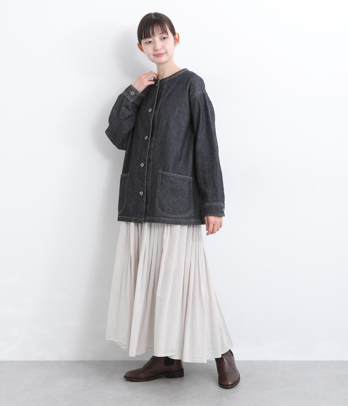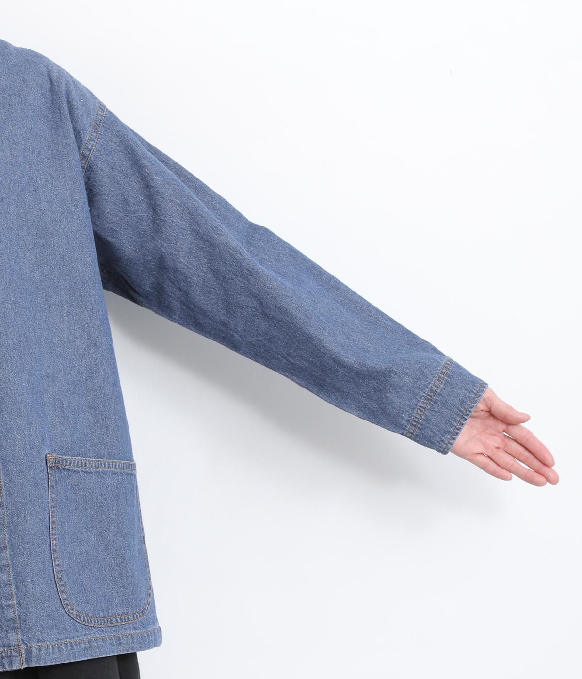 カジュアルなデニムジャケットをノーカラーで大人らしい雰囲気に仕上げました。ほどよいサイズ感も落ち着いた佇まいを後押し。カジュアルスタイルにはもちろん、きれいめなスタイリングにもなじみます。