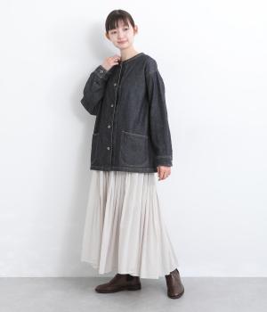 やや薄手で軽やかなライトオンスデニムです。かたさの少ないやわらかな肌なじみで、心地よく着られます。しなやかなハリで優しい雰囲気が魅力の素材感です。