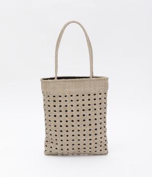 メッシュ生地で仕立てたカジュアルにもきれいめにも合わせやすいトートバッグ。フラットな仕様でコンパクトに持つことができます。500mlのペットボトルやお出かけの必需品がきちんと入る、デイリー使いに丁度良いサイズ感が◎。内側にファスナーポケットも備えています。