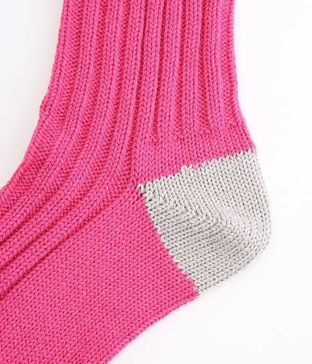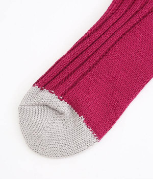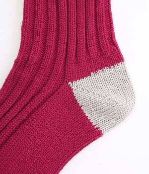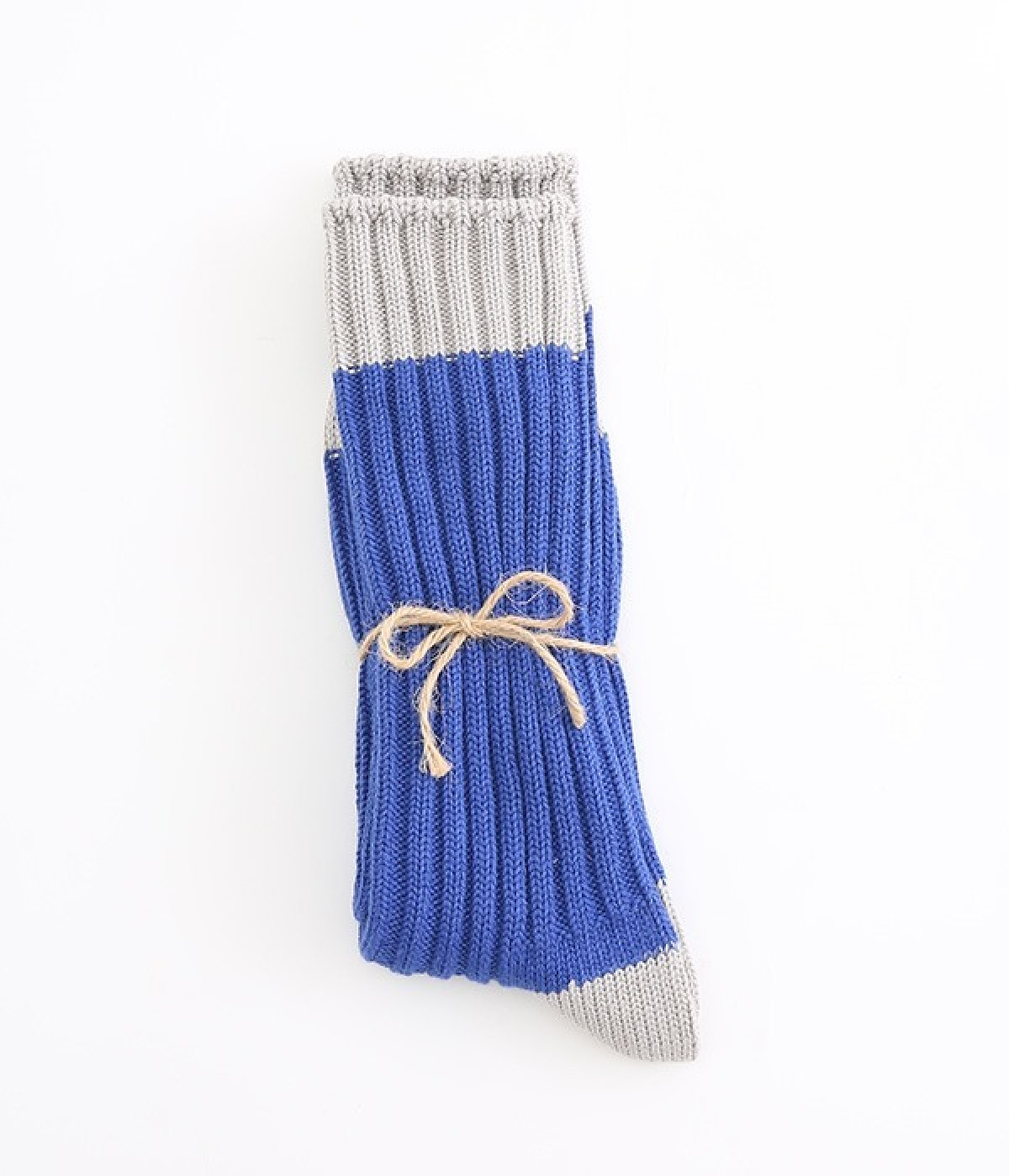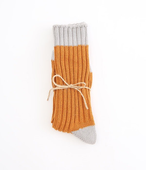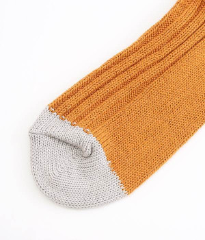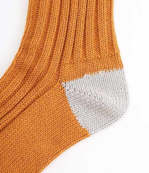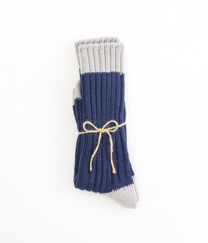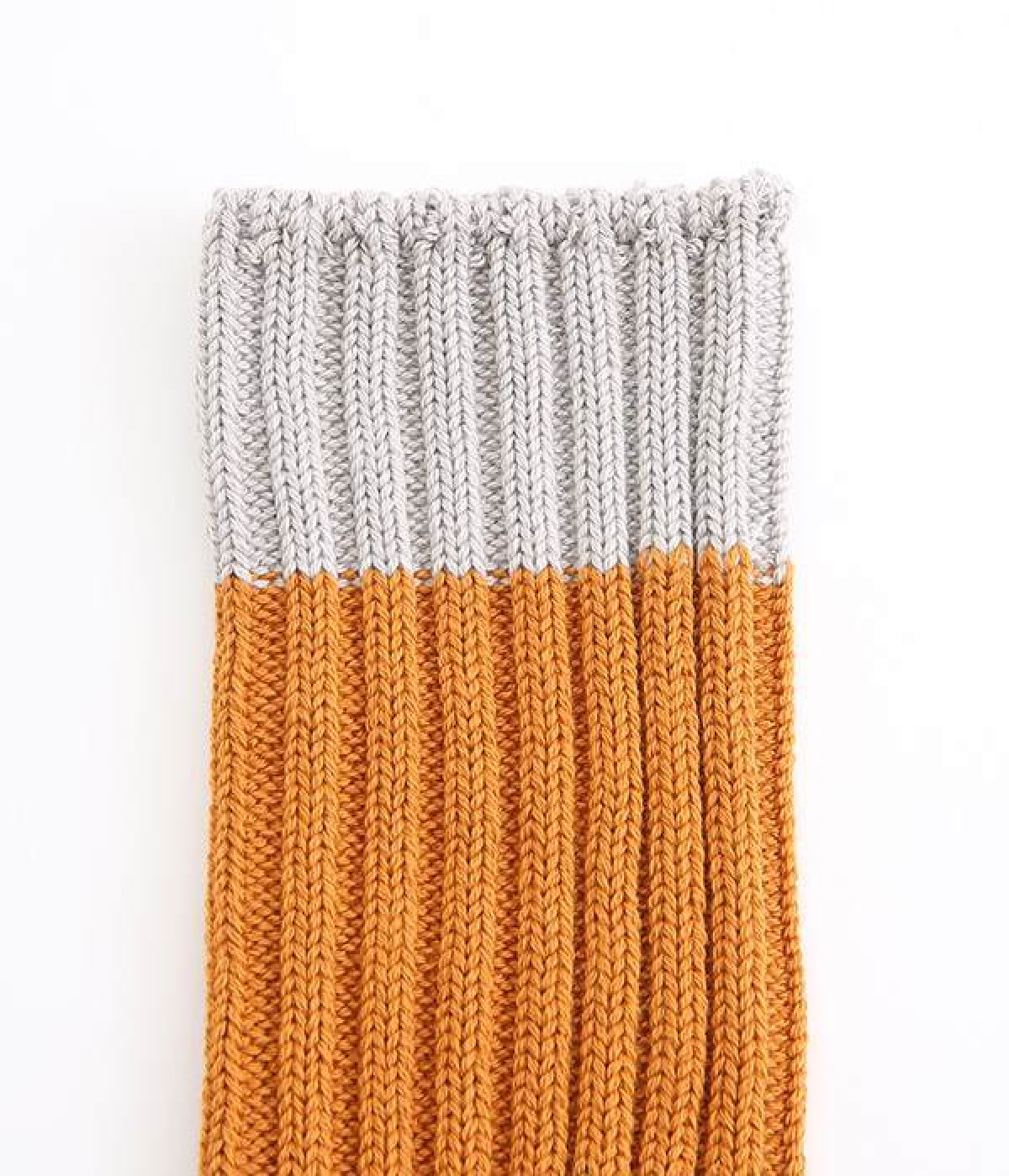 肌触りの良いオーガニックコットンを使用したツートーンのソックスです。良質な素材なので柔らかく伸縮性があり、フィット感も抜群。履き口、かかと、つま先に施したグレーの配色使いがアクセントになります。ブーツやレザーシューズ、スニーカーなど合わせる靴を選ばずシーズンを通して活躍します。