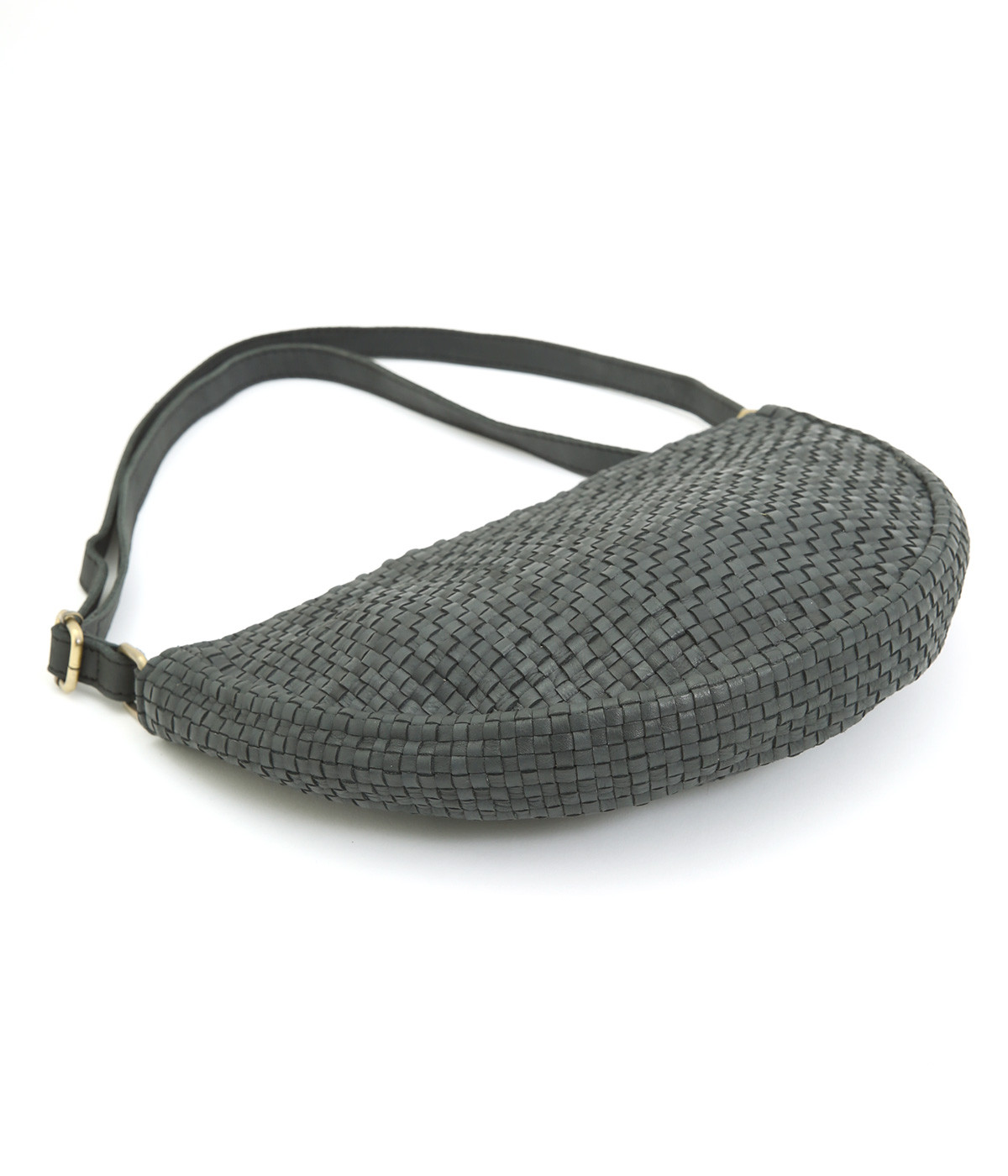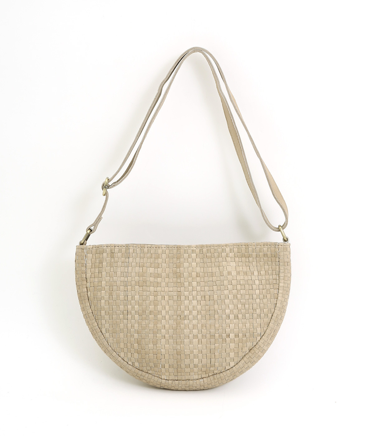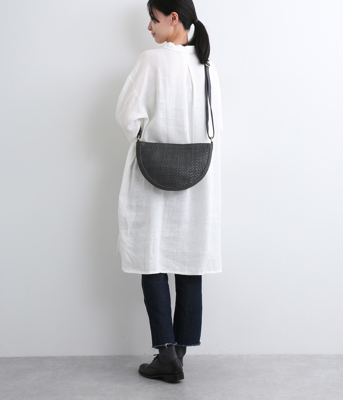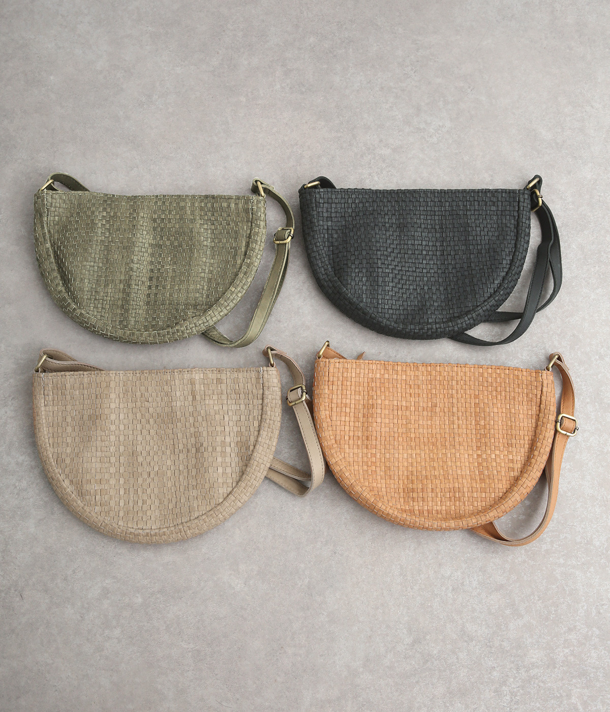 すっきり見せながらもやさしい印象を与えるハーフムーン型のショルダーバッグ。内ポケットが充実しているので整理しやすく、ファスナー開閉で防犯面も◎。ショルダーベルトは長さ調整可能なので、肩掛けもななめ掛けも楽しめます。