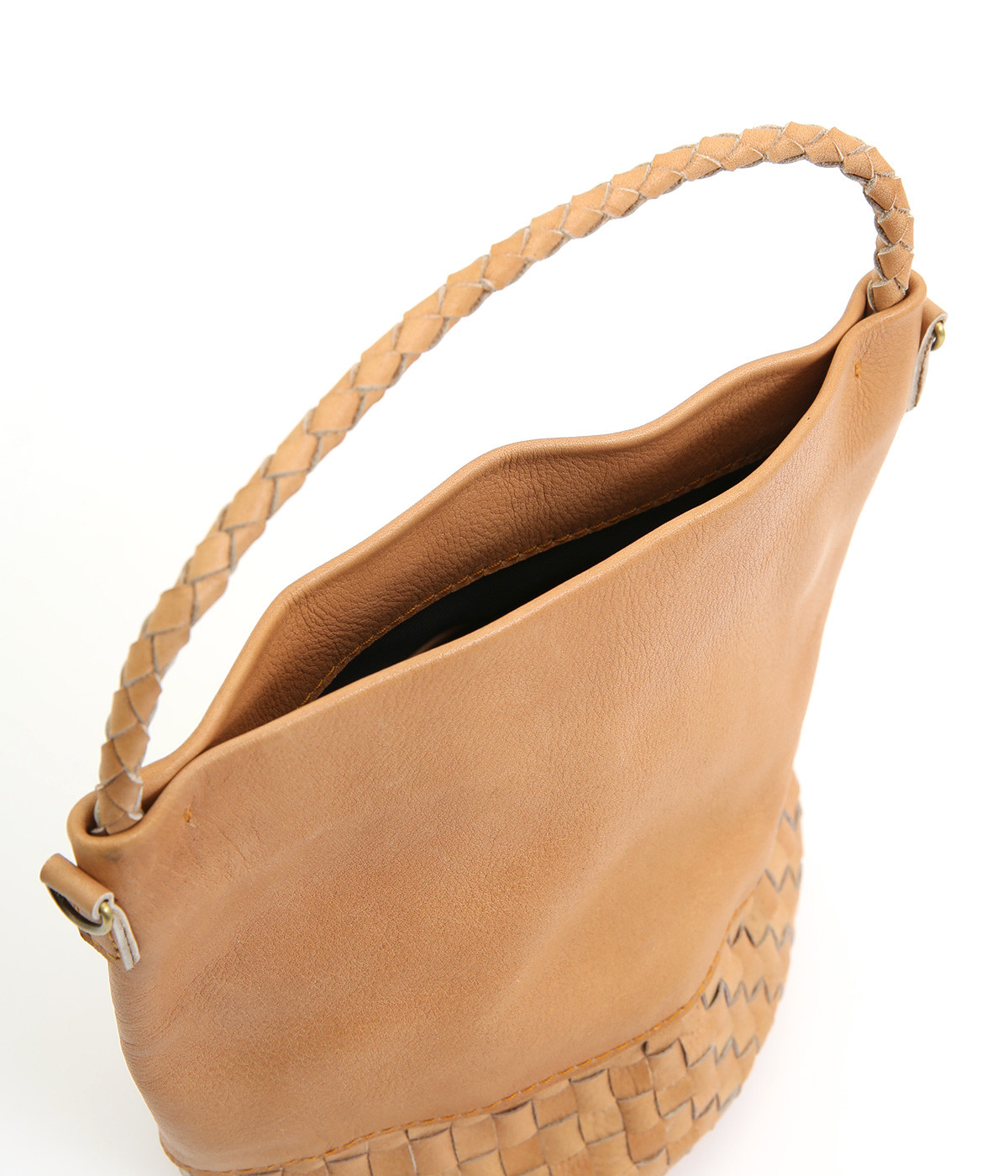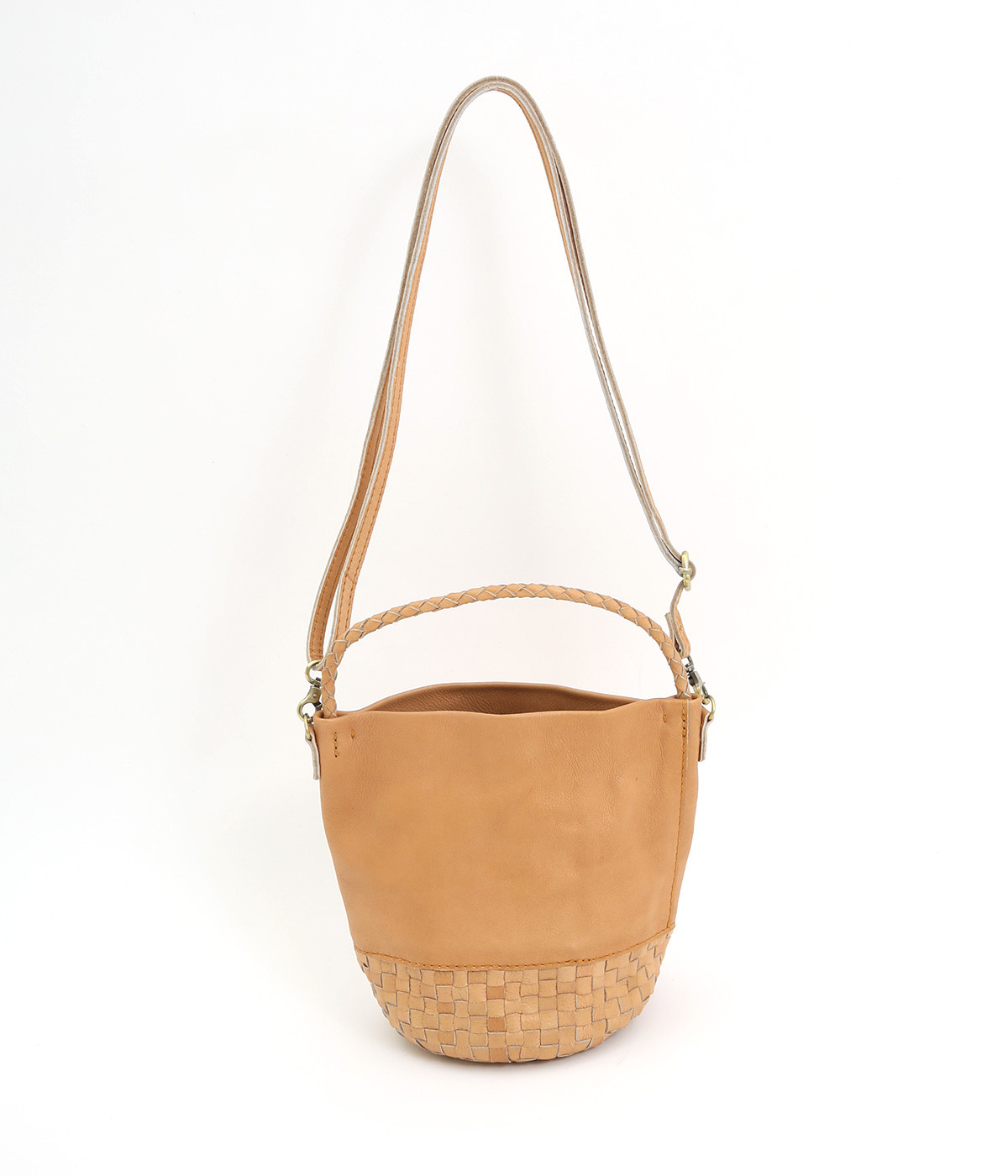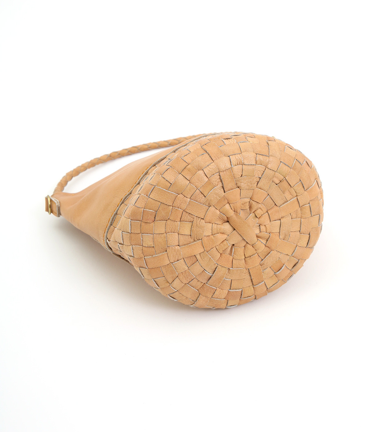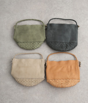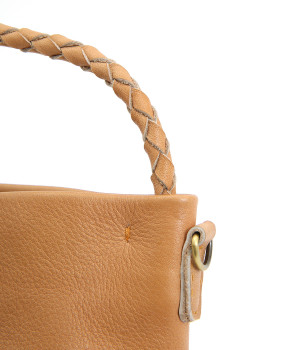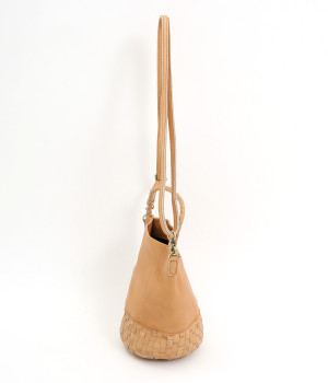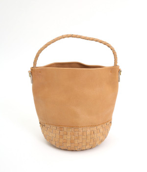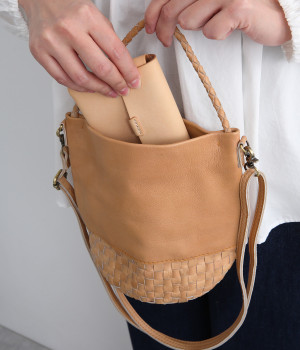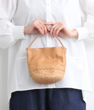 風合いを活かすために自然の染料で仕上げた天然皮革を使用。後染めによる自然な色ムラや豊かな表情が特徴です。手になじむ、やわらかな肌触りも魅力的。ラウンドの底はメッシュ編みで変化をプラスしています。