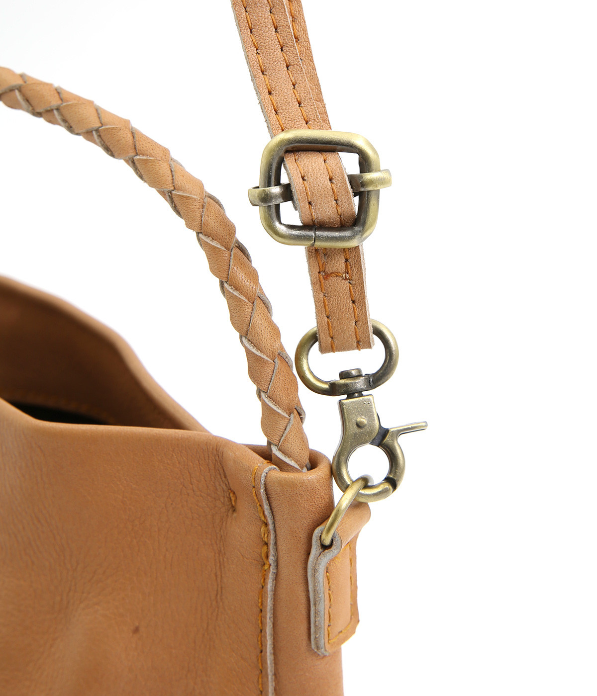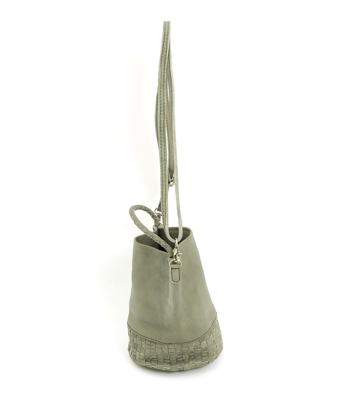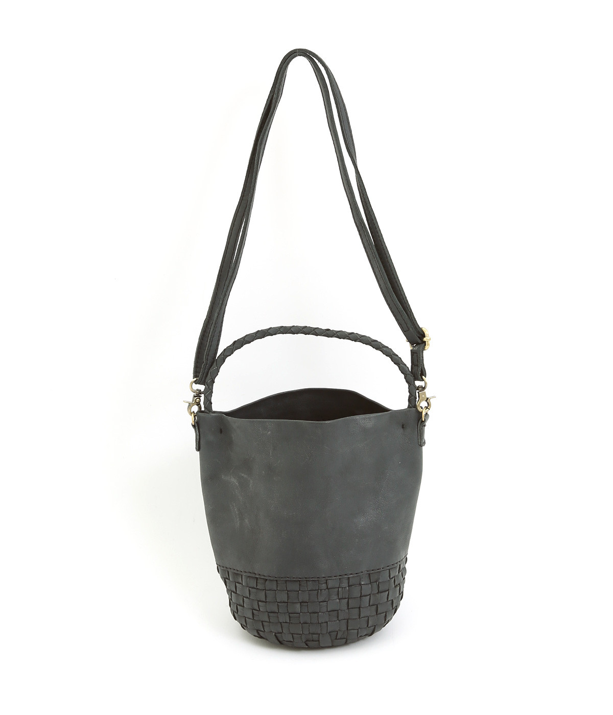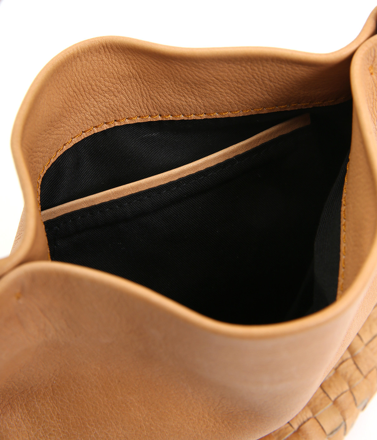 風合いを活かすために自然の染料で仕上げた天然皮革を使用。後染めによる自然な色ムラや豊かな表情が特徴です。手になじむ、やわらかな肌触りも魅力的。ラウンドの底はメッシュ編みで変化をプラスしています。