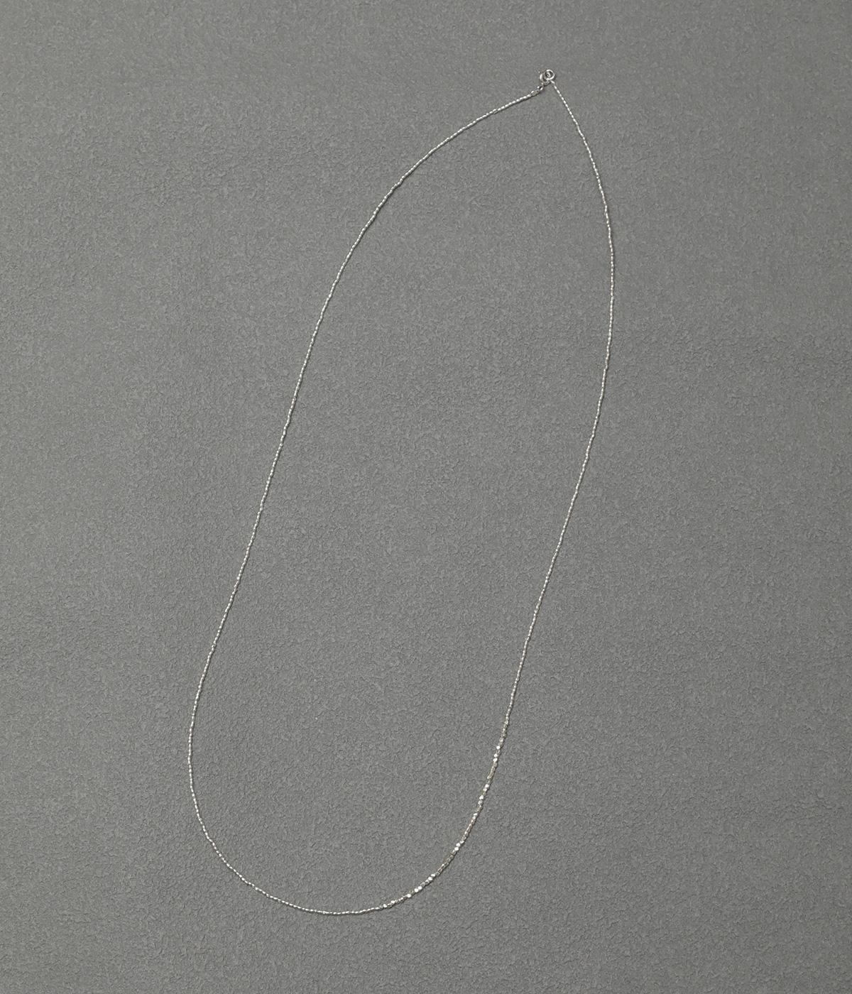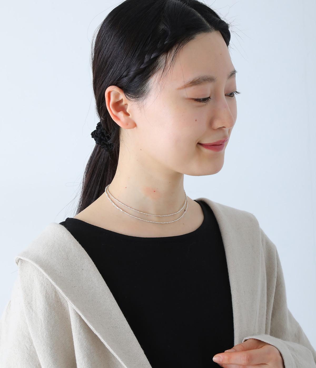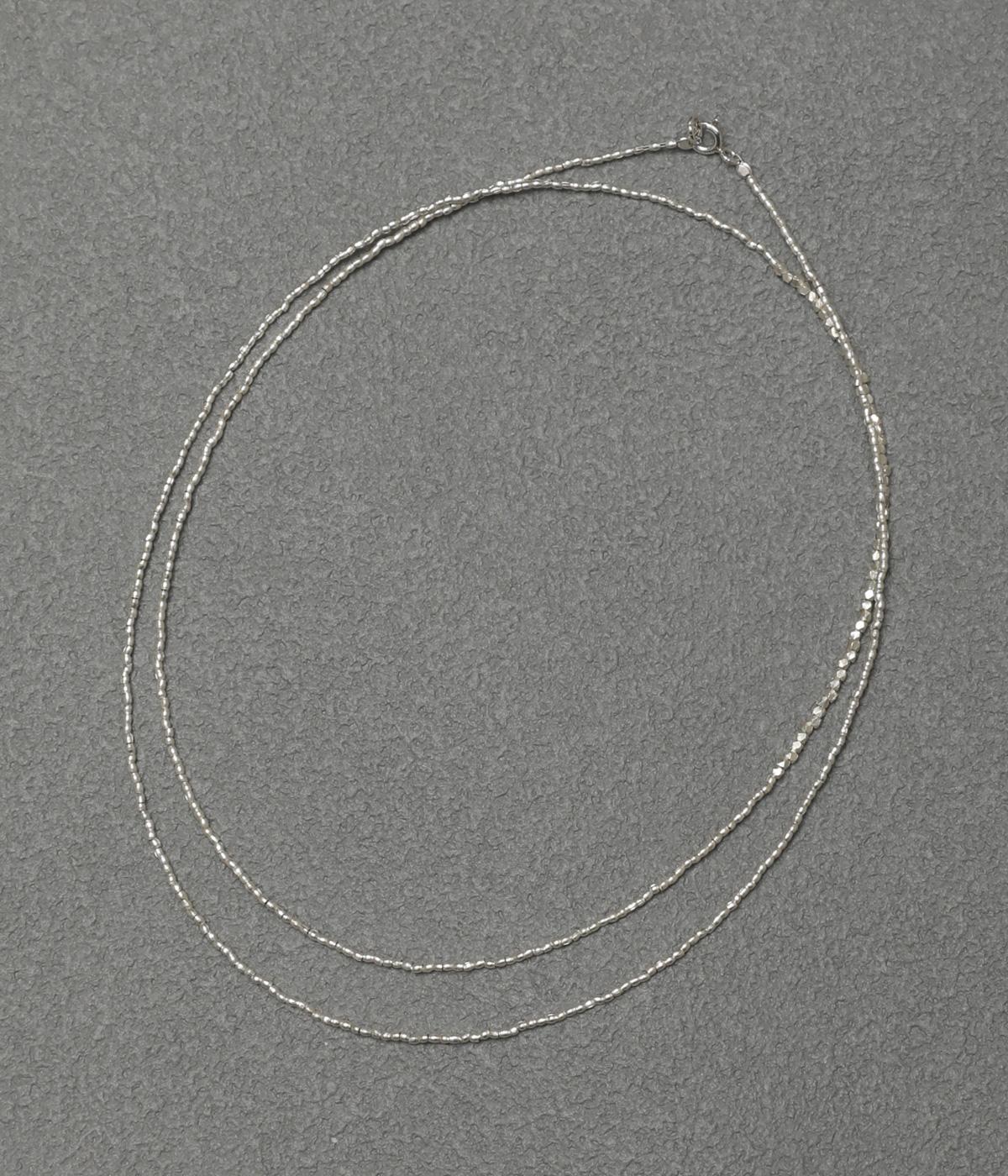 華奢ながらも存在感を放つネックレスです。二重にしたり、多重にしてブレスレットにしたりと、さまざまなアレンジが楽しめます。シンプルで、カジュアルからフォーマルまで幅広くお使いいただけます。