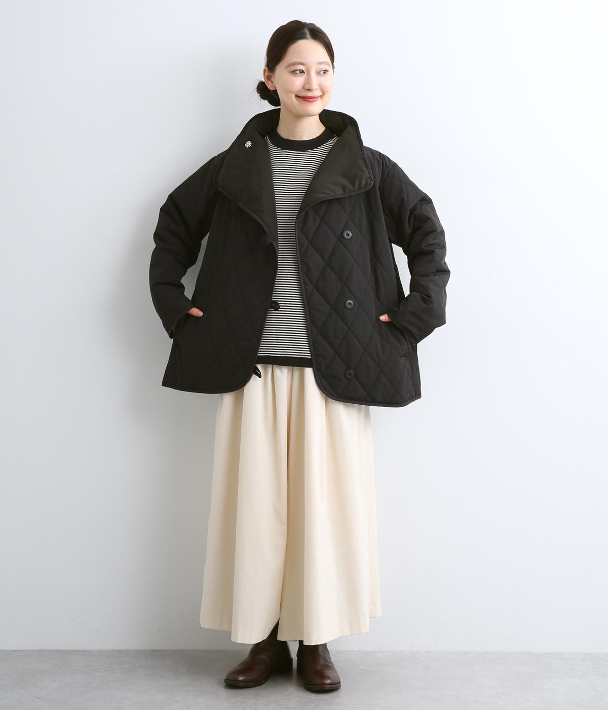 深めの前合わせにハイネックで防寒性もお洒落さも兼ね備えたショートコートです。ループタイプのボタンもレトロなポイント。ボトム合わせしやすく、ワンピースなどにも合わせやすい丈感でデイリースタイルに重宝します。