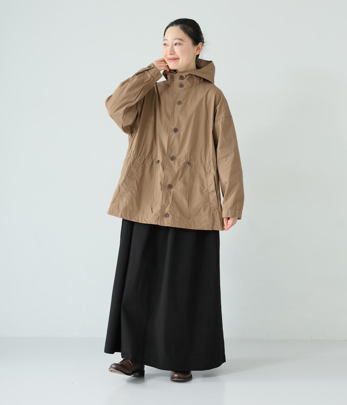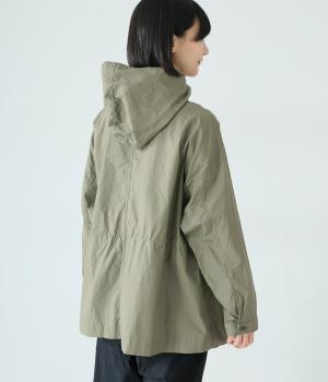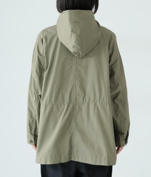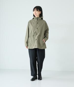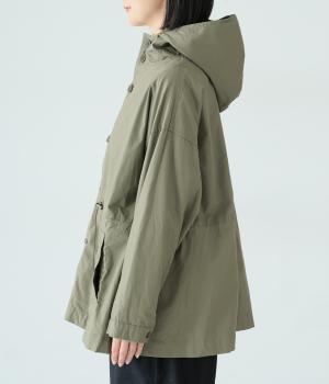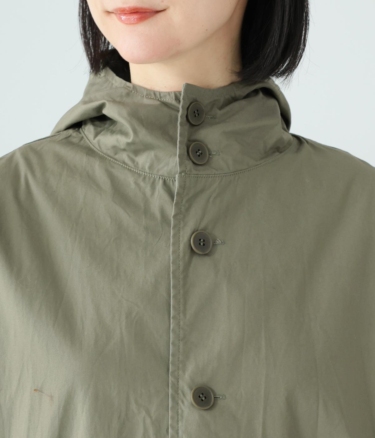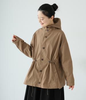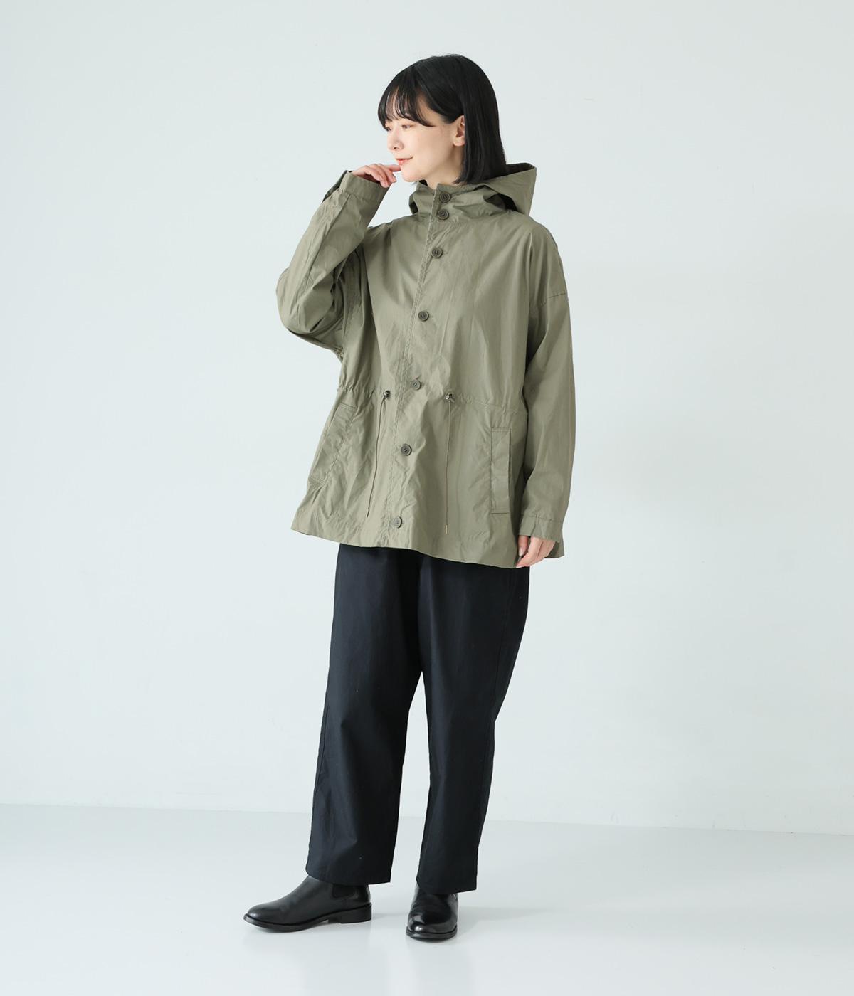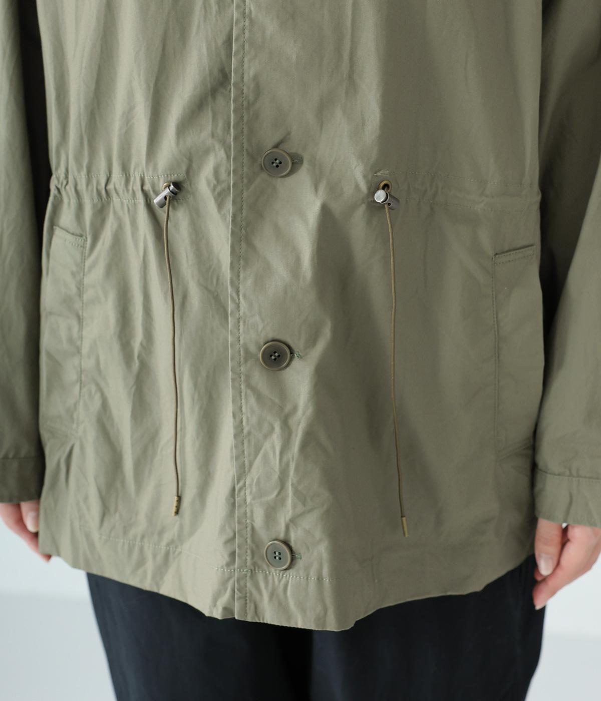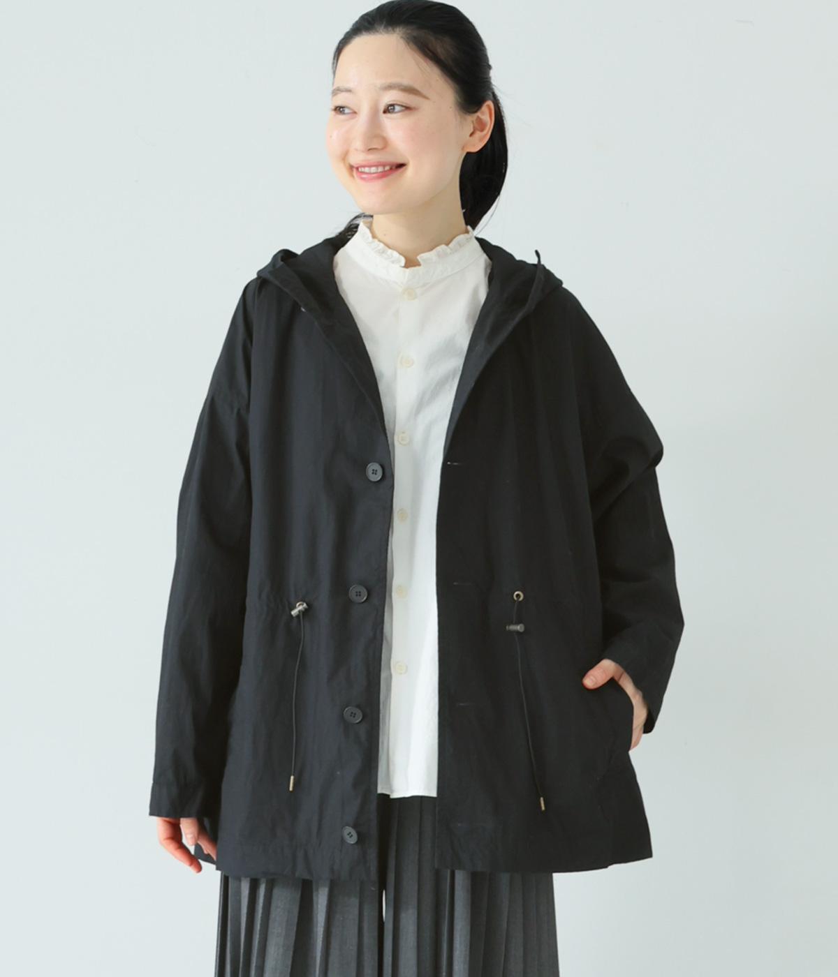 日常にラフに羽織れるコットン素材のフードジャケット。高めのウエスト位置に入れたドローコードを絞ってシルエットをすっきりと見せることができます。立体感のあるフードが後ろ姿のポイントに。合わせる装いを選びにくい、ヒップにかかる絶妙な着丈もグッドです。
