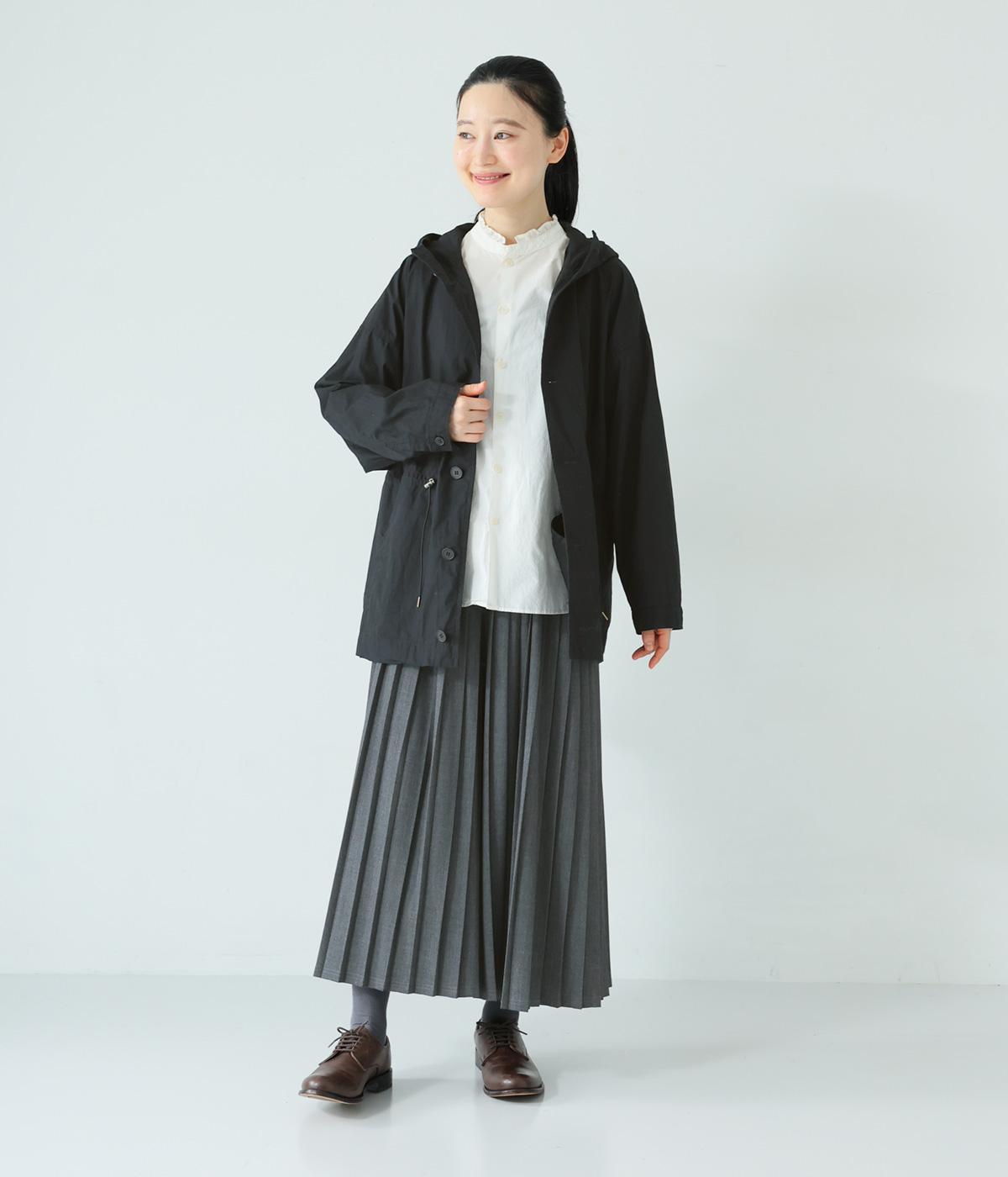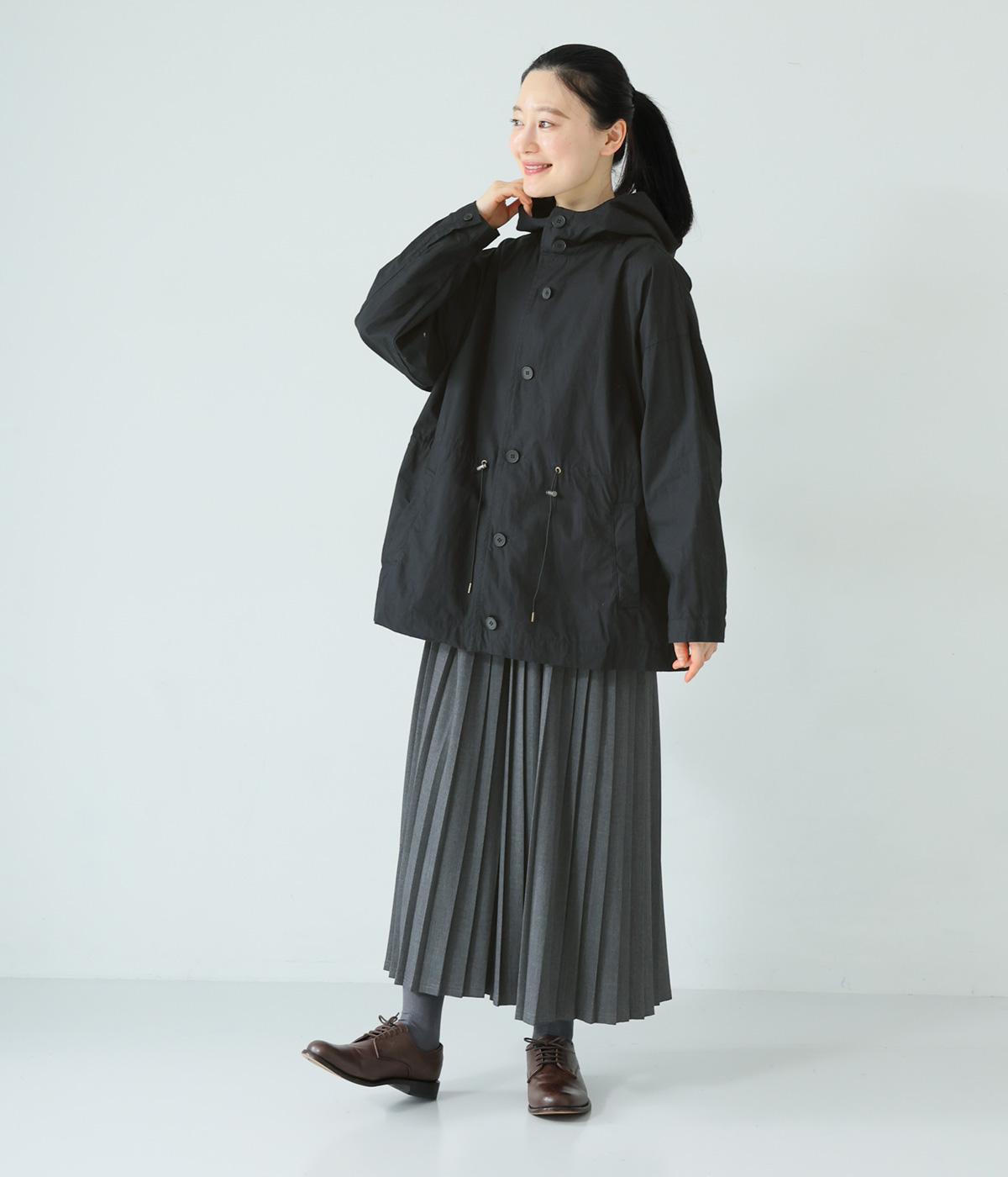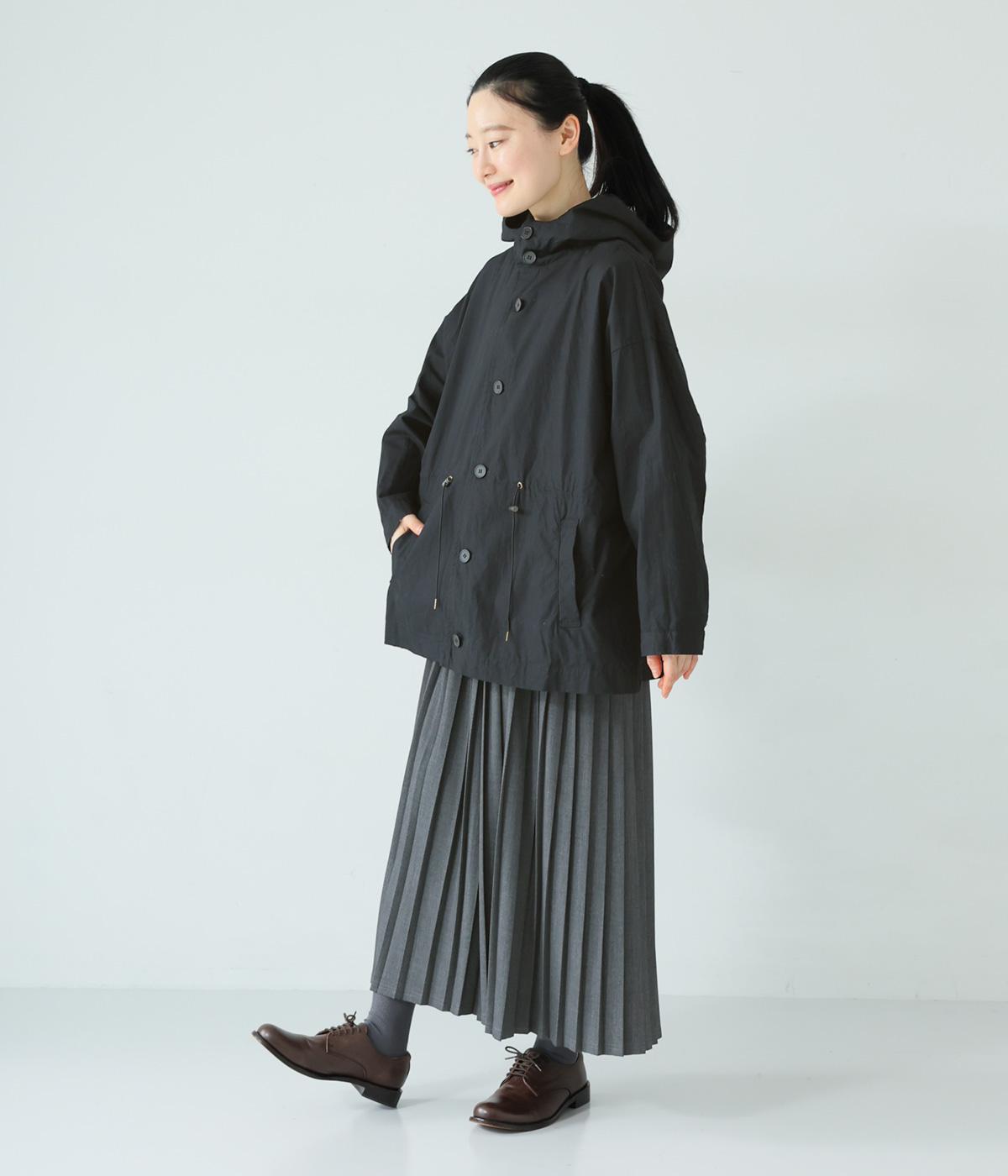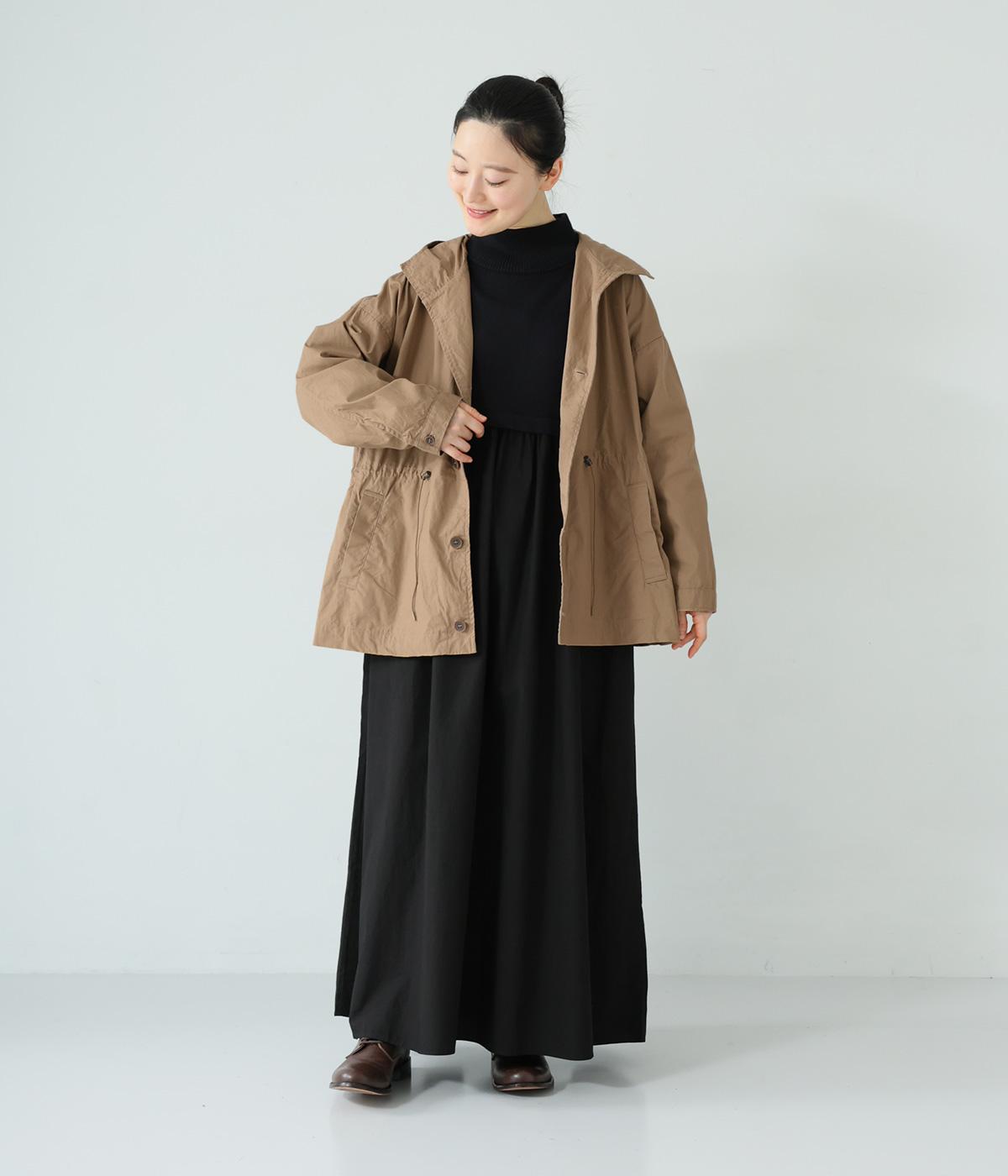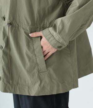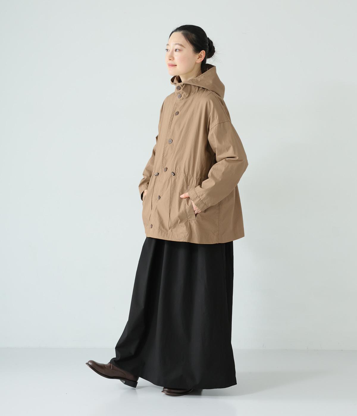 日常にラフに羽織れるコットン素材のフードジャケット。高めのウエスト位置に入れたドローコードを絞ってシルエットをすっきりと見せることができます。立体感のあるフードが後ろ姿のポイントに。合わせる装いを選びにくい、ヒップにかかる絶妙な着丈もグッドです。