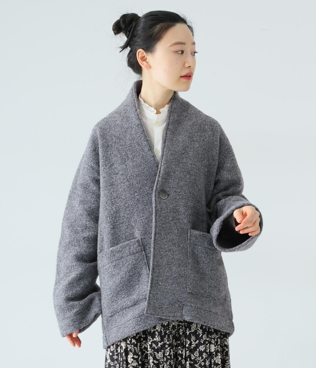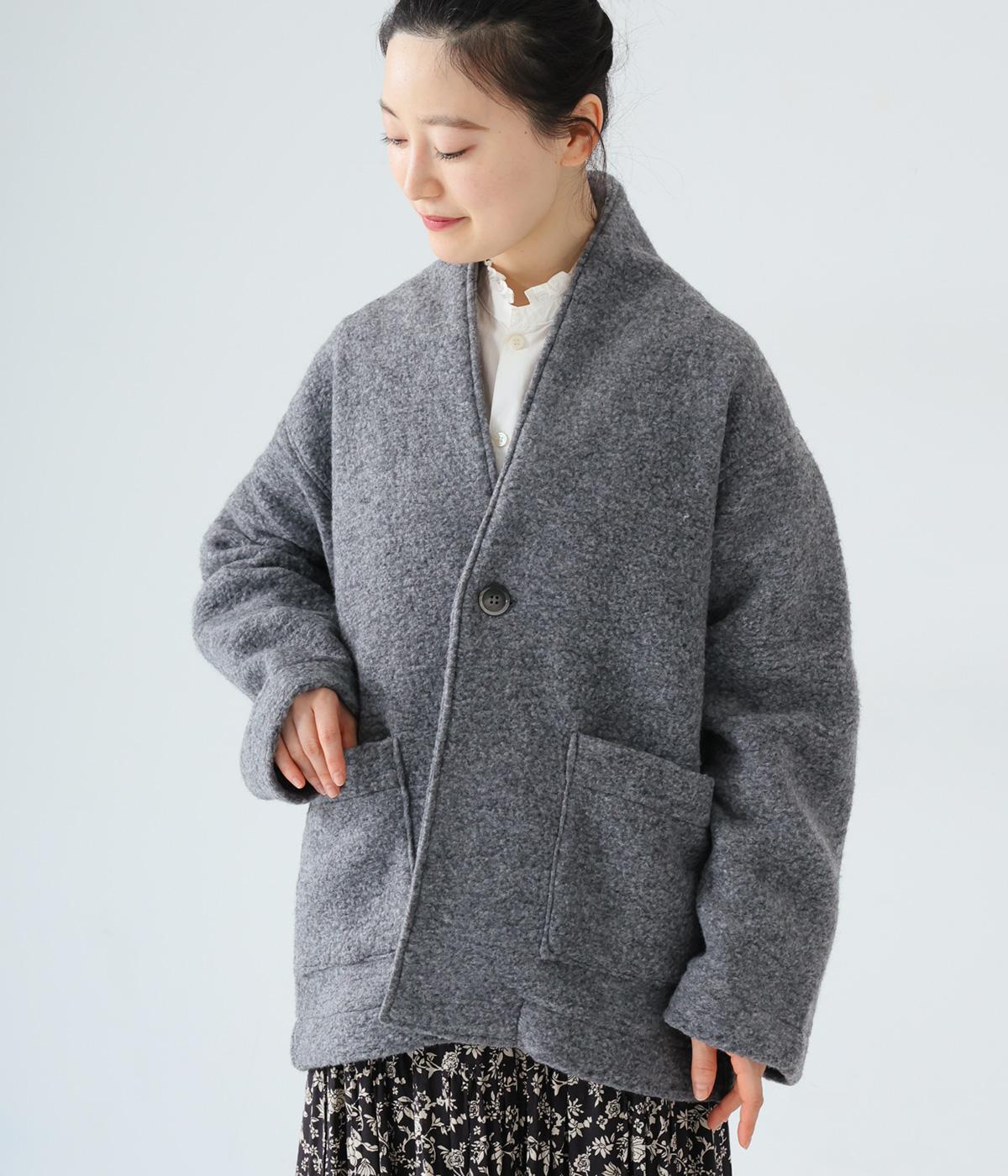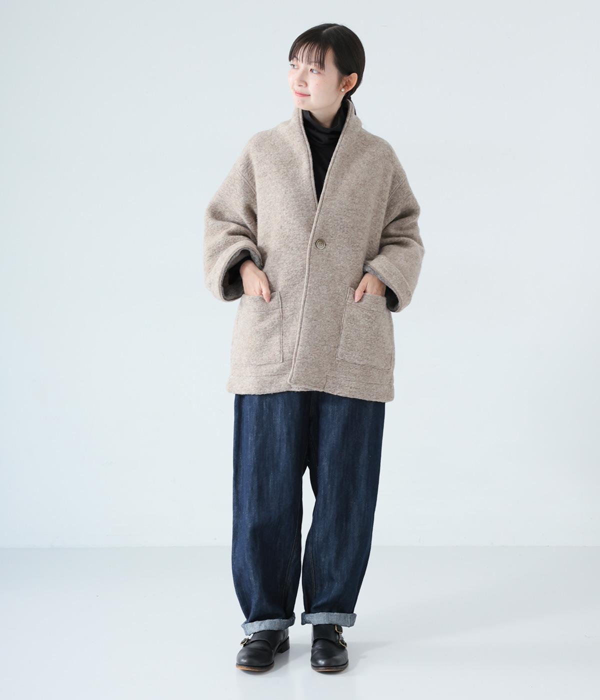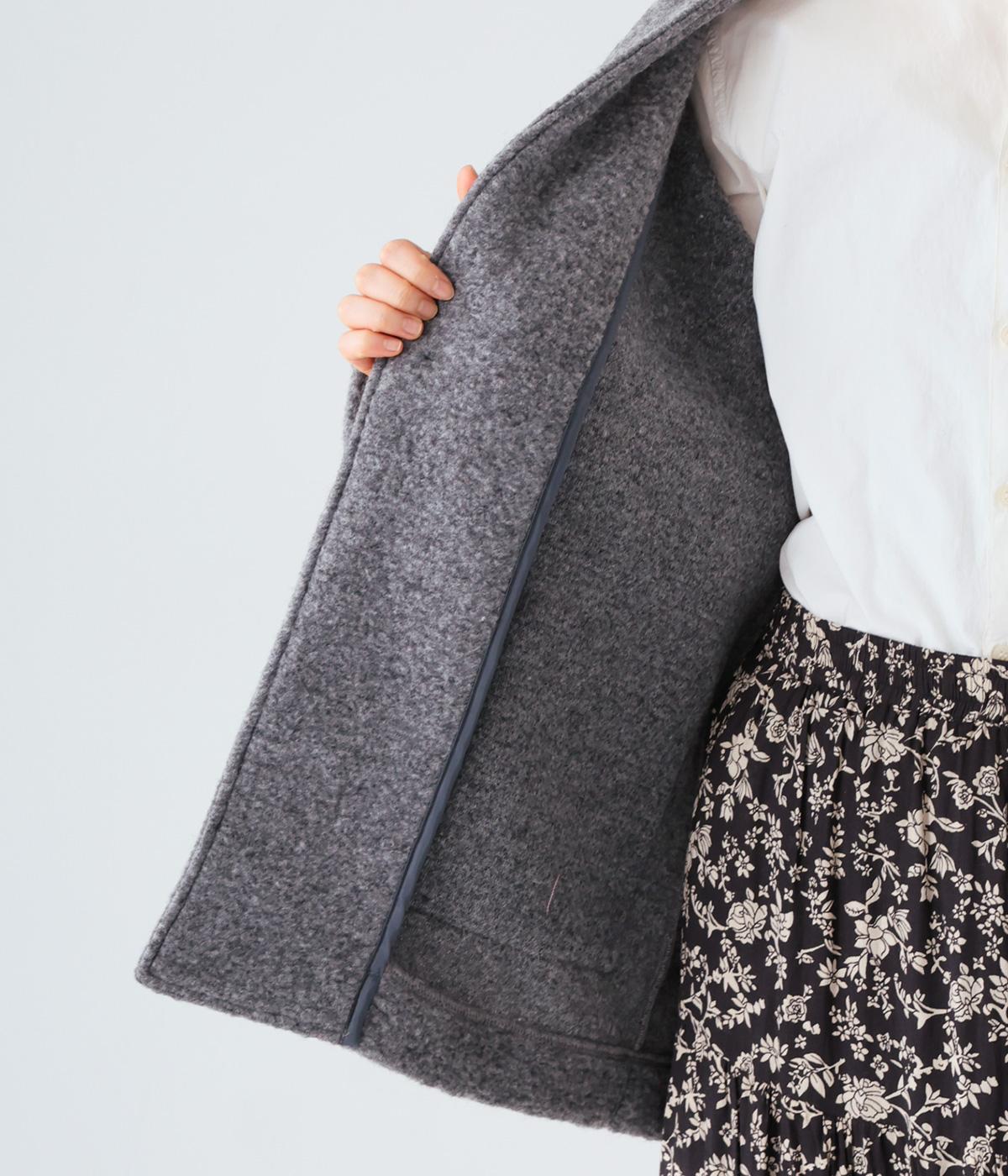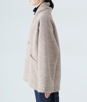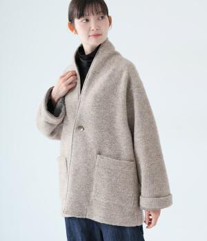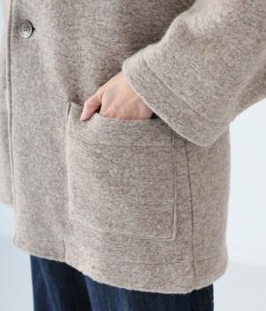 大人らしい抜け感がただよう、ひとつボタン仕様のジャケット。高さを出した襟が首後ろまであたたかく包み込みます。実用性も兼ね備えた大きめのパッチポケットがアクセントに。ゆったりとした長めの袖は、好みの長さに折り返しても素敵です。
