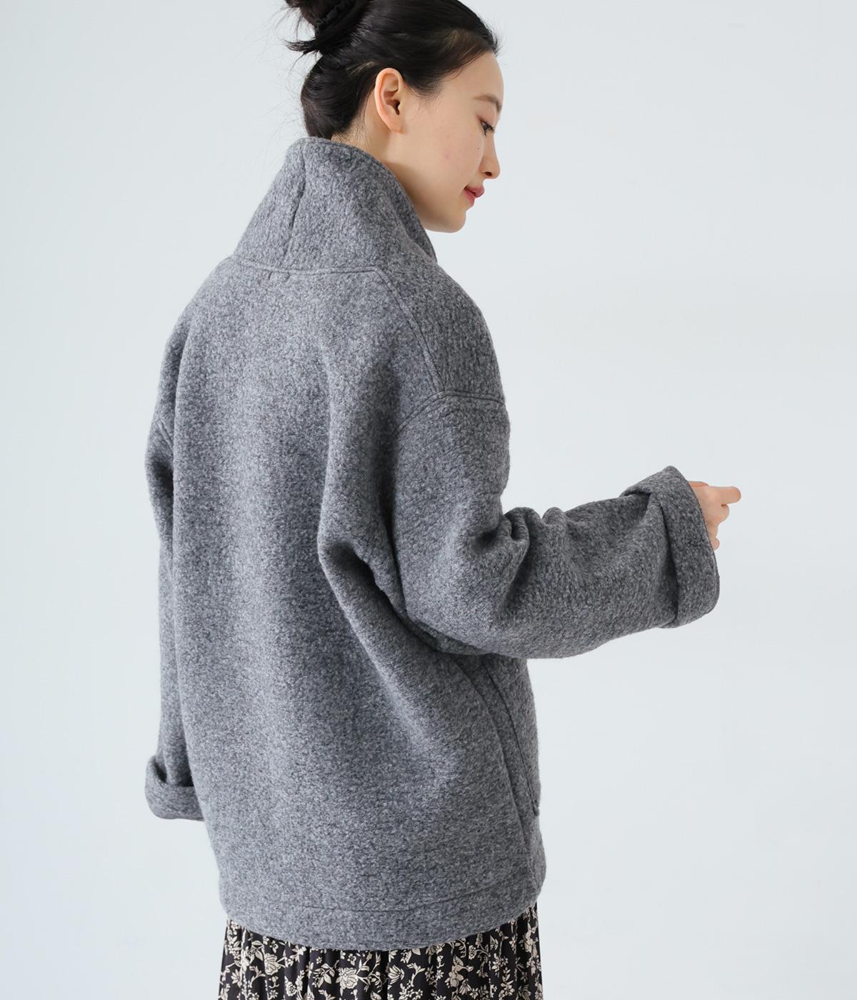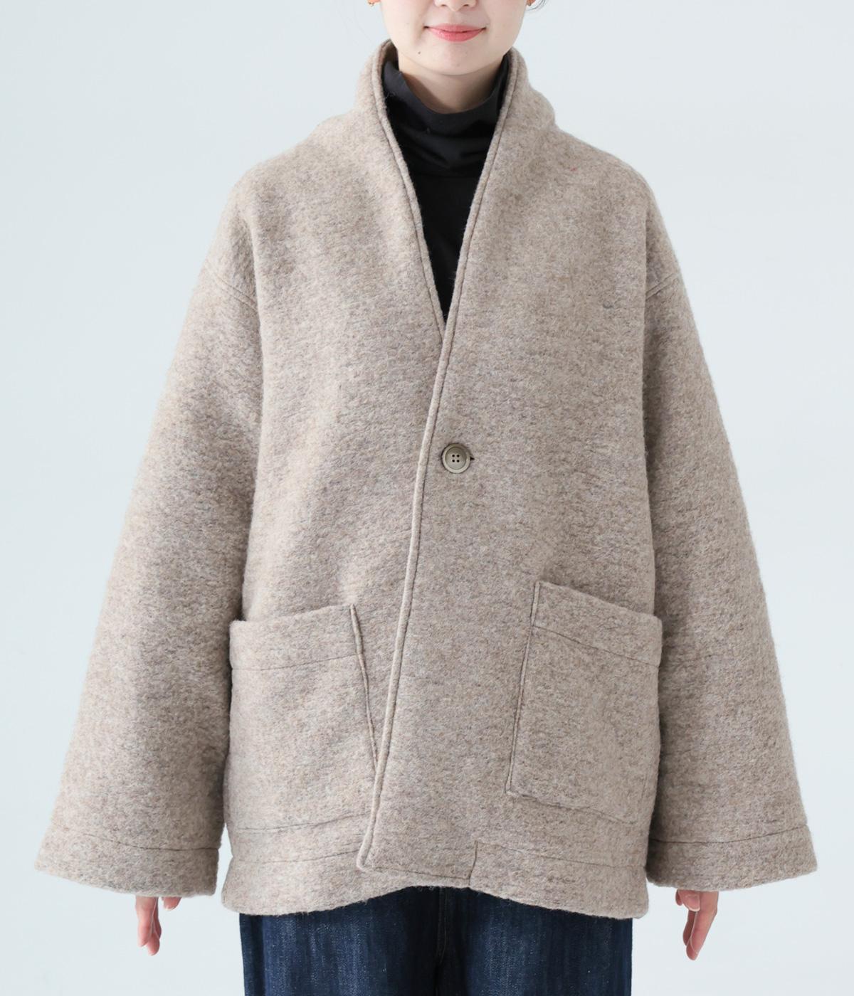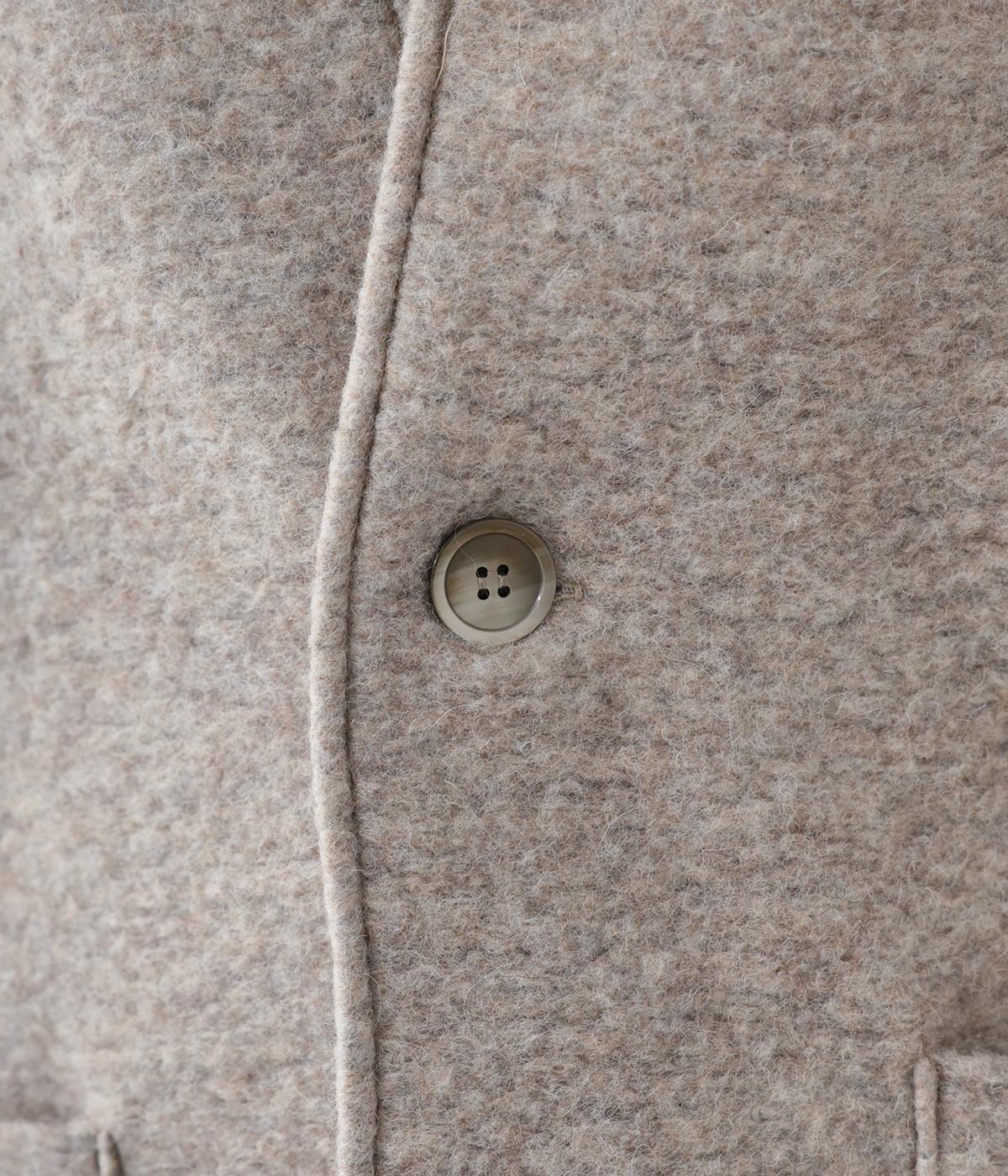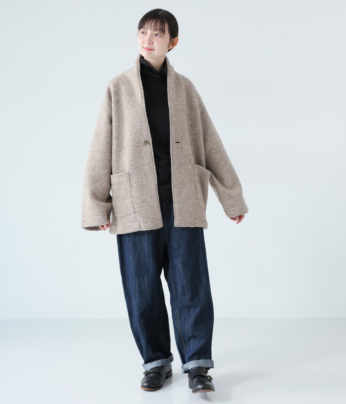 大人らしい抜け感がただよう、ひとつボタン仕様のジャケット。高さを出した襟が首後ろまであたたかく包み込みます。実用性も兼ね備えた大きめのパッチポケットがアクセントに。ゆったりとした長めの袖は、好みの長さに折り返しても素敵です。