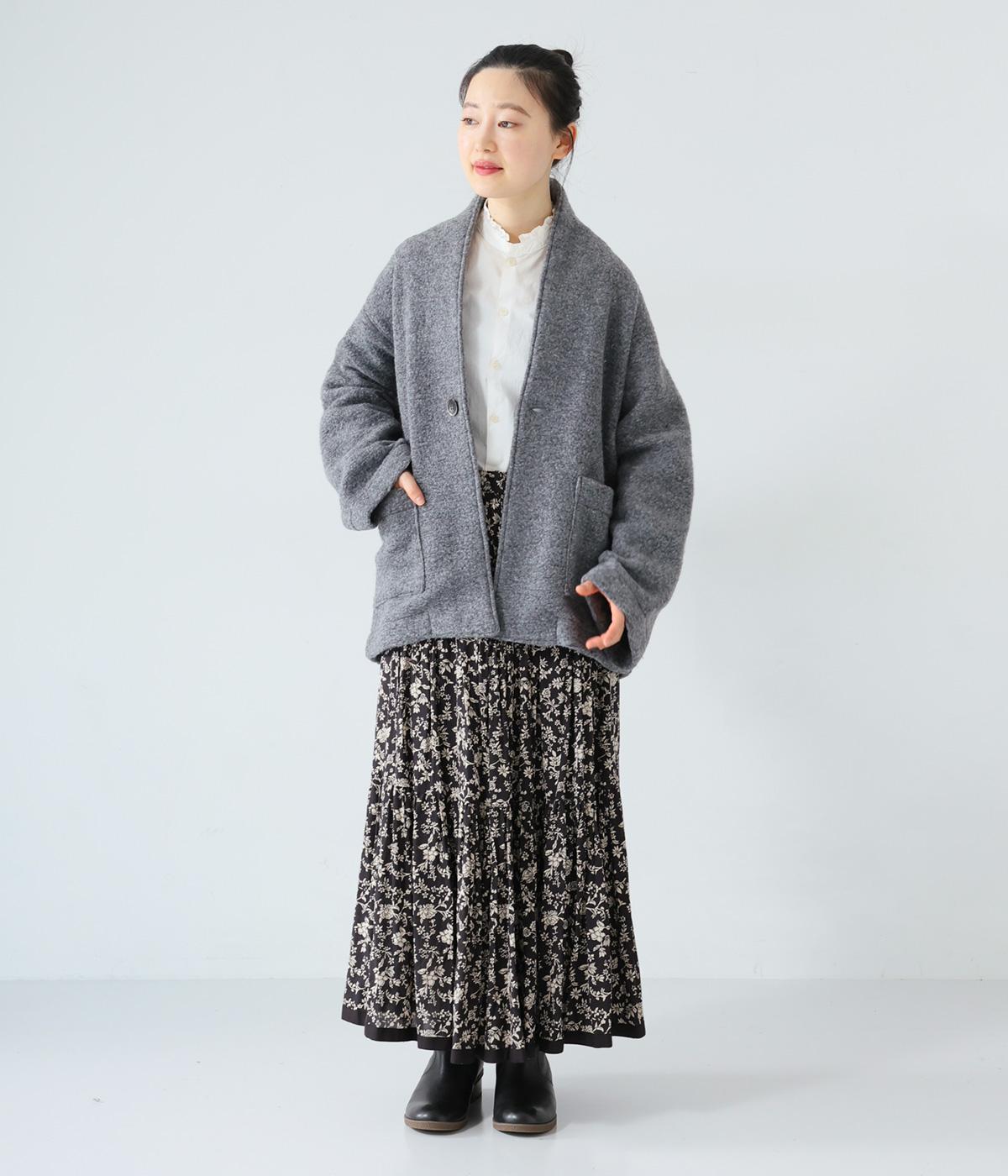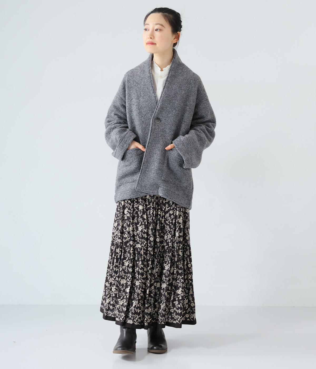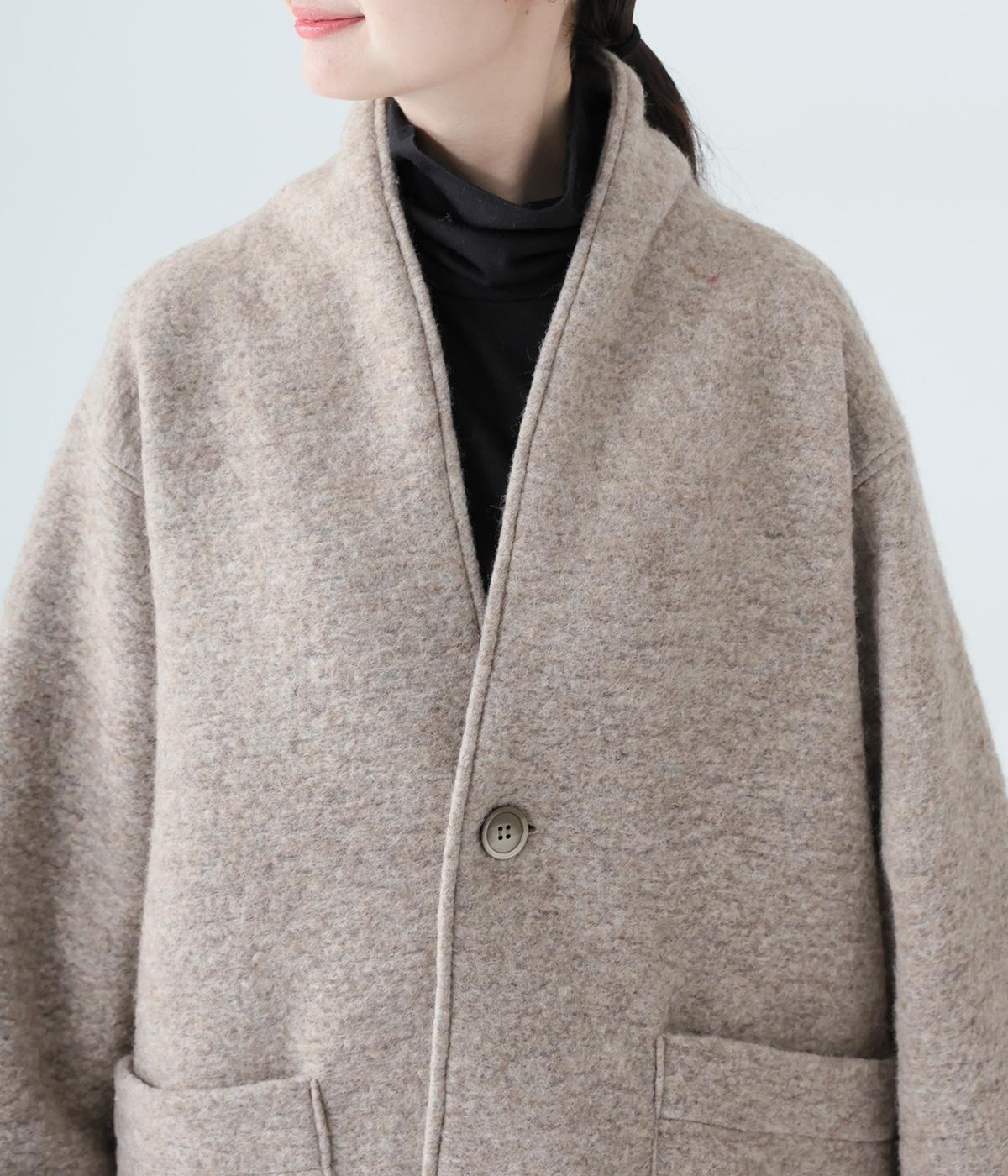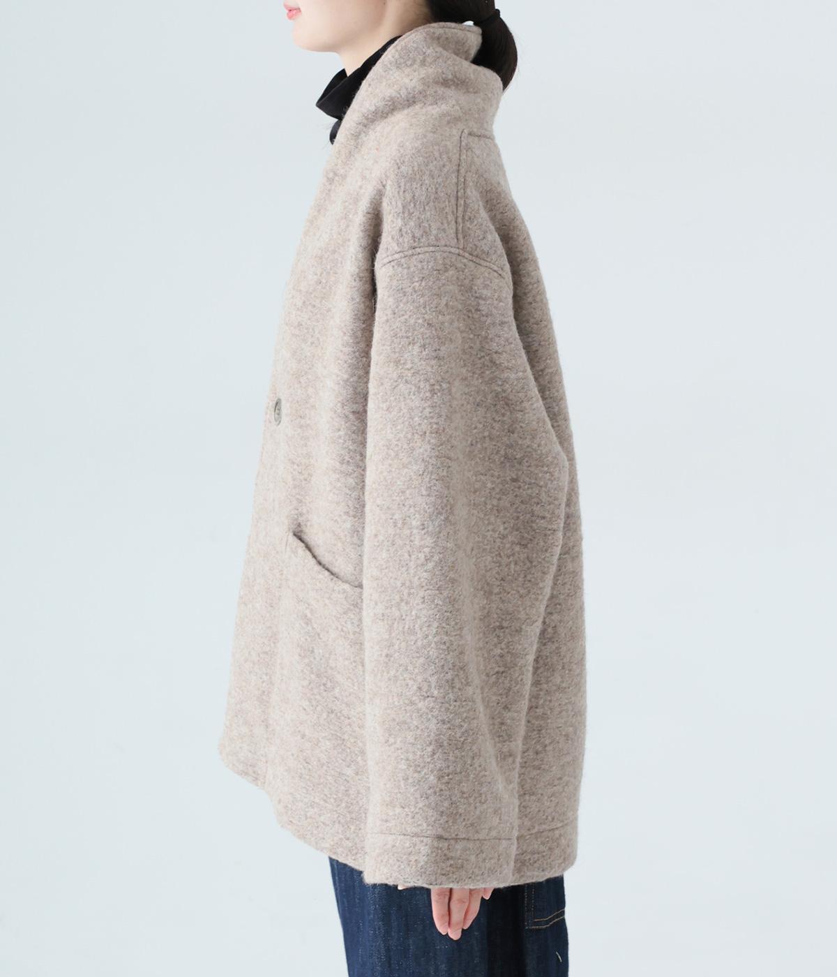 大人らしい抜け感がただよう、ひとつボタン仕様のジャケット。高さを出した襟が首後ろまであたたかく包み込みます。実用性も兼ね備えた大きめのパッチポケットがアクセントに。ゆったりとした長めの袖は、好みの長さに折り返しても素敵です。