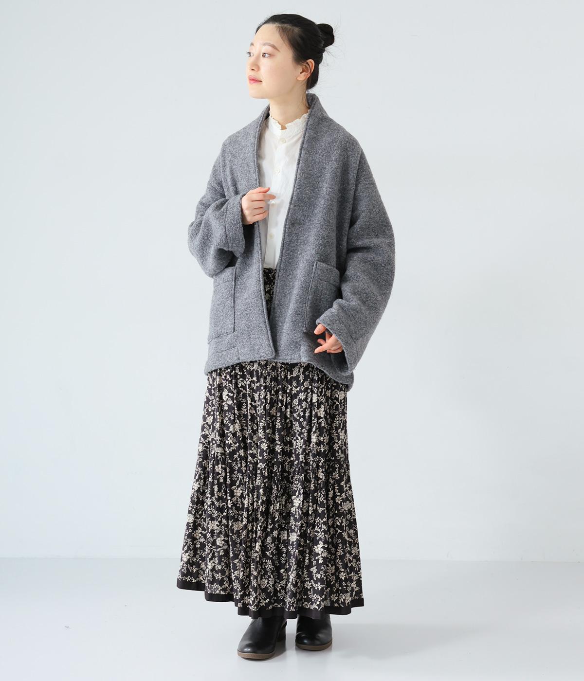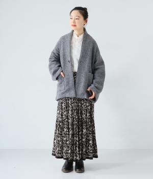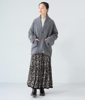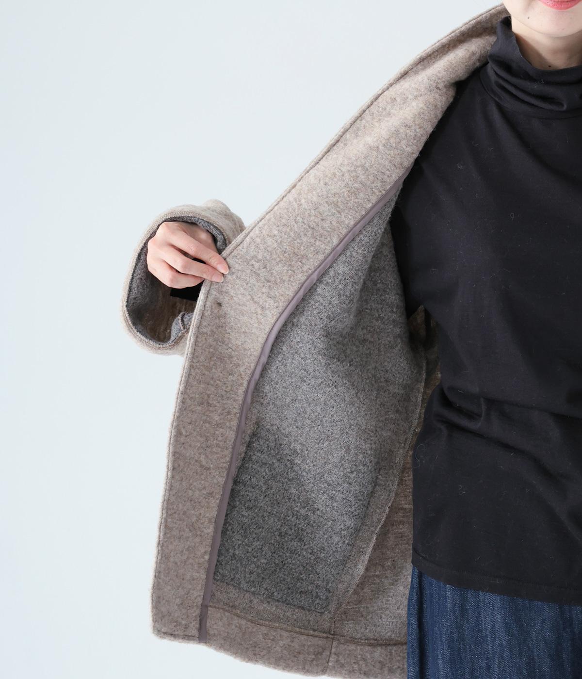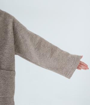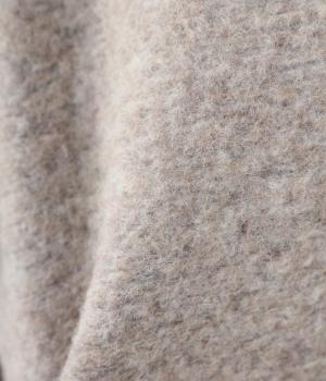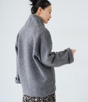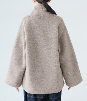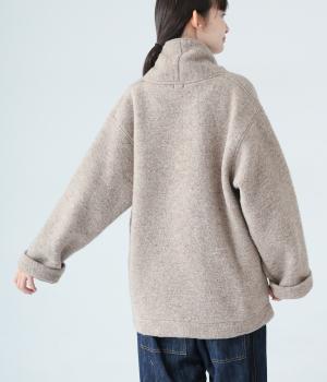 ふっくらとした起毛感が見た目にもあたたかみのあるウール混のプードルニット生地を使用しました。ボリュームは控えめなので春までロングシーズン活躍します。