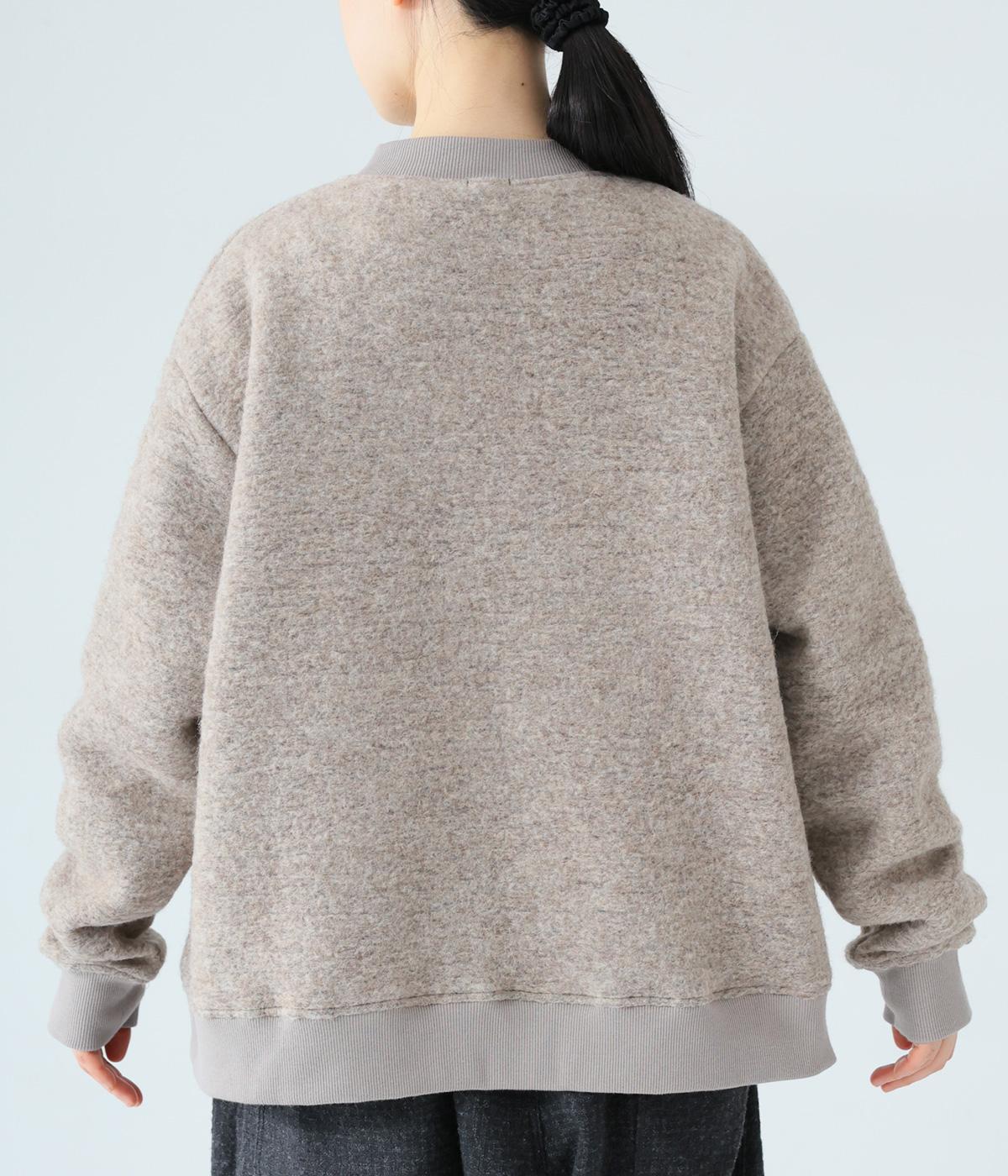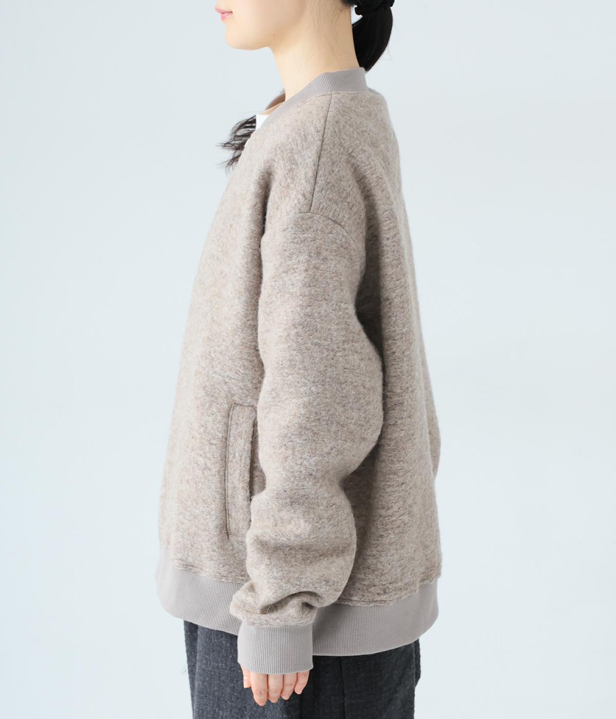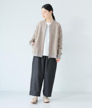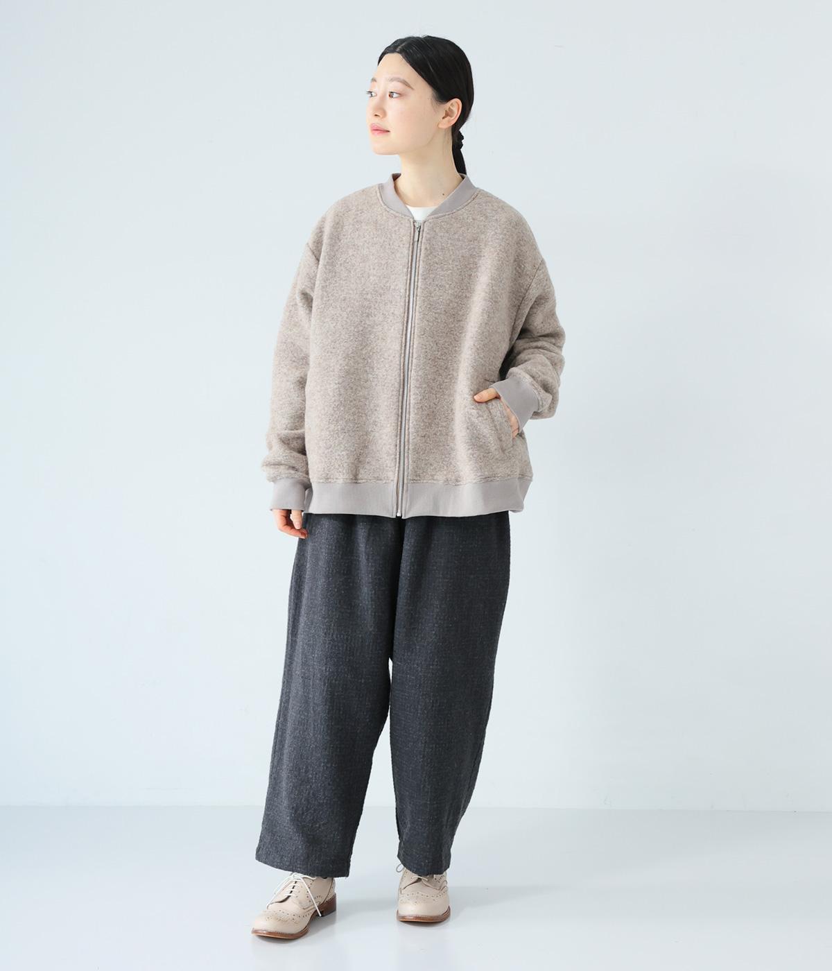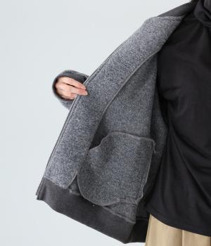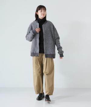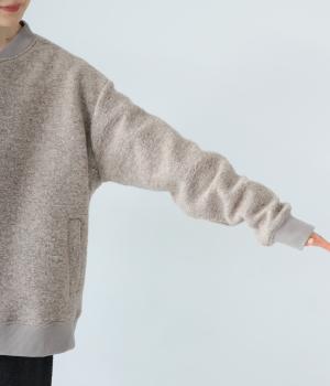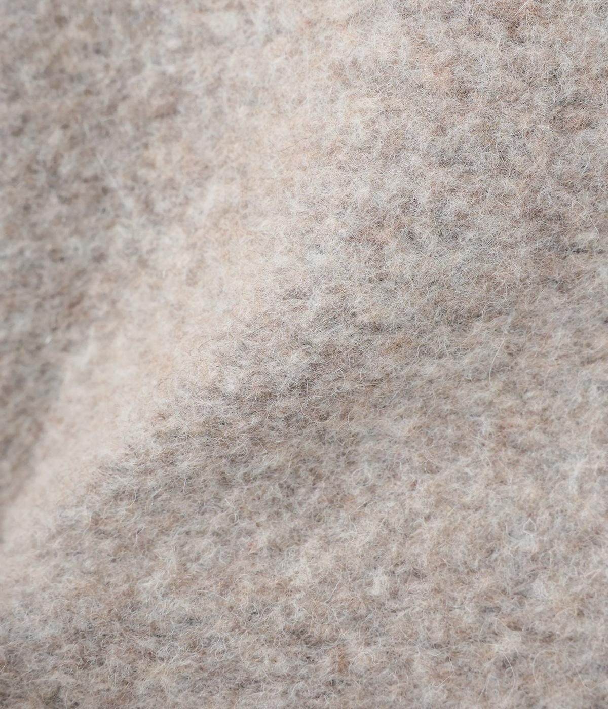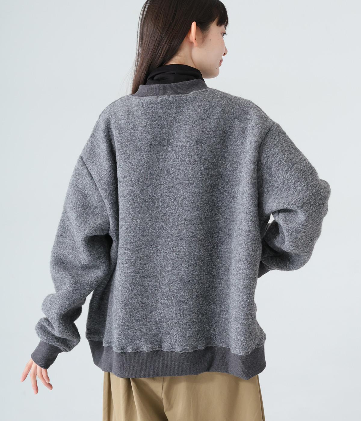 ふっくらとした起毛感が見た目にもあたたかみのあるウール混のプードルニット生地を使用しました。ボリュームは控えめなので、春先までロングシーズン活躍します。